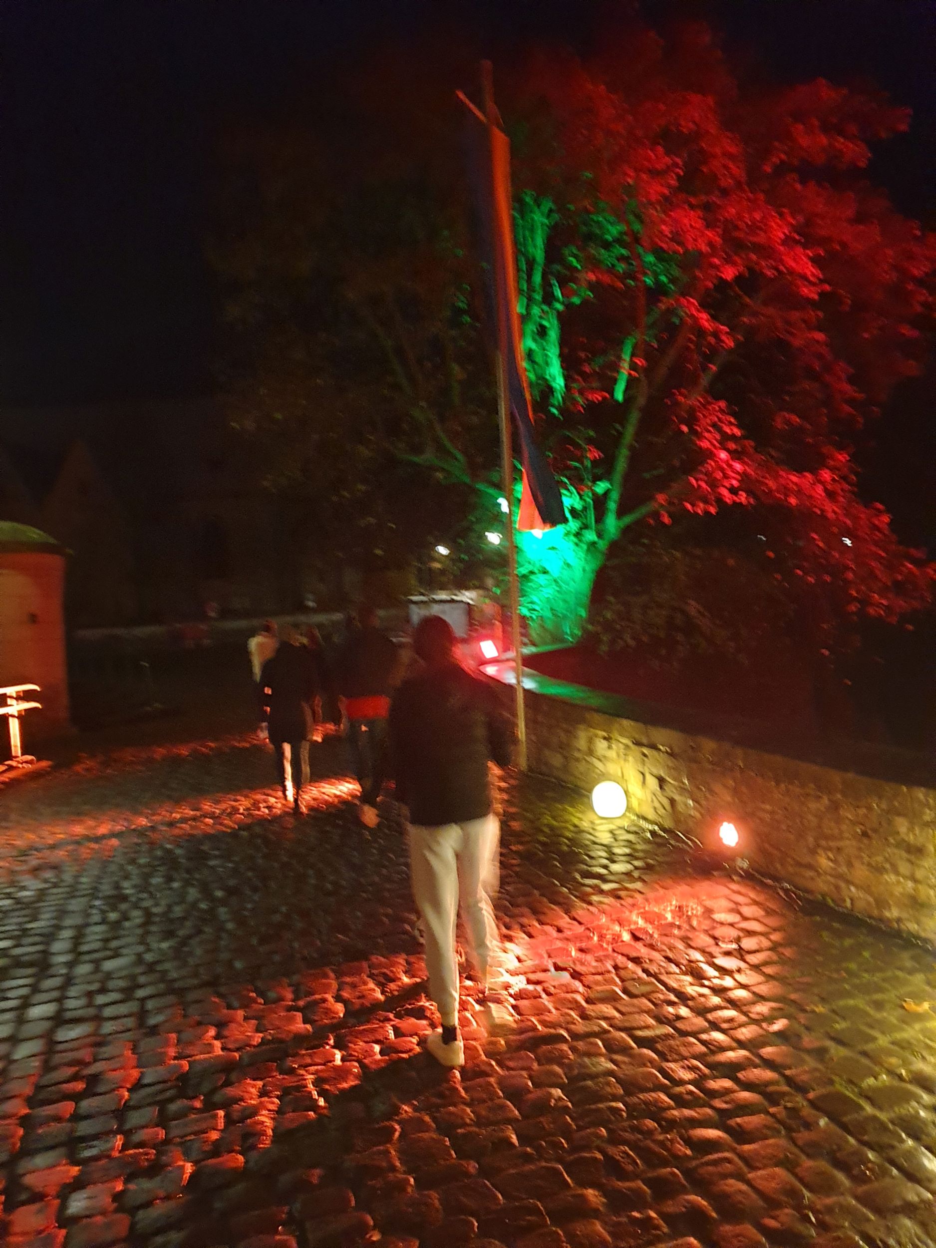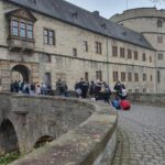 Der Freitag war ähnlich voll gepackt. Eine Probe jagte die nächste, in unterschiedlichen Teilbesetzungen probten Marina Löwen, Johann Klassen, Dorothee Vogel und Jan Voß die anstehenden Stücke mit den Schüler*innen ein. Am Abend gab es nicht nur gemeinsamen Gesang. Eine kleinere Gruppe machte sich auf, um die Geschichte der Wewelsburg und des damaligen Konzentrationslagers zu erkunden. Geschichtslehrer Johann Klassen konnte interessante Erklärungen beitragen.