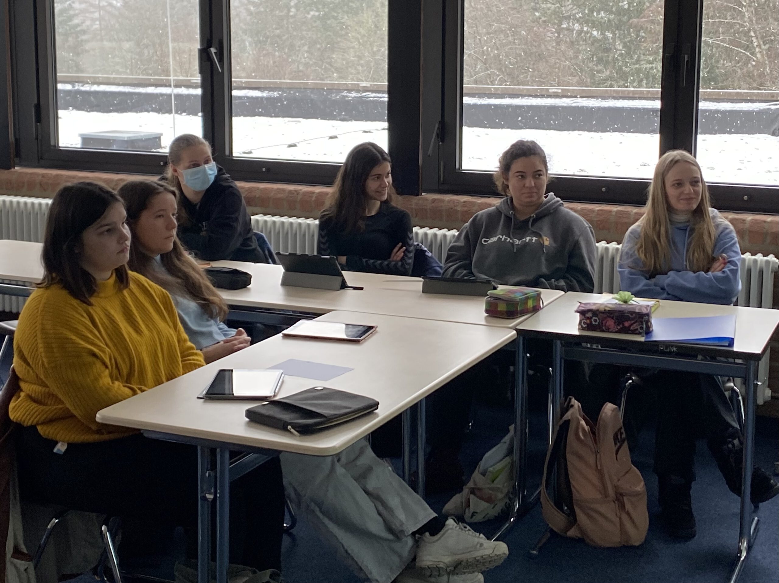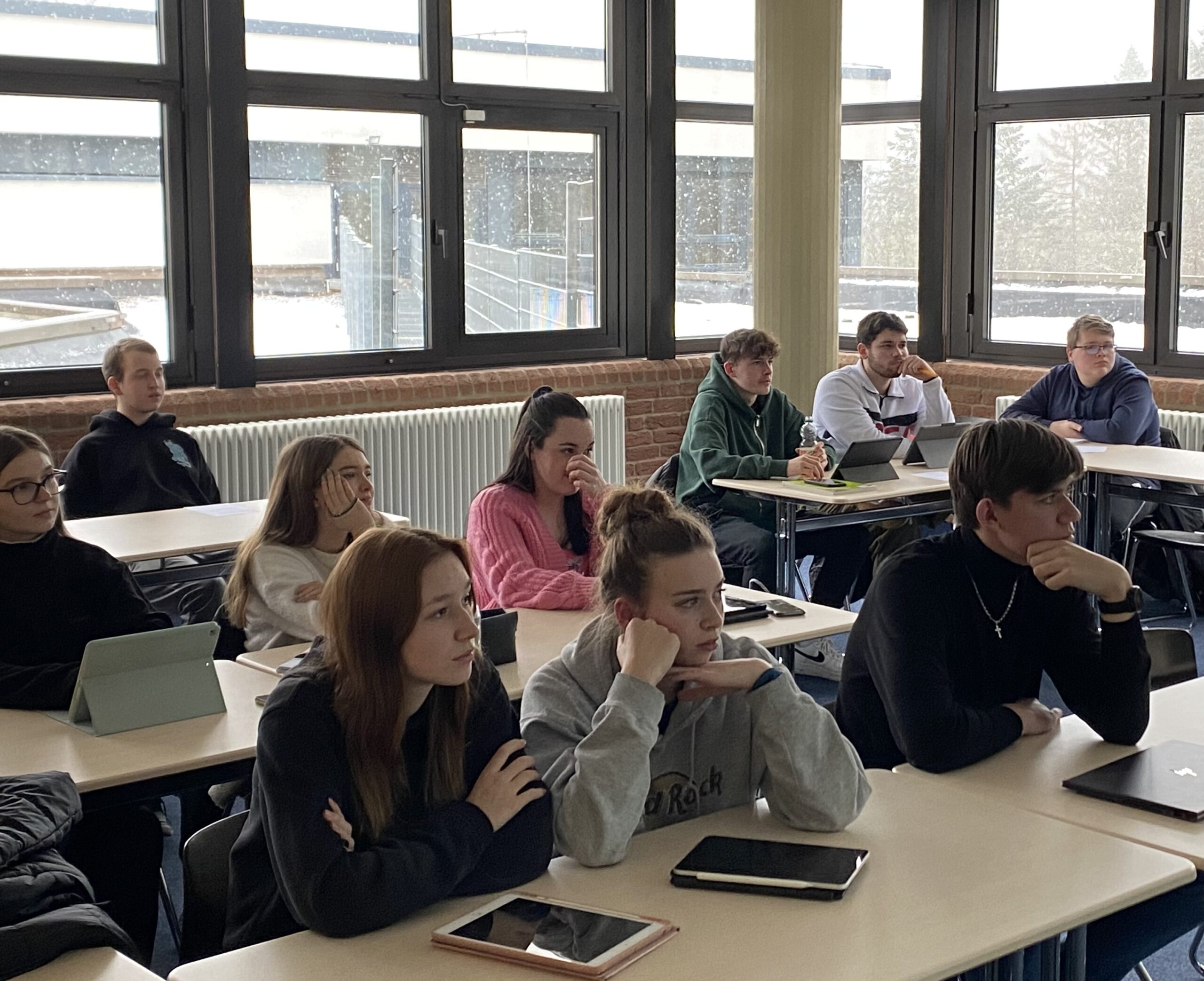 Nach den ersten drei Semestern an der Uni bewarb sie sich dann für ein Auslandssemester, welches sie in Kanada verbrachte. Neben zahlreichen Erlebnisberichten und visuellen Eindrücken dank vieler Fotos, die Maike den Kursen zeigte, ermutigte sie die Schülerinnen und Schüler, den Schritt ins Ausland zu wagen und gab ihnen nützliche Tipps und Hinweise zu Stipendien, Unterstützungsprogrammen, Stiftungen und Bewerbungsverfahren.