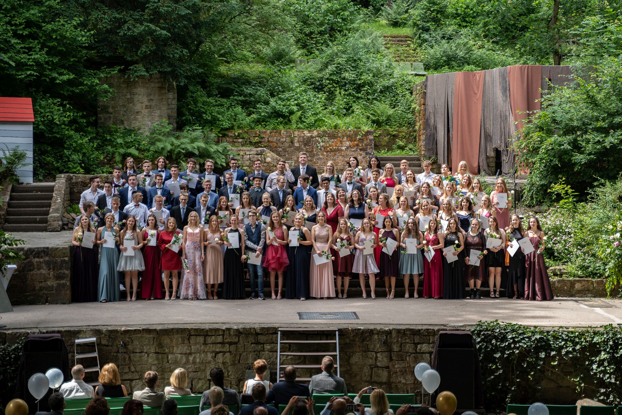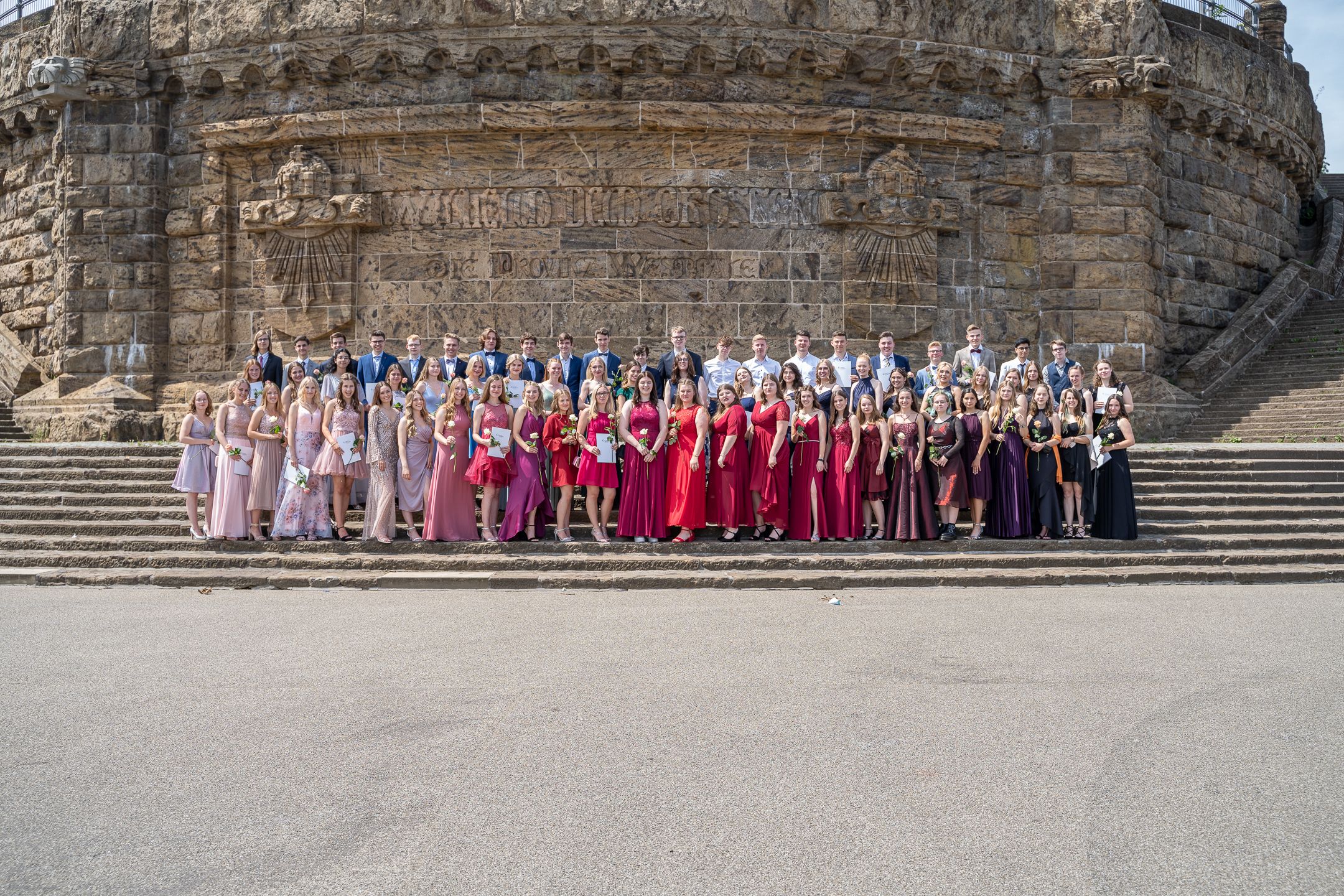 Nach den feierlichen Reden und den Musikbeiträgen – trotz der Pandemie konnte sogar das Schulorchester auftreten! – war es dann soweit. Unter stolzem Applaus nahm jede einzelne Abiturientin und jeder einzelne Abiturient das Zeugnis entgegen. Julian Völlmecke erhielt das beste jemals an unserer Schule ausgestellte Zeugnis. Als sich die gesamte Jahrgangsstufe zum Gruppenfoto versammelte, schallte ihr großer Jubel des Publikums entgegen.