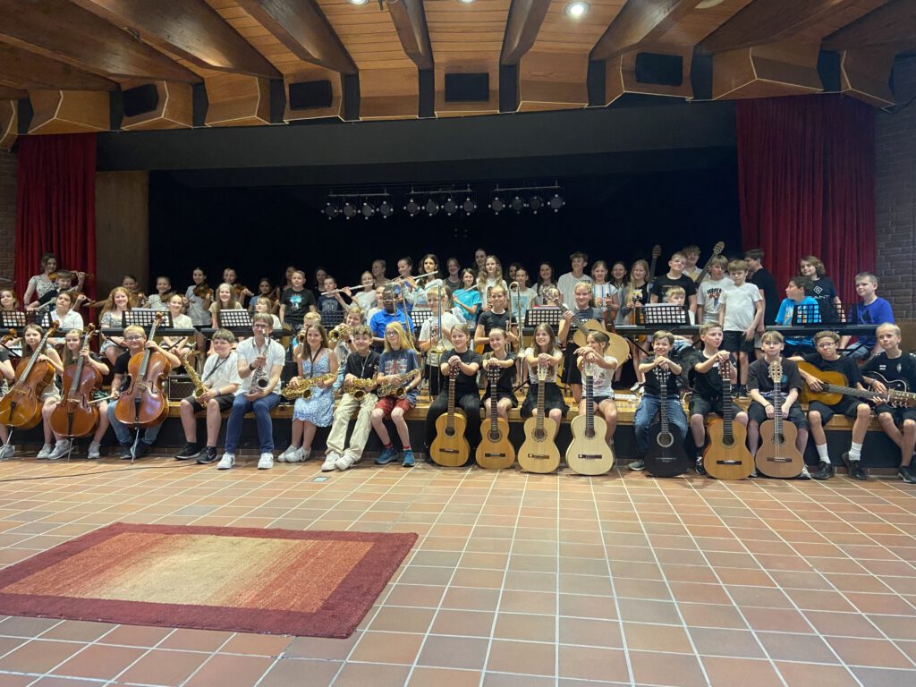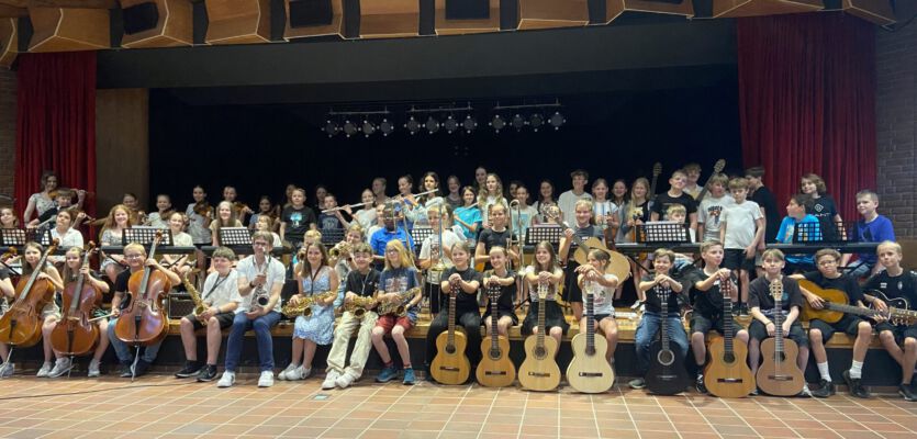 Die Luft ist am Mittwoch, dem 26. Juni nicht nur heiß, sondern auch voll Musik! Nach 1,5 Jahren Instrumentalunterricht und Musikpraxisunterricht zeigt der 6. Jahrgang im Rahmen des Musikpraxis-Abschlusskonzertes sein Können. Seit mittlerweile 25 Jahren kooperieren Musikschule und Gymnasium und bieten den Unterricht im Rahmen des regulären Stundenplans an. Wer möchte, darf auch in Klasse 7 und den folgenden Klassen...weiterlesen