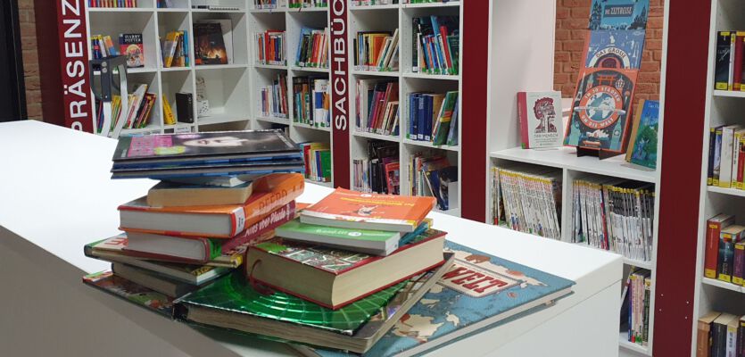 Wir haben ein Herz für Bücher. Ihr auch? Dann besucht uns in der Bücherei! In allen großen Pausen findet ihr bei uns spannende Bücher und ein ruhiges Plätzchen zum Lesen. Ob Manga oder Märchen, Comic oder Krimi, Sachbuch oder Lachbuch: In der Bücherei gibt es immer viel zu entdecken. Falls ihr Lust habt, bei uns mitzumachen, kommt doch in die Bücherei-AG! Wir treffen uns alle zwei Wochen dienstags in der 7. Stunde....weiterlesen
