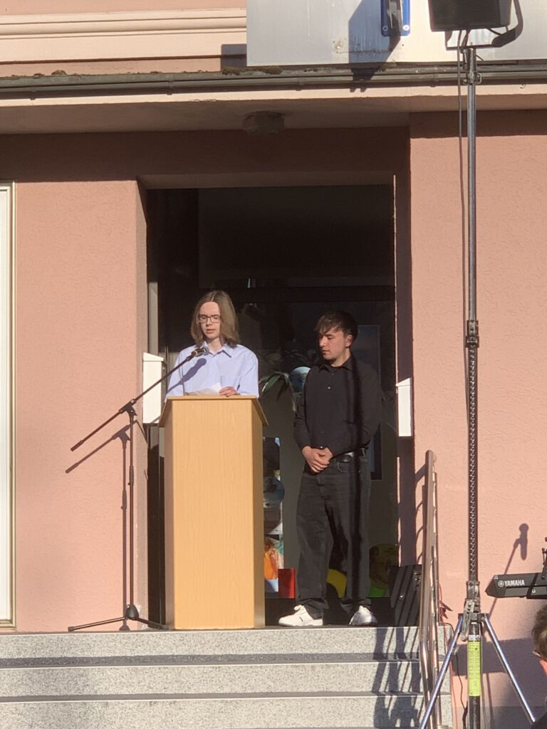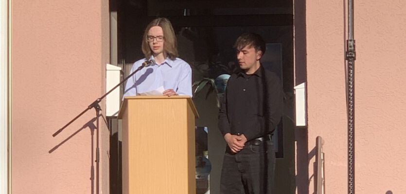 Am 23. Mai wurde unser Grundgesetz 75 Jahre alt. Dieser "Geburtstag" wurde in Porta Westfalica mit einer Kundgebung gefeiert, bei der auch die Sprecher unserer Schülervertretung, Moritz Nagel und Oscar de Vink, eine eindrucksvolle Rede hielten. Die Bedeutung des Grundgesetztes, der Menschenrechte, der Demokratie und Freiheit für die Jugend brachten sie dabei nachdrücklich zum Ausdruck. Ihre Rede ist ein klares Votum...weiterlesen