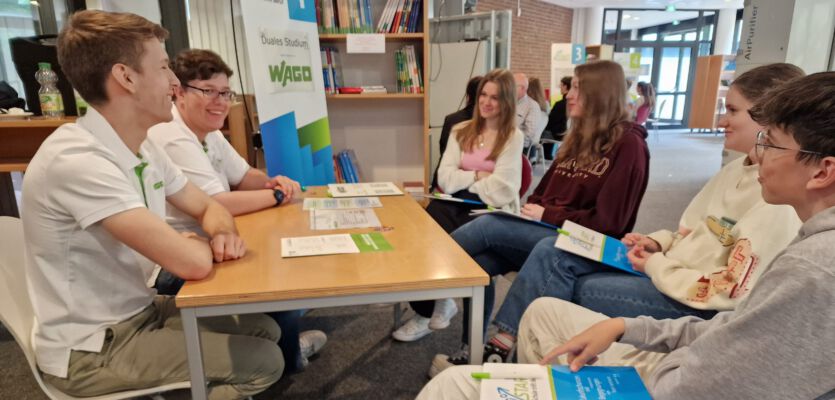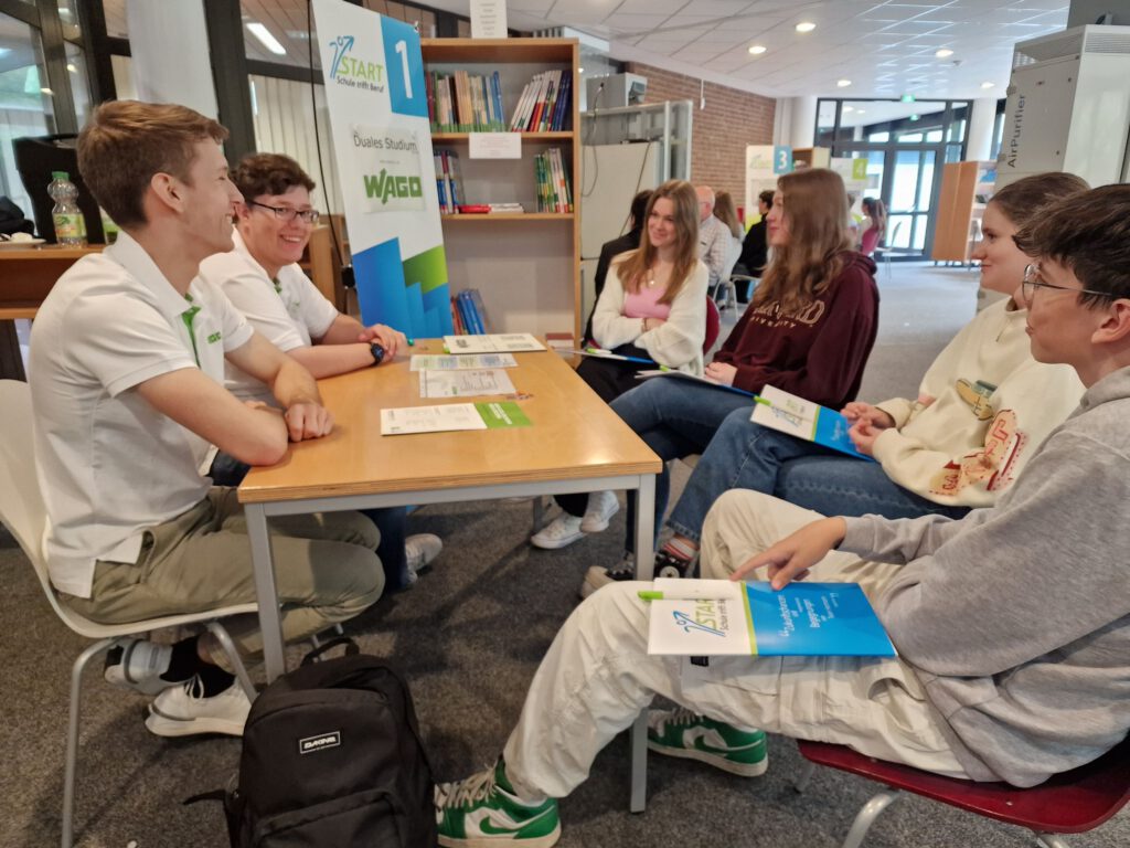 Am 05. Juni 2024 fand am Gymnasium Porta Westfalia eine besondere Veranstaltung statt: START "Schule trifft Beruf". Diese Initiative brachte Unternehmen direkt zu uns an die Schule, um den Schüler*innen, den zukünftigen Auszubildenden, die vielfältigen Möglichkeiten von Ausbildungen und dualen Studiengängen näherzubringen. Sieben Unternehmen aus der Region waren zu Gast: WAGO, HRZ, Rasche Minden, Jacob Group, Sparkasse...weiterlesen