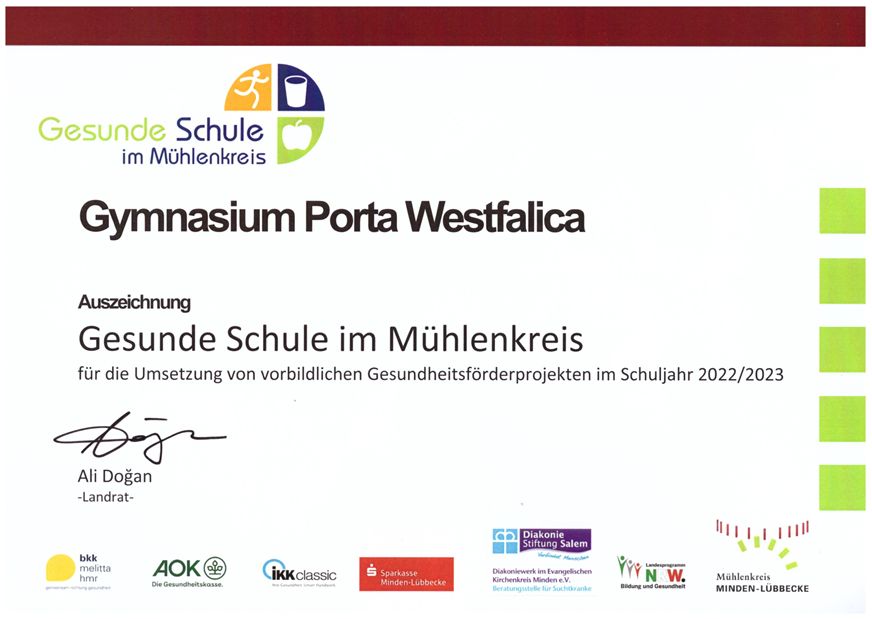 Das Städtische Gymnasium Porta Westfalica nahm auch dieses Jahr wieder mit der Jahrgangsstufe 5 an einem Ernährungs-Workshop, der durch die Ernährungsberaterin Frau Roth angeleitet wurde, teil. Das Gesundheitsprojekt nach dem Motto: „Fit for School – Fit for Life“ soll Kinder zu dieser Thematik sensibilisieren, die auch morgen noch fit und gesund sein wollen. Das Gymnasium Porta Westfalica wurde für sein Engagement...weiterlesen