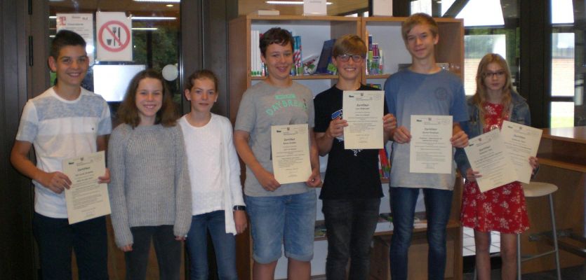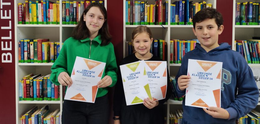 Auch dieses Jahr fand der Vorlesewettbewerb der sechsten Klassen wieder kurz vor den Weihnachtsferien statt. Wir gratulieren unserer Schulsiegerin Sophia Friesen (Klasse 6C). Robert Middelschulte (Klasse 6A), Letizia Bahr (Klasse 6B) und sie waren zuvor in ihren eigenen Klassen als beste Vorlesende gekürt worden. Die Jury war ganz Ohr bei den engagierten Vorlesenden. Das Gremium bestand diesmal aus Schulleiterin Susanne...weiterlesen