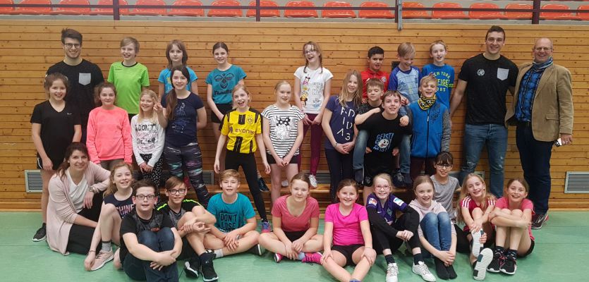 Am 01.03.2019 kamen um 9.40 Uhr unsere GWD Paten Miljan Pusica und Lukas Kister zu uns in die Klasse 5c. Wir frühstückten alle zusammen und unterhielten uns. Als wir mit dem Frühstück fertig waren, machten wir in fünf Gruppen eine Schulfotorallye. Alle hatten Spaß. Nach einer gemeinsamen Pause mit den GWD-Paten gingen wir in die Sporthalle und spielten Spiele. Beim Völkerball erhielt jedes Team einen GWD-Spieler....weiterlesen