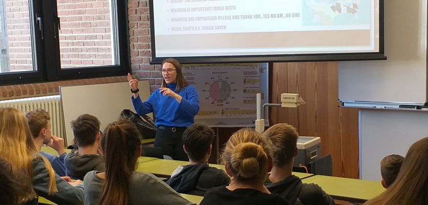 Sarah Kudyba, unsere Gastschülerin aus Georgia (USA), lernt schon seit Beginn des Schuljahres an unserer Schule. Die Stipendiatin des Parlamentarischen Patenschafts-Programms (des Deutschen Bundestags) besuchte im ersten Halbjahr die Einführungsphase und wechselte zum zweiten Schulhalbjahr in die Q1. Ihr Angebot, etwas über ihre Heimat zu erzählen, stieß auf offene Ohren, und so berichtete Sarah mit leuchtenden...weiterlesen