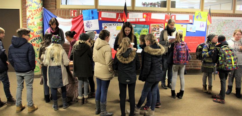 Anlässlich des 57. Jahrestages der deutsch-französischen Freundschaft (Unterzeichnung des Elysée-Vertrags im Jahr 1963) fand am Mittwoch, den 22.01.2020, in den großen Pausen eine Mitmachaktion für Schüler/innen aller Jahrgangsstufen statt. Bei deutsch-französischer Musik konnten sie ihr Wissen über Frankreich und die deutsch-französischen Beziehungen bei einem Wissensquiz unter Beweis stellen und wurden für...weiterlesen