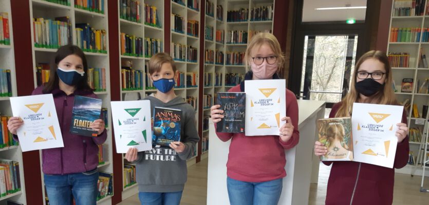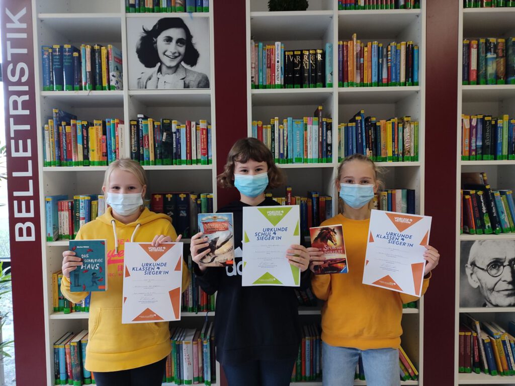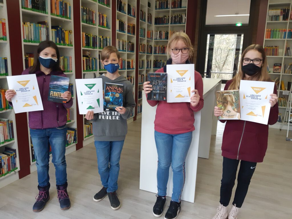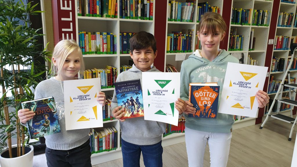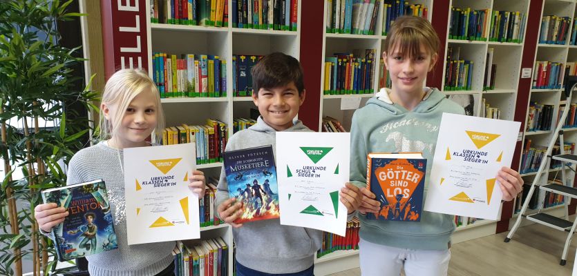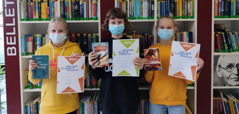 Antonia Kleinschmidt (Klasse 6C) ist Schulsiegerin beim diesjährigen Vorlesewettbewerb der sechsten Klassen. Svea Spieker (Klasse 6A), Helen Borchert (Klasse 6B) und sie hatten zuvor jeweils schon in ihrer eigenen Klasse überzeugt. Gespannt lauschte die Jury den ambitionierten Leserinnen. Dem Komitee gehörten diesmal Schulleiterin Susanne Burmester, die Deutschlehrkräfte Sarah Hoscheit und Alexander Muntschick, Schulsekretärin...weiterlesen