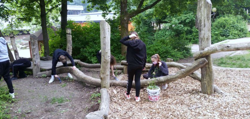Ein naturnaher Schulhof bietet Platz für Mensch ... und Natur. Dabei sammelt sich im Lauf der Zeit nicht nur Unrat an, sondern auch verschiedene Pflanzenarten möchten gerne die Spielgeräte erobern. Zeit für weitere naturnahe Aktionen. Unser Schulhof ist ein Schmuckstück. In verschiedenen Aktionen haben wir uns Orte geschaffen, die unsere Schüler/innen nicht nur in den Pausen sehr gerne nutzen. Heute in der großen...weiterlesen