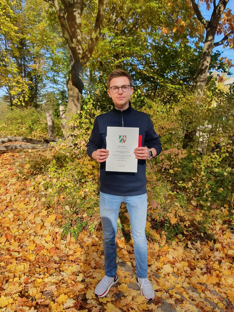 Julian hat ein weiteres Mal gewonnen! In der 2. Runde des Bundeswettbewerbs Mathematik holt er sich damit die Qualifikation für das Bundesfinale, das im Februar 2020 in Hessen stattfinden wird. Wir sagen: "Herzlichen Glückwunsch" und drücken für das Finale die Daumen! Patrick Bauermann vom Talentförderzentrum "Bildung und Begabung" und Leiter des Wettbewerbs, NRW-Schulministerin Yvonne...weiterlesen