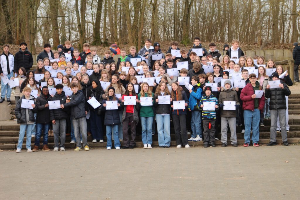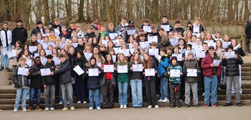 Am Donnerstag, den 20.02.2025, staunte die Schulgemeinschaft nicht schlecht: Ein französischer Flashmob formierte sich auf dem Schulhof, um schließlich Aufstellung zum gigantischen Gruppenfoto zu nehmen. Der Grund: 120 Schülerinnen und Schüler hatten am 22.01.2025 erfolgreich am Internet-Teamwettbewerb teilgenommen! Diese Veranstaltung, die von der französischen Botschaft, dem Schulministerium NRW und weiteren...weiterlesen