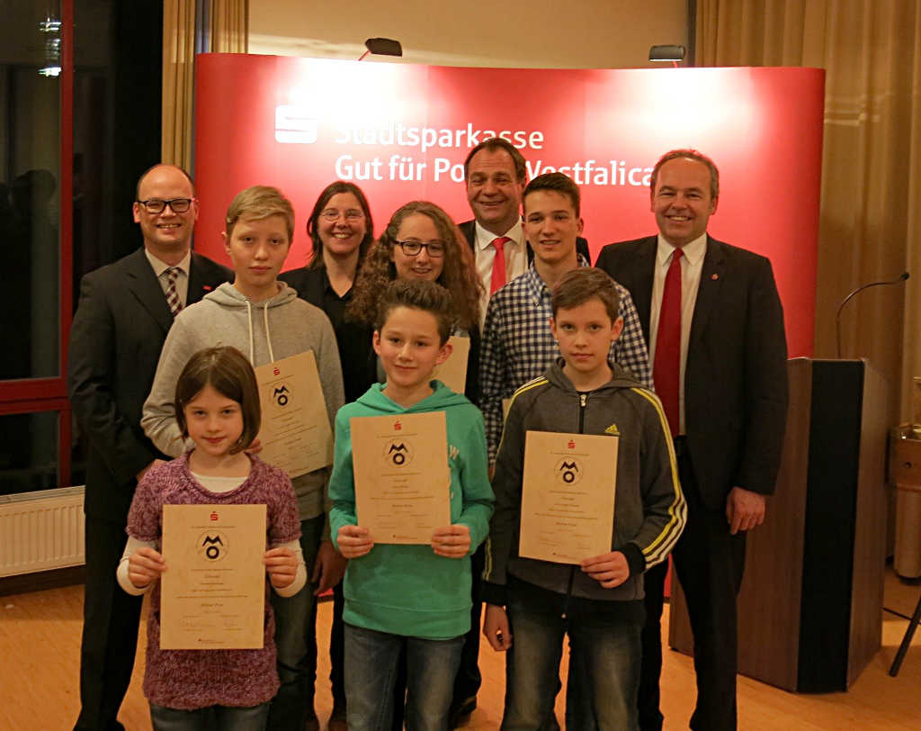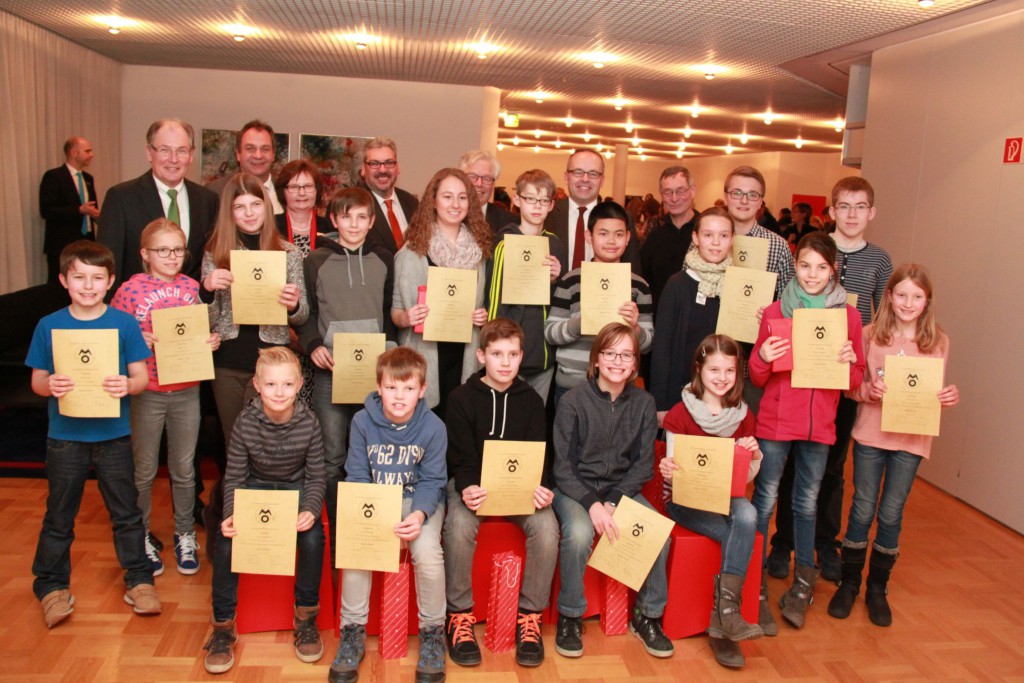 Stolz präsentieren sich die Preisträger der Mathematik-Olympiade am Städtischen Gymnasium Porta Westfalica in fröhlicher Runde bei der Siegerehrung im ev. Gemeindehaus Hausberge mit dem Landrat, der Vertreterin der Stadt Porta Westfalica und Vertretern der Stadtsparkasse Porta Westfalica. Viele der beteiligten Schüler unseres Gymnasiums haben tolle Auszeichnungen (Urkunden und kleine Präsente) erhalten: Charlotte...weiterlesen