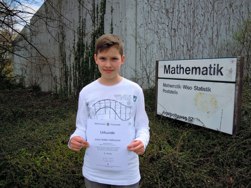Julian belegt wieder einen ersten Platz – diesmal bei der Mathematik-Olympiade auf Bundesebene (veranstaltet vom 12.-15.5.2019 in Chemnitz) Auch in Sachsen an der Technischen Universität Chemnitz ist das Städtische Gymnasium Porta Westfalica jetzt bekannt: Julian Robin Völlmecke, Olympiadeklasse 10, Schüler der EF des Städtischen Gymnasiums Porta Westfalica (NRW), hat einen großartigen 1. Preis bei der Bundesrunde...weiterlesen