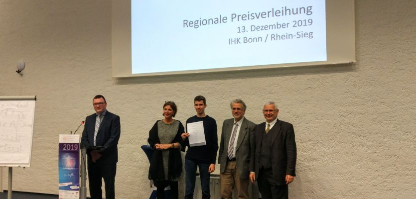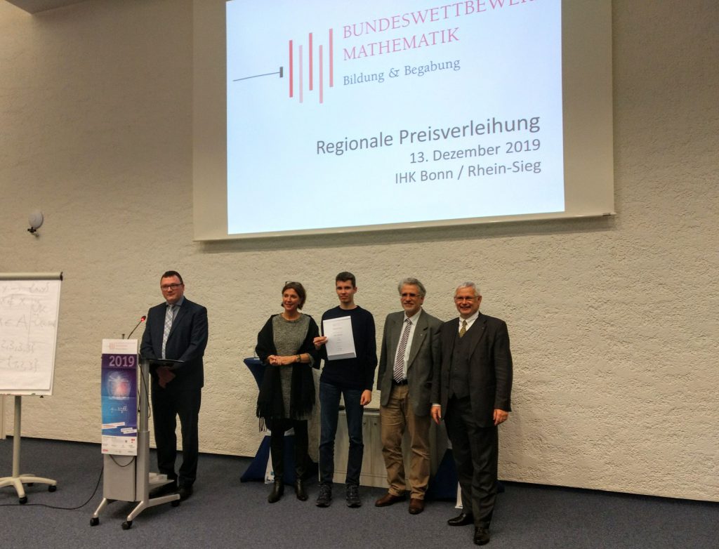 Julian hat ein weiteres Mal gewonnen! In der 2. Runde des Bundeswettbewerbs Mathematik holt er sich damit die Qualifikation für das Bundesfinale, das im Februar 2020 in Hessen stattfinden wird. Wir sagen: "Herzlichen Glückwunsch" und drücken für das Finale die Daumen! Patrick Bauermann vom Talentförderzentrum "Bildung und Begabung" und Leiter des Wettbewerbs, NRW-Schulministerin Yvonne...weiterlesen