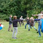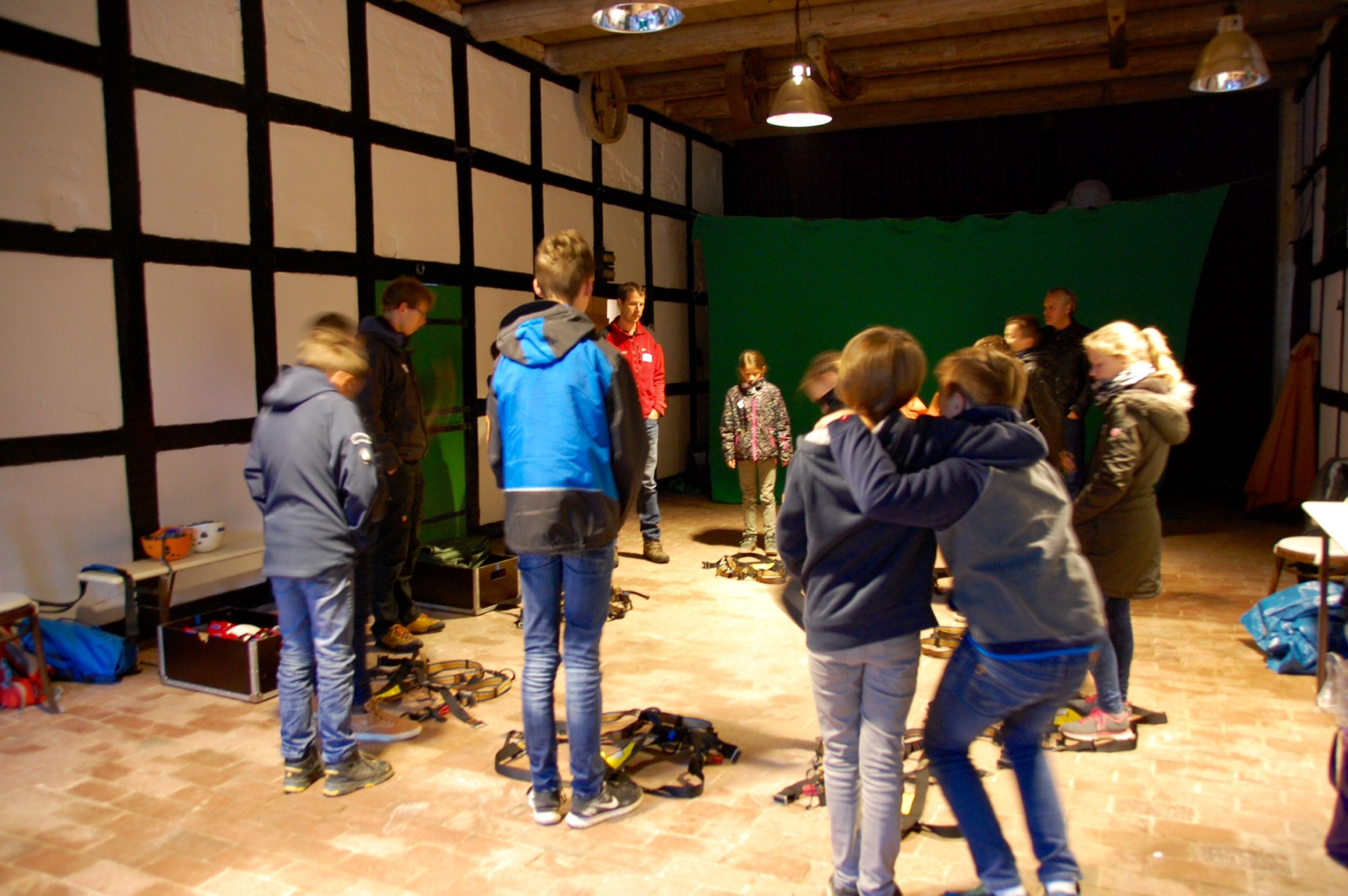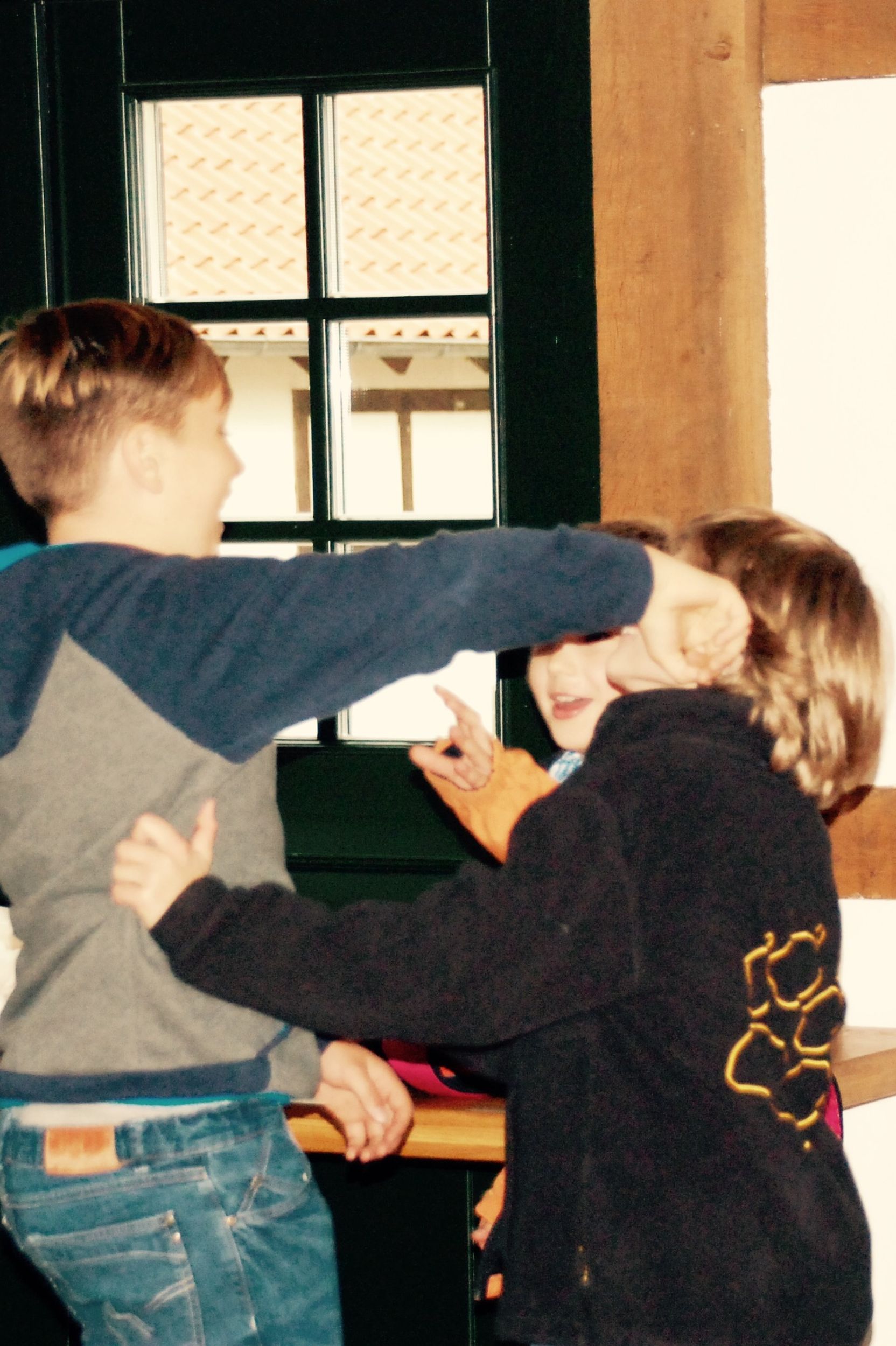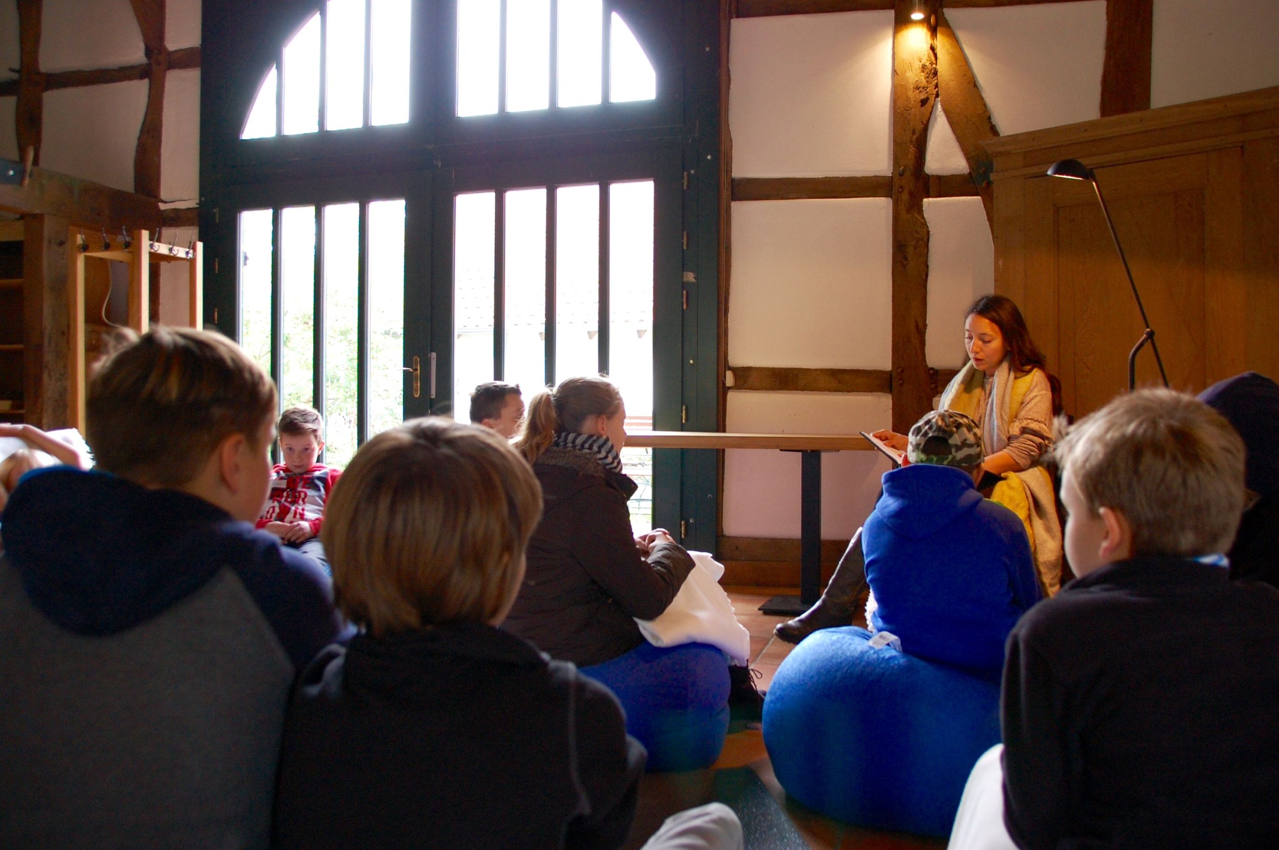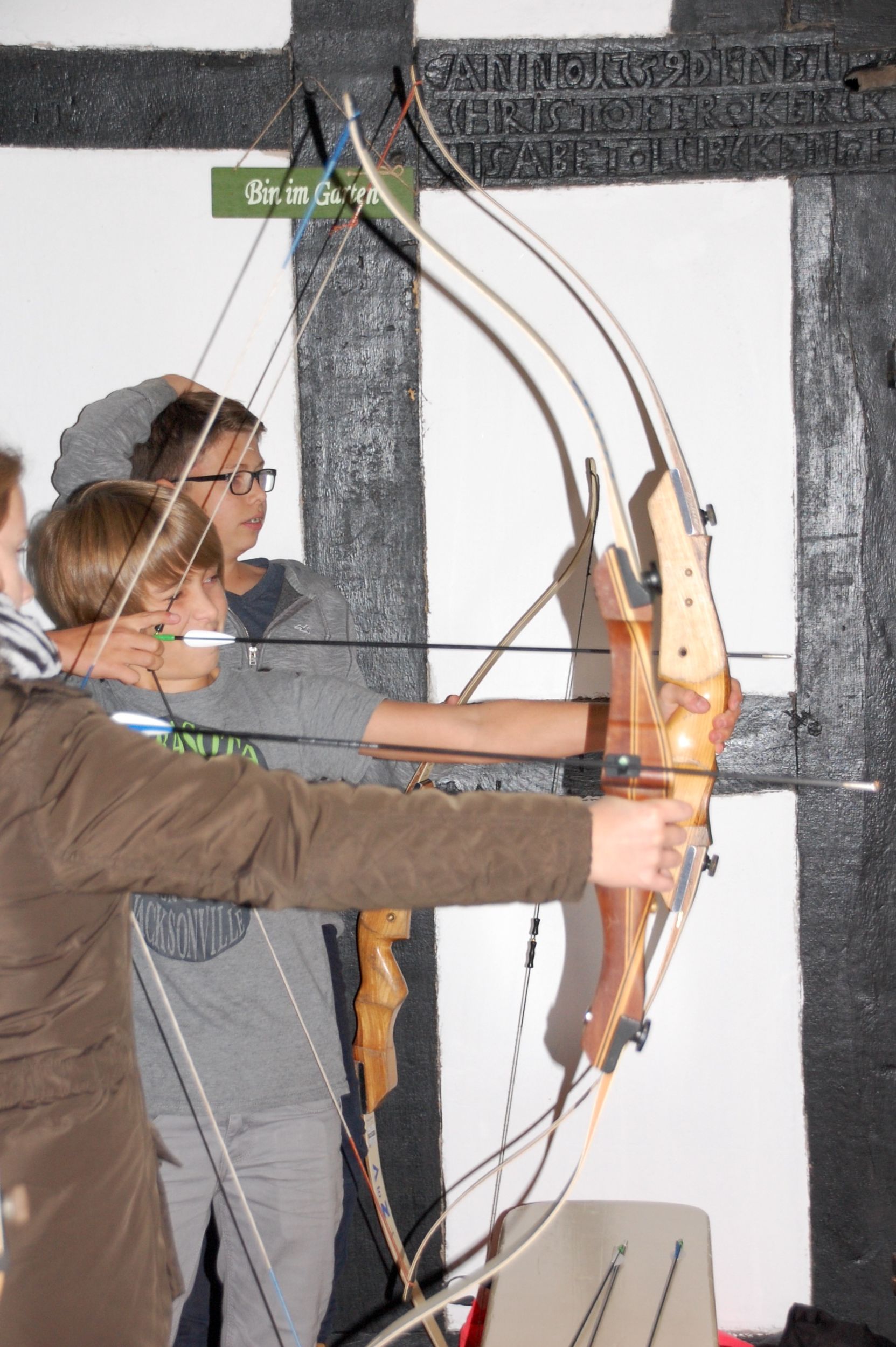 Das galt auch für unsere Schüler beim Herbstcamp auf dem Hof von Laer & TeichHof Schmiede in Herford , zu dem das Literaturbüro OWL auch 2016 eingeladen hatte: Zuerst Lesungen aus den Romanen „Der wilde Wald“ und „Die schwarze Stadt“ lauschen, dann wie die Helden in den Romanen unter fachkundiger Anleitung fechten, raufen und in Bäumen klettern… In Aktion zu sehen sind Hendrik Spieß und Niklas Mohme (Jgst. 6) und Joris Vanhoof und Julius Spieß (Jgst. 8).