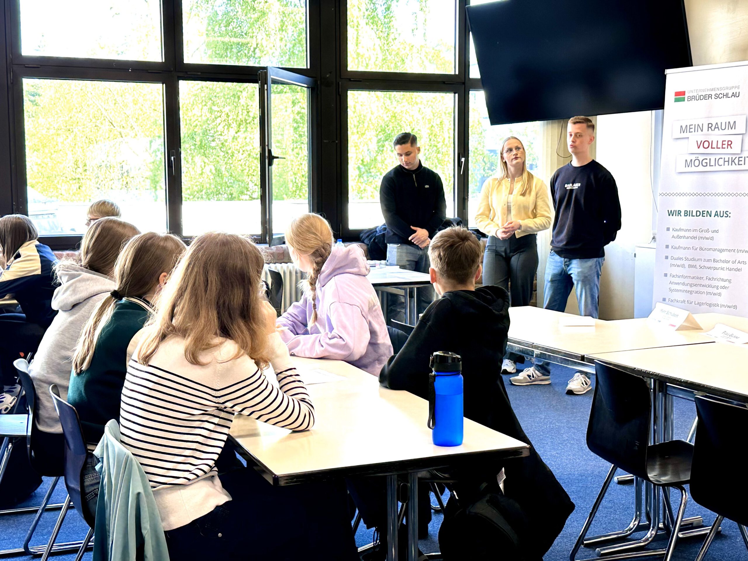 Am Projekttag selbst profitierten die Lernenden von der Begegnung mit Auszubildenden und Ausbildern verschiedener Unternehmen aus der Region, darunter die Sparkasse Bad Oeynhausen – Porta Westfalica, die Brüder Schlau GmbH und WAGO. Unsere Schüler*innen hatten die Gelegenheit, sich auszutauschen und wertvolle Einblicke in verschiedene Berufsfelder zu erhalten. Nach diesem inspirierenden Vormittag kehrten sie mit einer Fülle von Informationen und hilfreichen Tipps in ihre Schulroutine zurück.