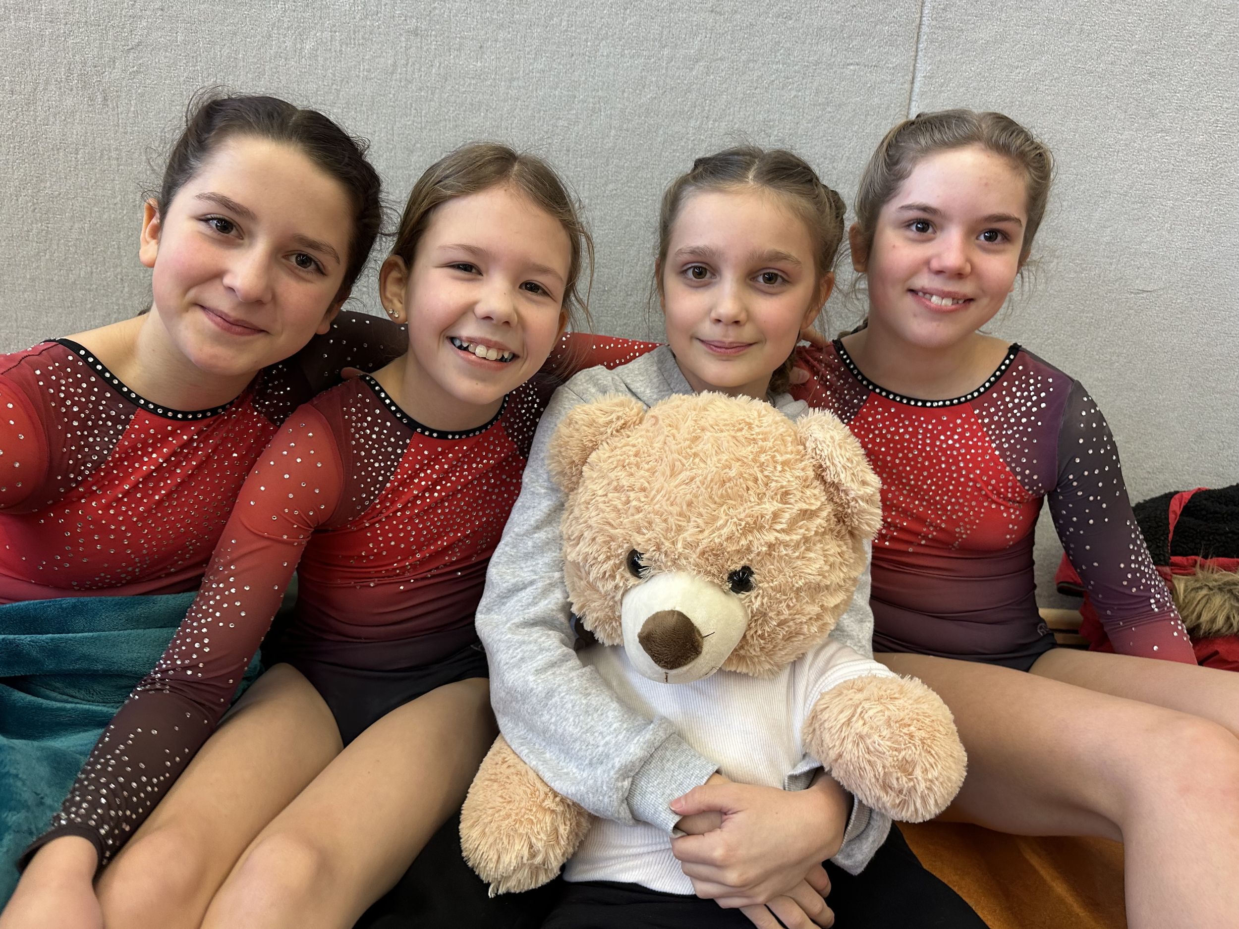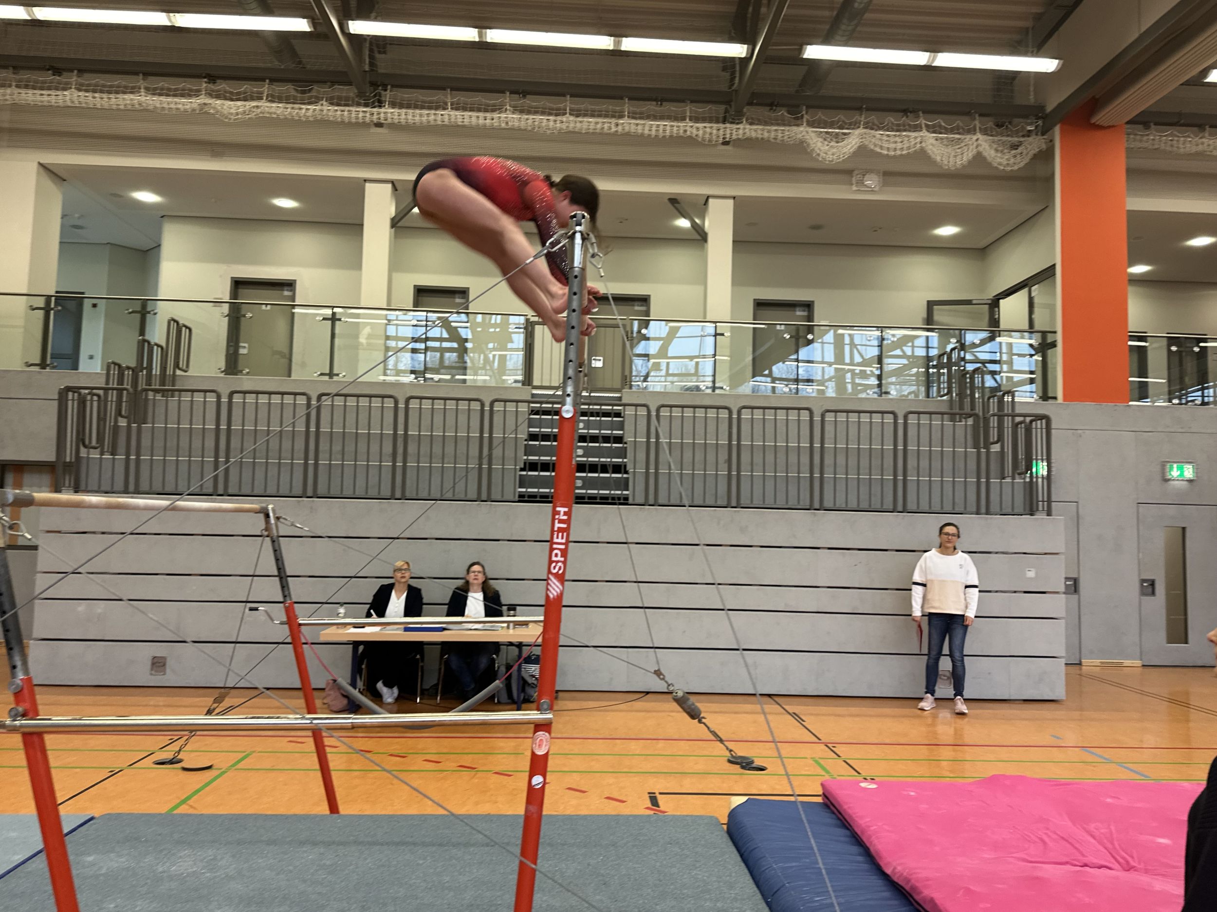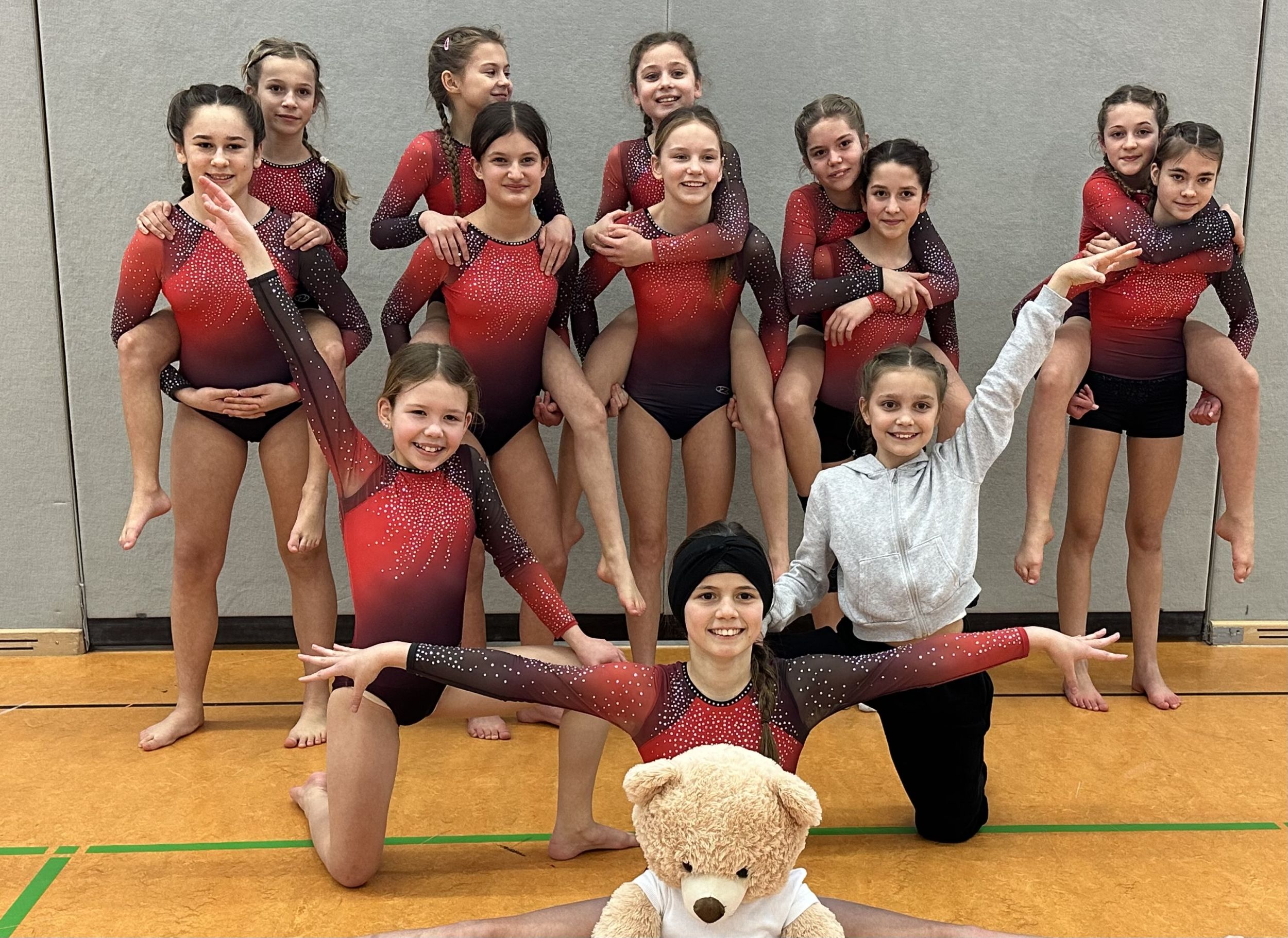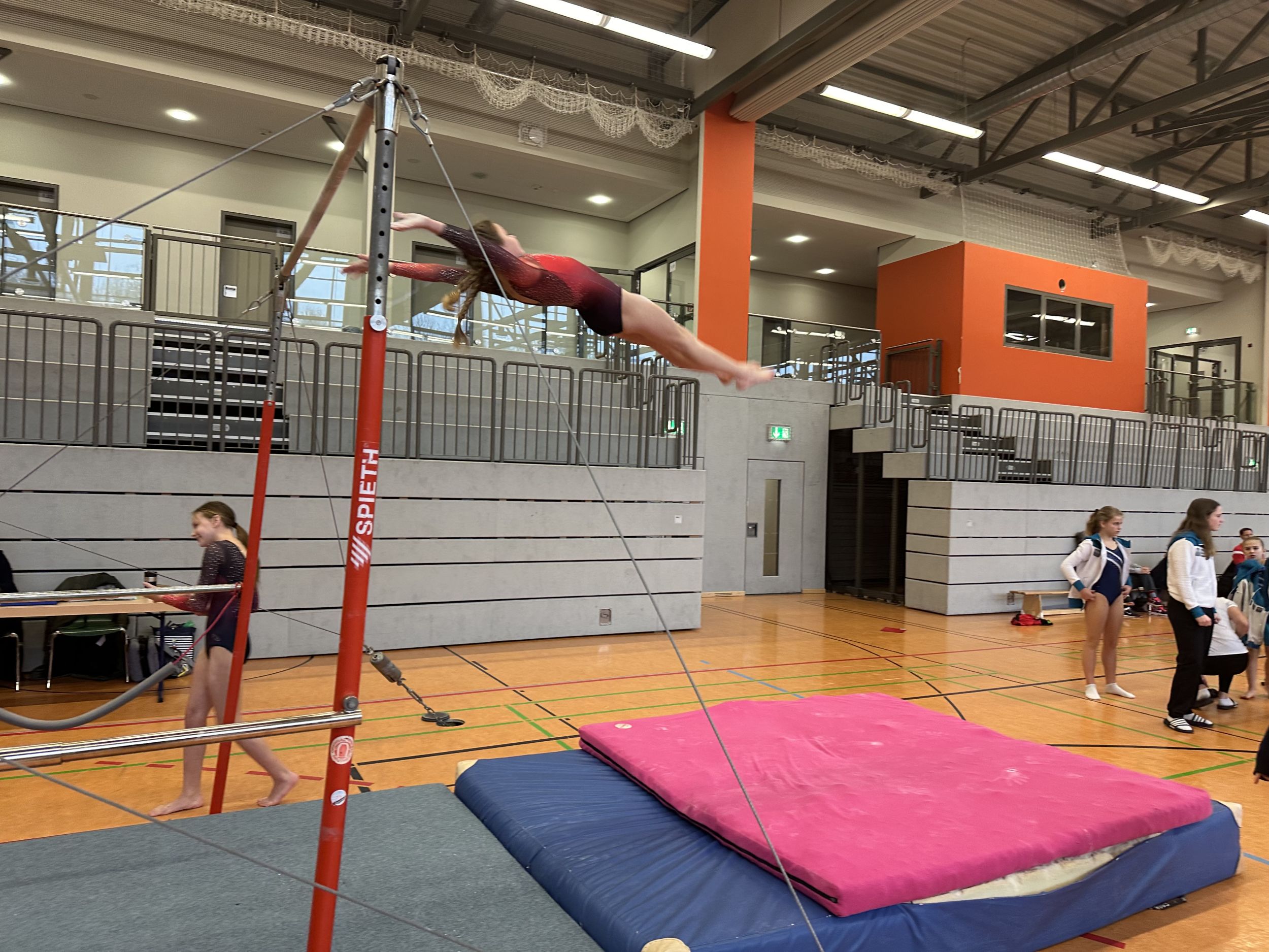 Mit Emily und Frau Zimmermann hatten die Mädchen gute Unterstützung. Die Schülerinnen haben sich alle sehr angestrengt und ihr Bestes gegeben. Leider gab es noch beim Aufwärmen eine kleine Verletzung und die Schülerin aus dem zweiten Team konnte am Wettkampf nicht mehr teilnehmen. Das bedeute für die Mannschaft leider auch, dass nicht bei jedem Gerät genug Mädchen an den Start gehen konnten und dadurch Punkte abgezogen wurden. Außerdem gab es leider ein paar Probleme mit der Musik. Die noch sehr jungen Turnerinnen sind sich aber sicher, dass sie im nächsten Jahr wieder an den Start gehen wollen und sich in der Zwischenzeit verbessern werden. Sie hatten sehr viel Spaß, was auch die guten Leistungen zeigten.