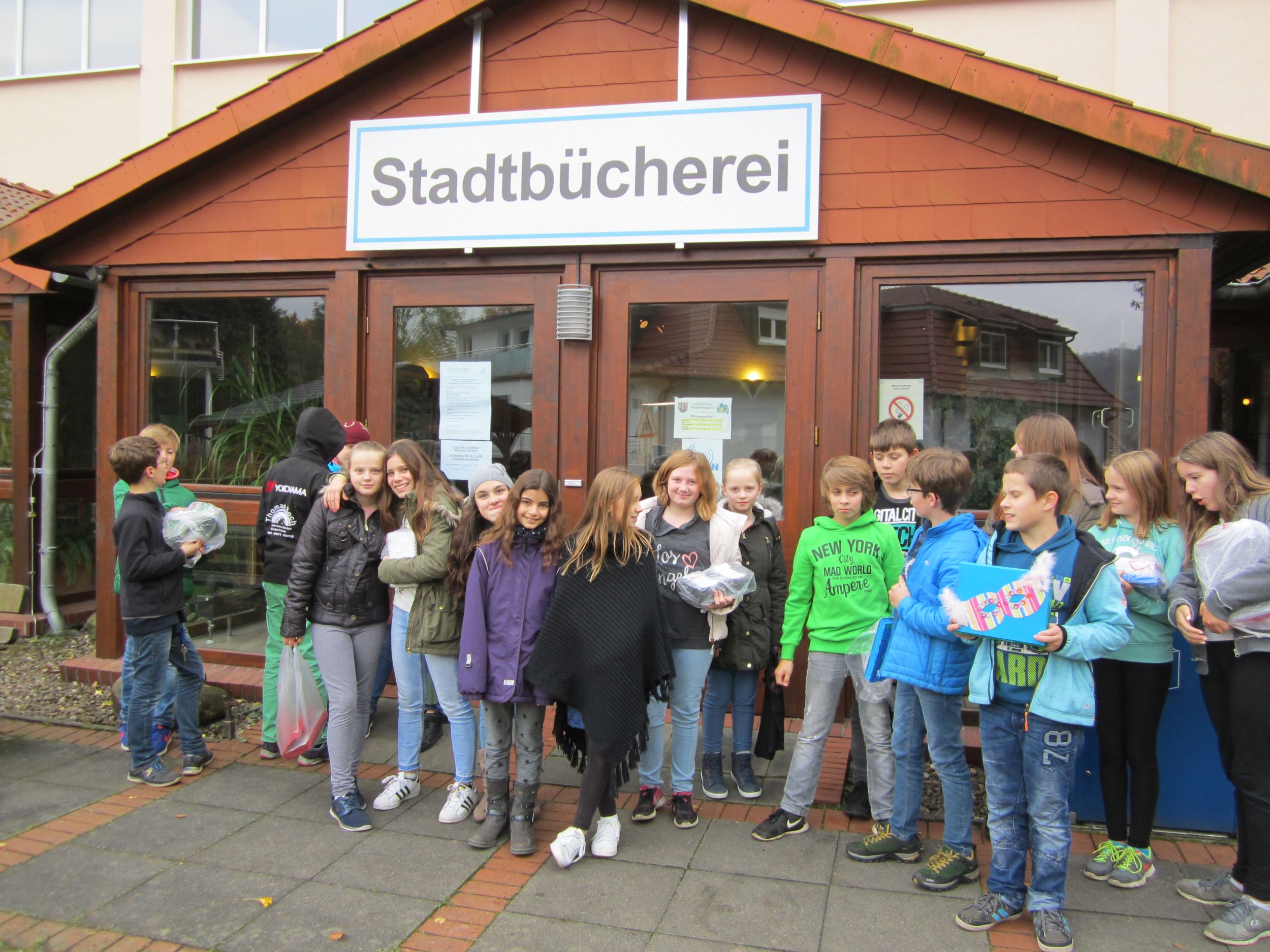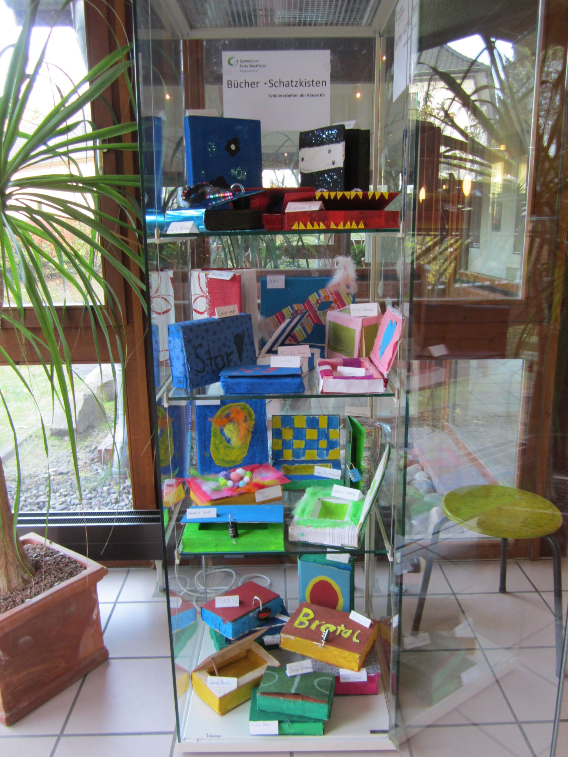 Unsere Schatzkisten, die wir aus alten, ausrangierten Büchern hergestellt haben, sind aus der Schulstraße in die Stadtbücherei umgezogen. Bis Weihnachten sind sie dort noch zu bewundern, dann wollen wir zu Hause unsere Schätze darin verstauen.