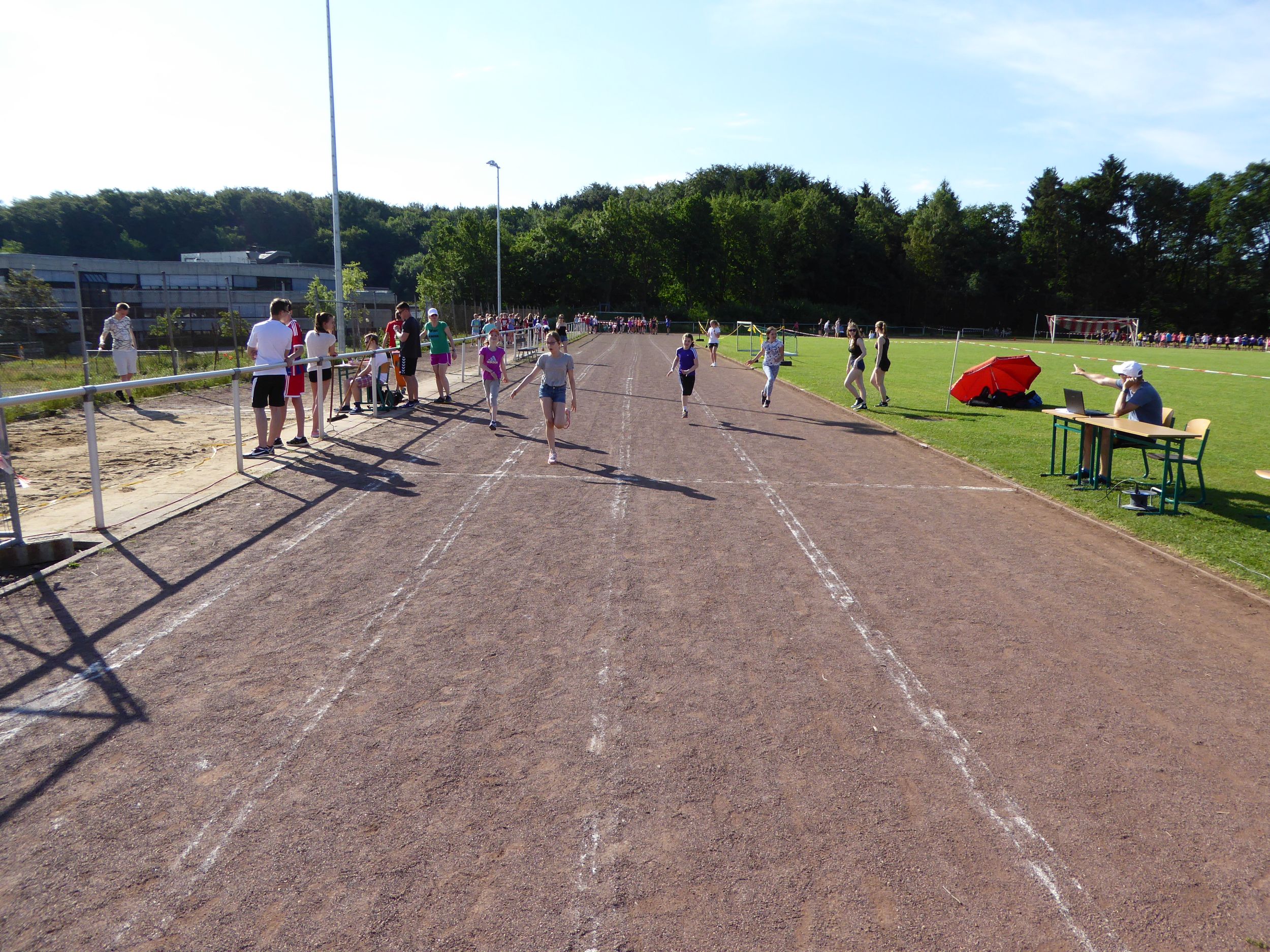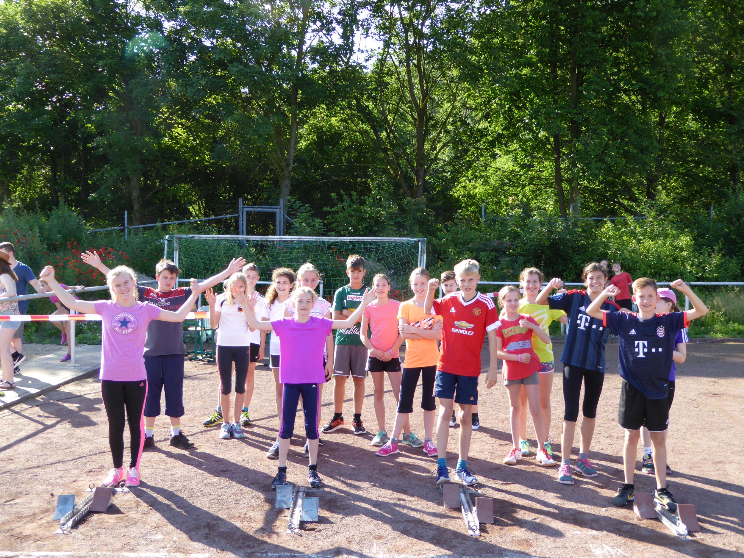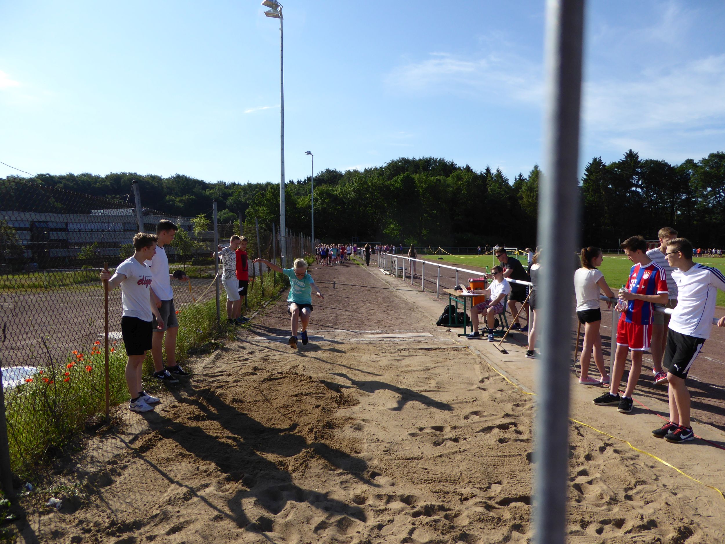 In entspannter Atmosphäre fanden die diesjährigen Bundesjugendspiele auf dem Bergsportplatz in Hausberge statt. Die Spiele begannen bei noch gemäßigten Temperaturen mit den Mittelstreckenwettbewerben und setzten sich fort für die einzelnen Teilnehmer mit den übrigen Disziplinen. Den Hochsprungwettbewerb mit ins Programm aufgenommen zu haben, erweist sich auch im zweiten Jahr als glückliche Entscheidung.