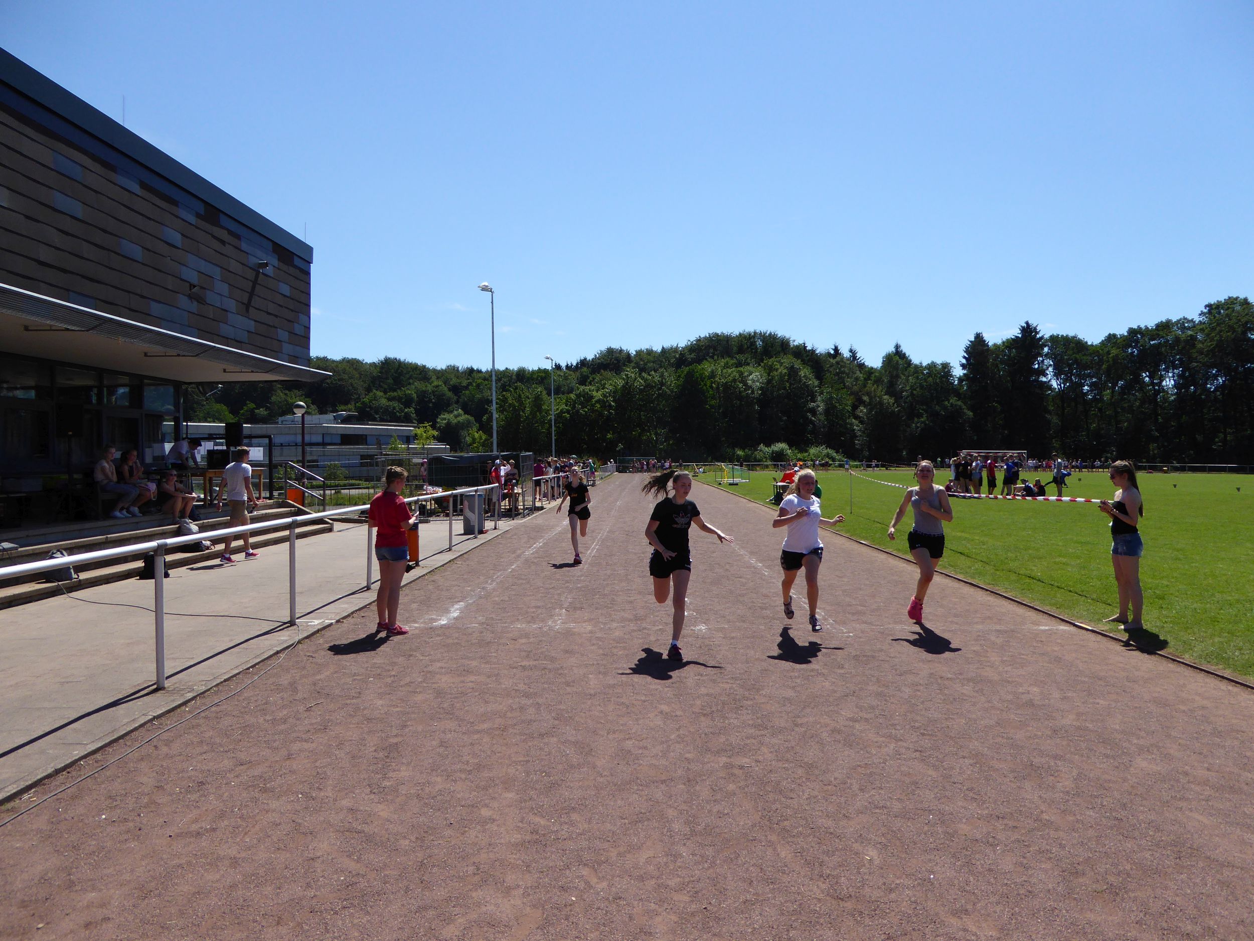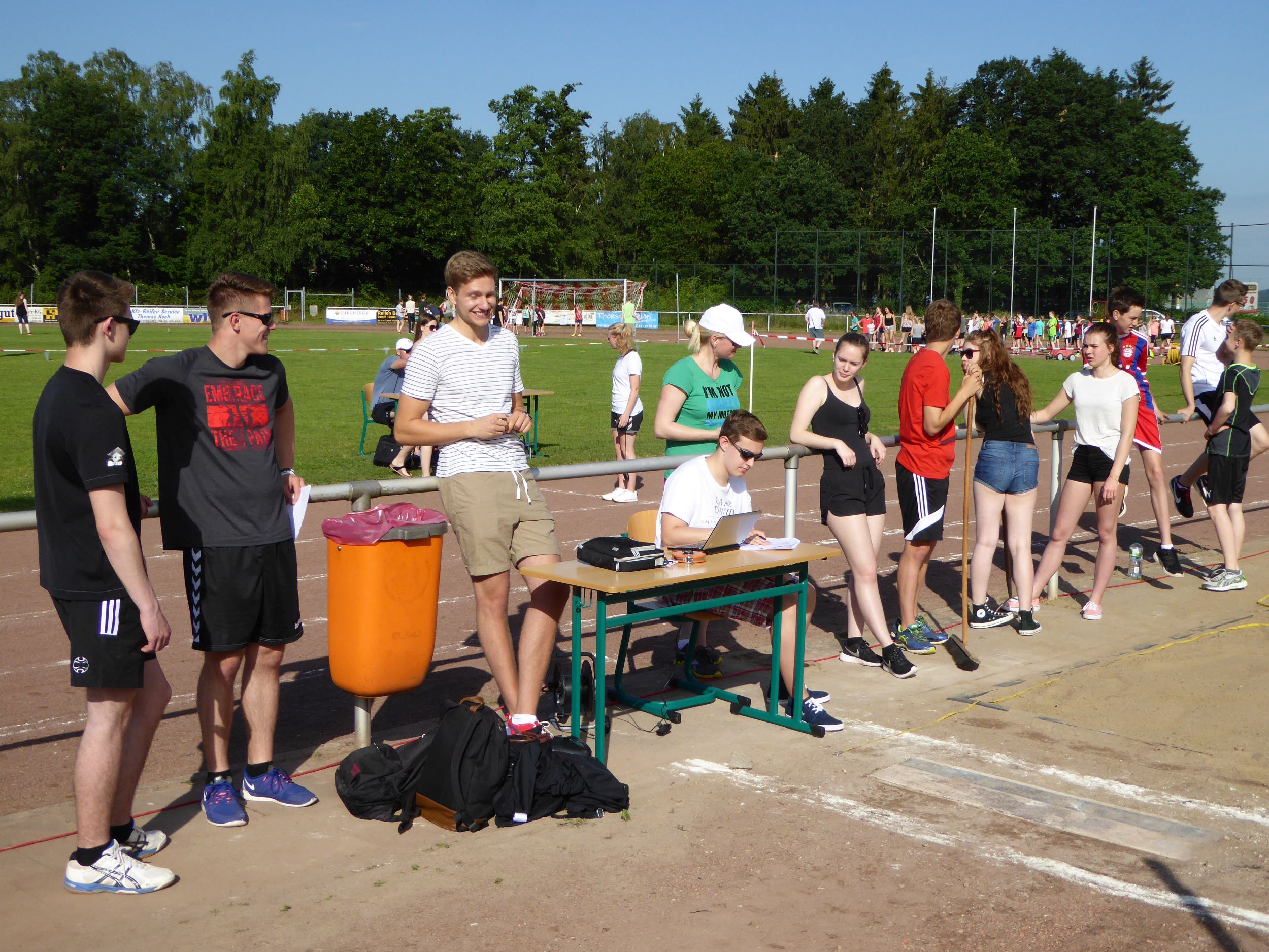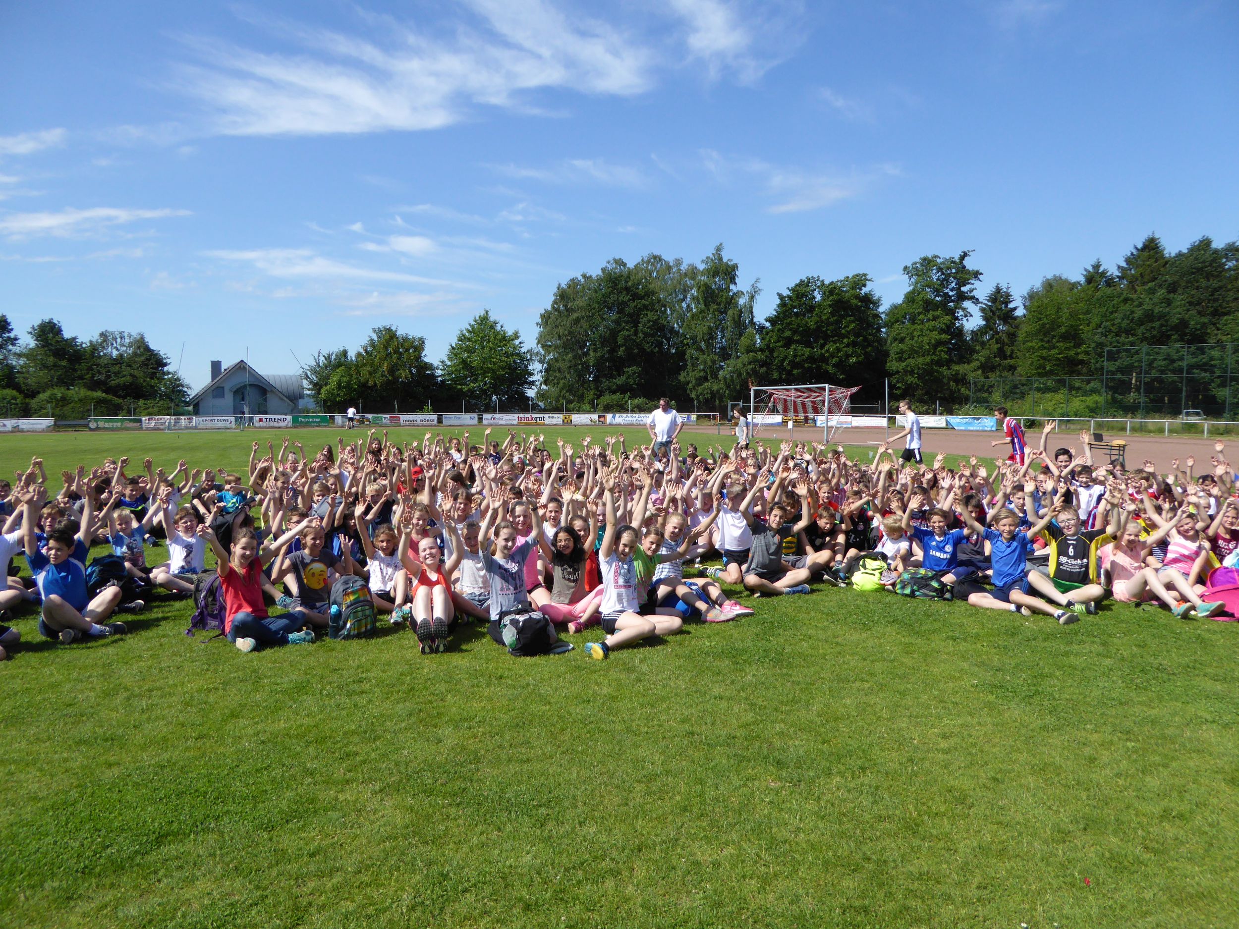 In entspannter Atmosphäre fanden die diesjährigen Bundesjugendspiele auf dem Bergsportplatz in Hausberge statt. Die Spiele begannen bei noch gemäßigten Temperaturen mit den Mittelstreckenwettbewerben und setzten sich fort für die einzelnen Teilnehmer mit den übrigen Disziplinen. Den Hochsprungwettbewerb mit ins Programm aufgenommen zu haben, erweist sich auch im zweiten Jahr als glückliche Entscheidung.