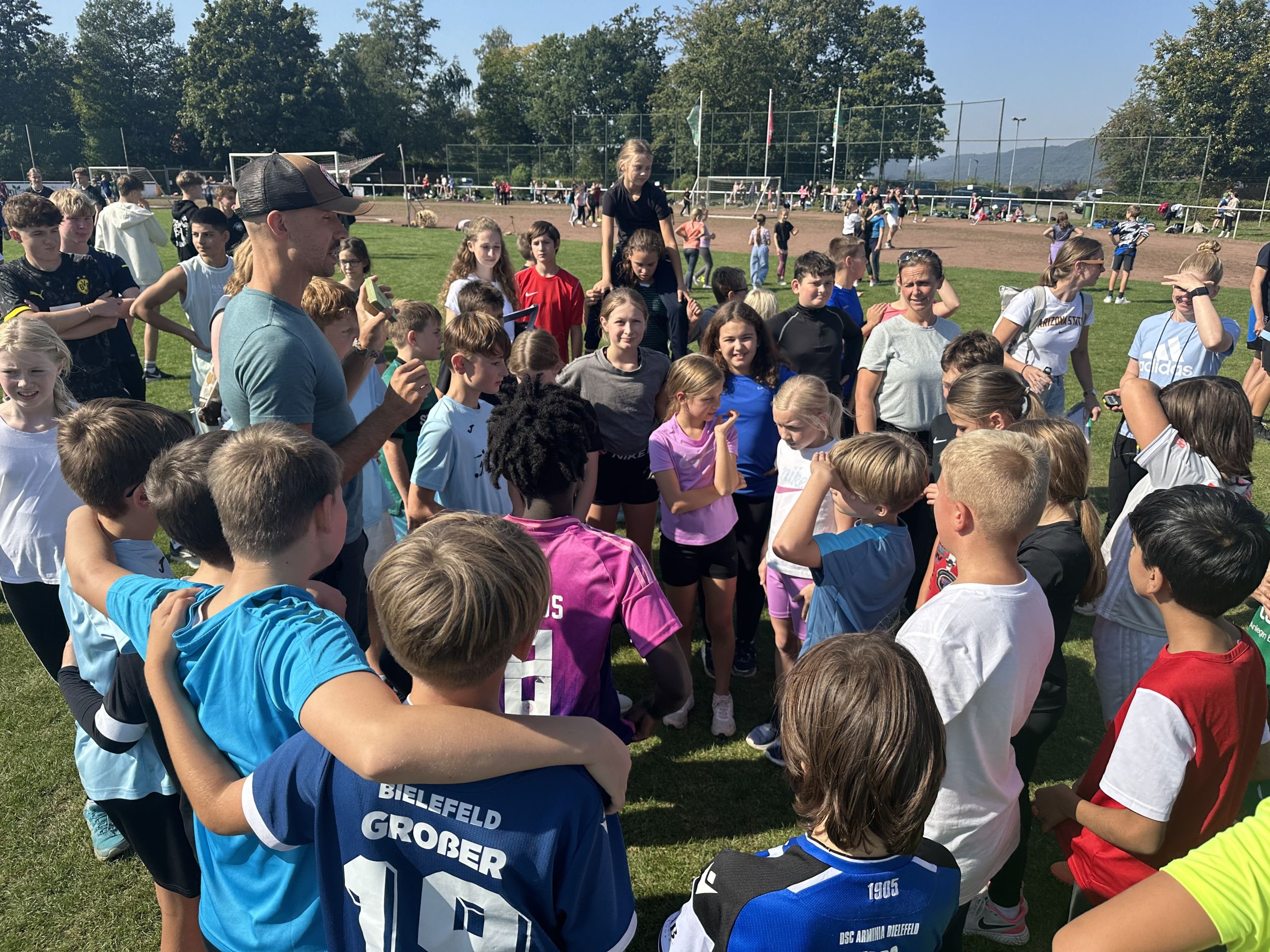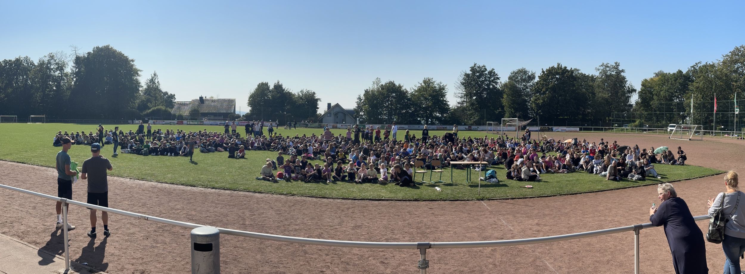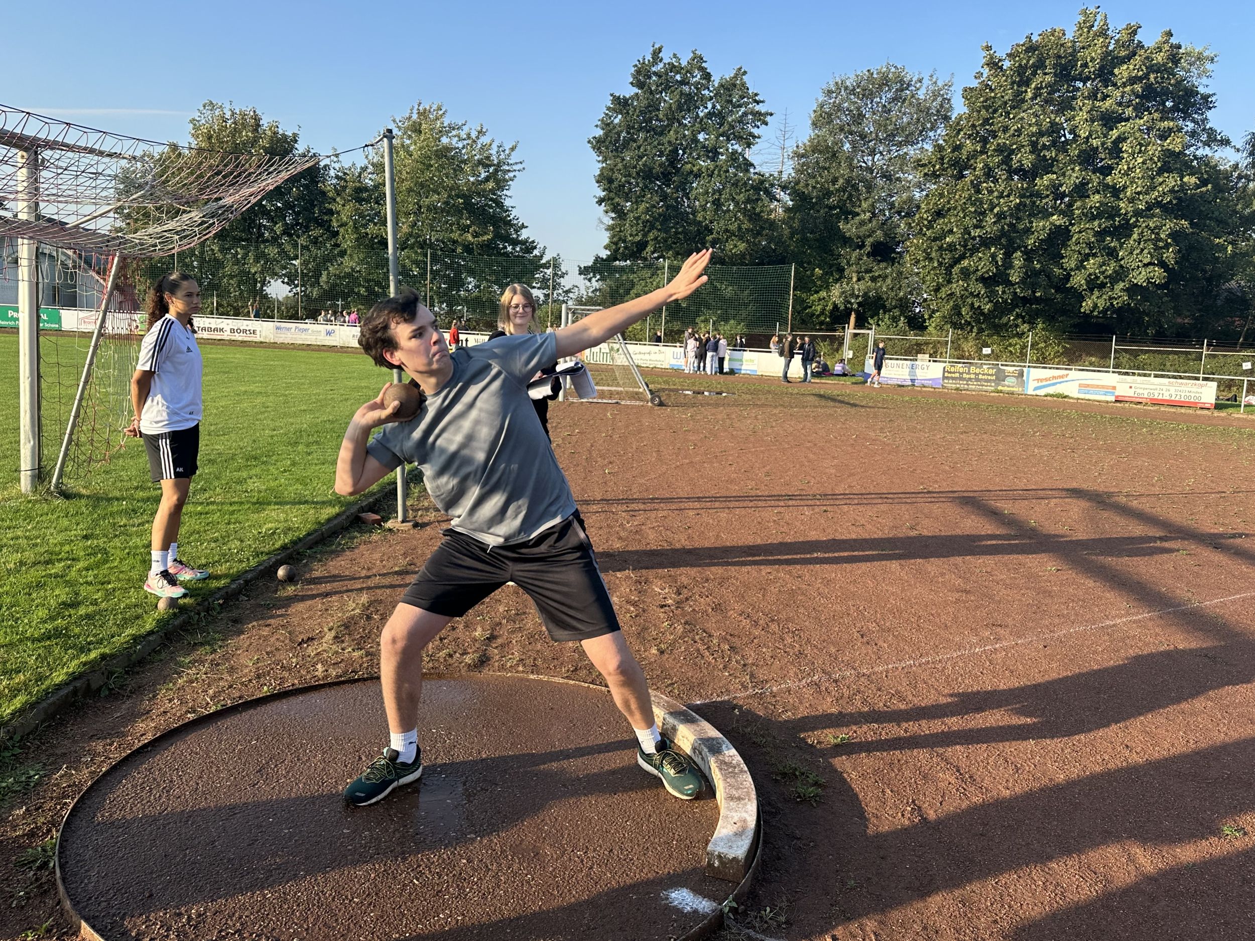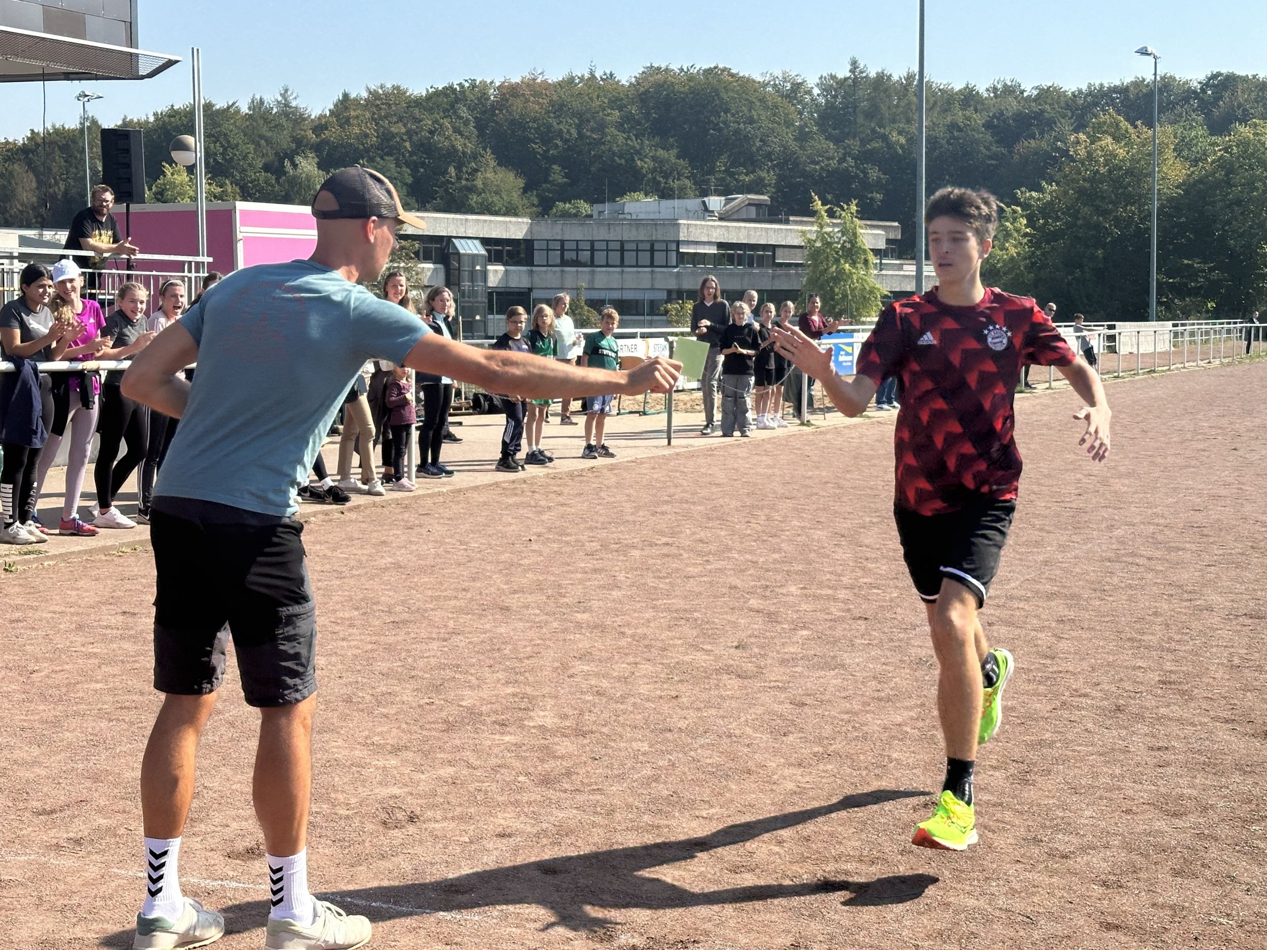 Ein strahlend schöner Spätsommertag Ende September. Die gesamte Schulgemeinde ist mit über 800 Schülerinnen und Schülern, Lehrkräften, Eltern und Erziehungsberechtigten auf dem Sportplatz und feiert ein gelungenes Sportfest. Bereits zum zweiten Mal fanden die Bundesjugendspiele gleichzeitig für die gesamte Schülerschaft mithilfe der tatkräftigen Unterstützung der Lehrkräfte und Schülerinnen und Schüler aus der Jahrgangsstufe Q2 statt.
