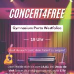 Das diesjährige Concert4free findet am 24.03.2025, um 19 Uhr im Forum des Gymnasiums statt. Der Eintritt ist frei, Einlass ist bereits um 18:30 Uhr.