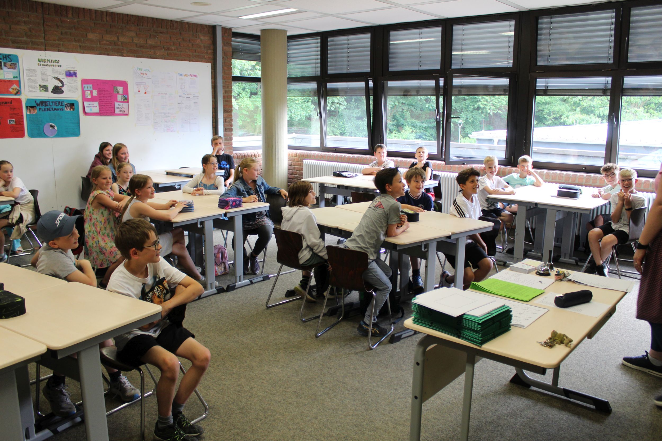 Es lag knisternde Spannung in der Luft als wir uns zunächst im Forum getroffen haben. Schulleiterin Susanne Burmester hieß die (noch) Grundschulkinder und deren Eltern im Rahmen einer feierlichen Begrüßungsveranstaltung willkommen. Unsere Jüngsten aus der Erprobungsstufe trugen musikalisch durch einen Auftritt des Chores „fresh“ unter der Leitung von Dorothee Vogel sowie sportlich durch beeindruckende Leistungen zum Gelingen des Auftakts bei.