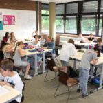 Währenddessen hatten die Eltern die Gelegenheit, sich bei Kaffee und Kuchen in der Schulstraße über die Angebote der Übermittagsbetreuung, der SV, und der Schulsozialarbeit zu informieren. Viele nutzen auch das Angebot, sich durch das Schulgebäude und über das Schulgelände führen zu lassen. Traditionell sorgten Schülerinnen und Schüler der Q1 für das leibliche Wohl – vielen Dank dafür!