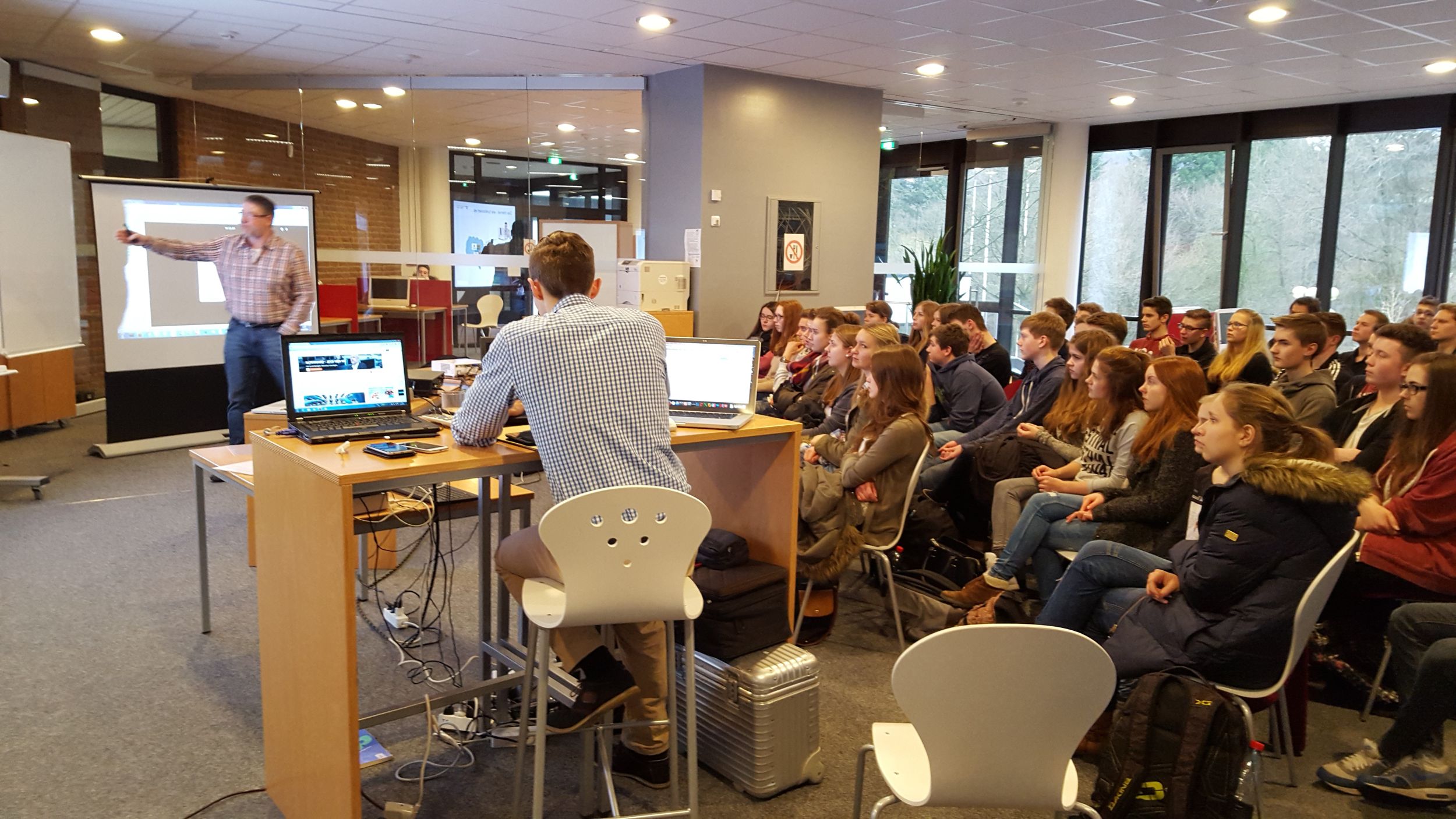 Es wurde viel gelacht im Selbstlernzentrum des Gymnasiums Porta Westfalica, trotz des ernsten Themas. Mit viel Witz und aufrüttelnden Beispielen sensibilisierte Herr Floß einmal mehr unsere Schülerinnen und Schüler für die Gefahren und Möglichkeiten im Umgang mit dem Internet: Was ist Datenschutz überhaupt? Wie sieht ein sicheres Passwort aus? Welche Gefahren bergen Apps?