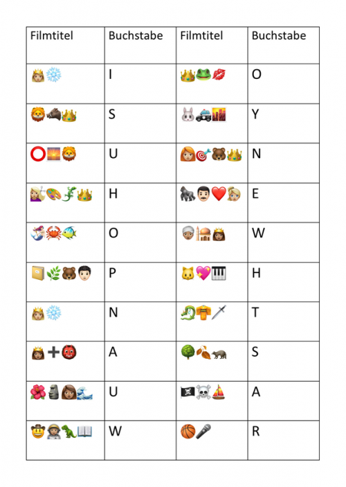 Hört euch die einzelnen Audiotracks an. Habt ihr eine Melodie erkannt? Dann ordnet der Tracknummer den passenden (in Emojis versteckten) Filmtitel zu.