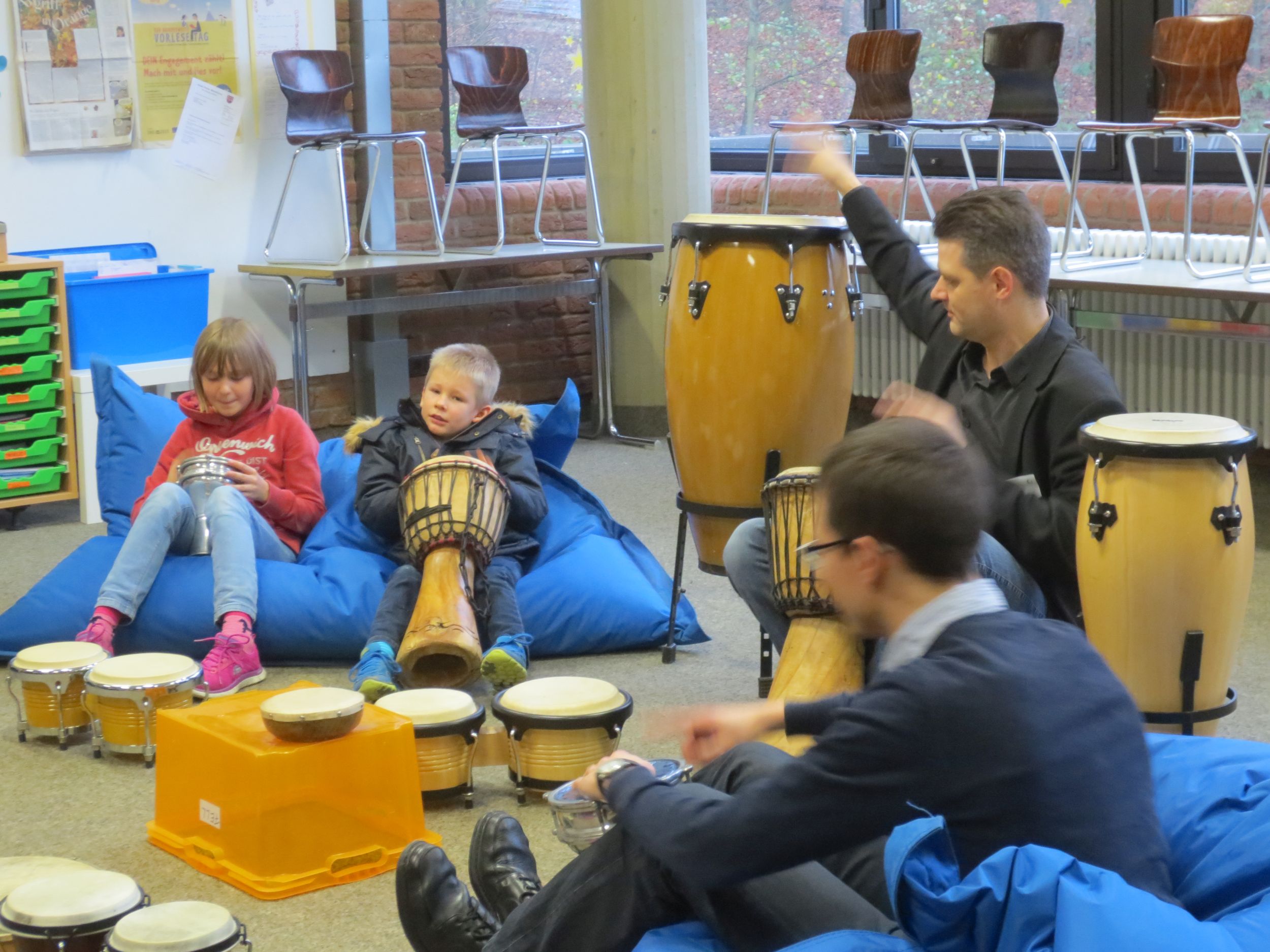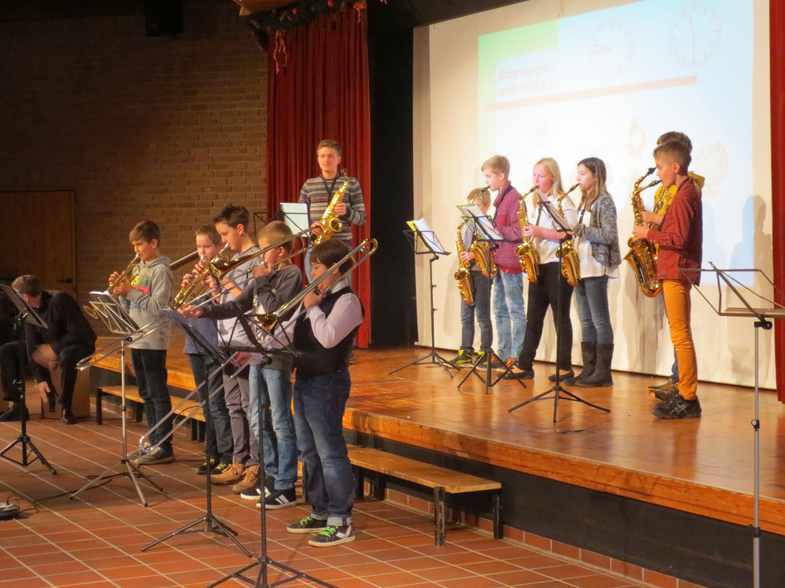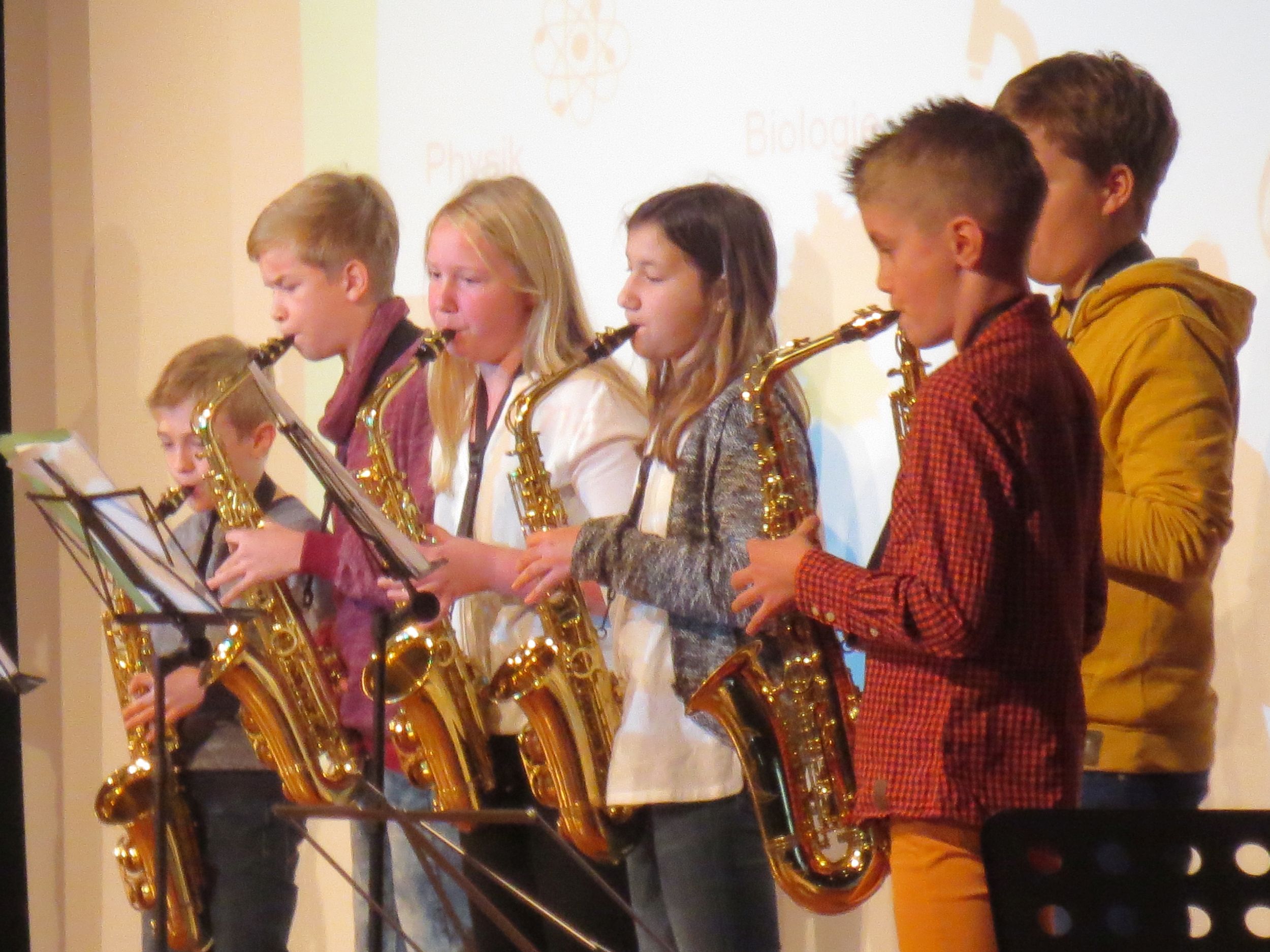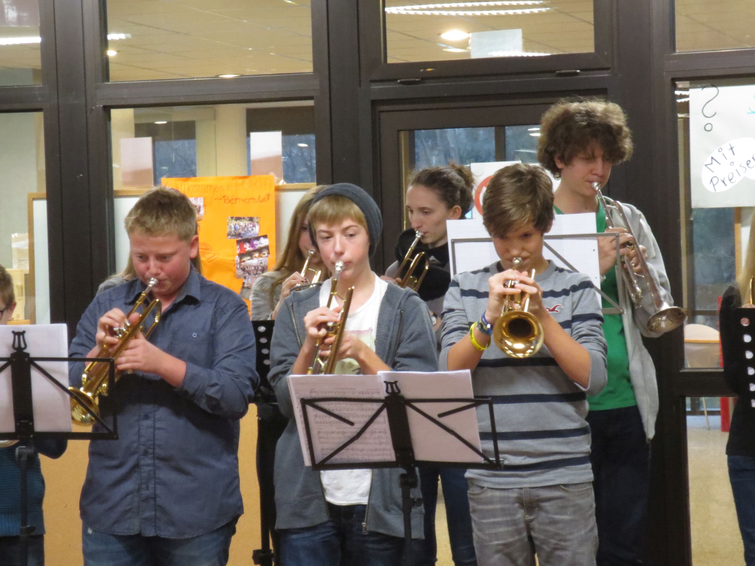 Ab 8.45 Uhr wurden die Gäste mit besinnlichen, aber auch teils schwungvollen Klängen der AG „Brass & Friends“ in der Schulstraße begrüßt und auf einen farbenfrohen Vormittag in unserem Hause eingestimmt.