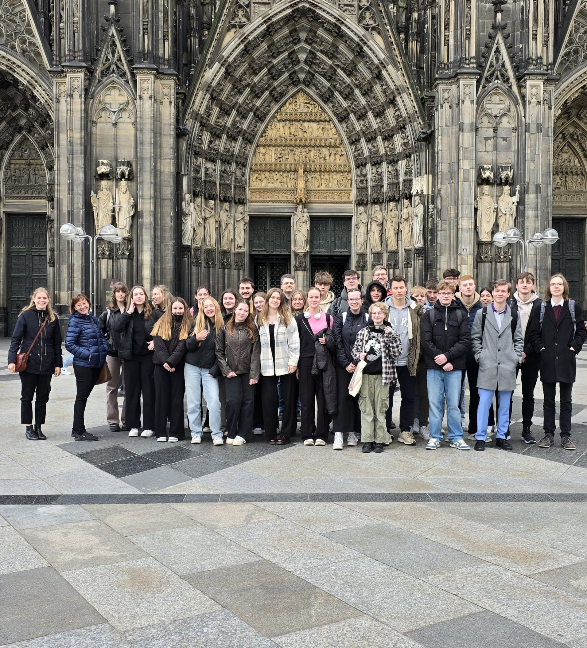 Bereits auf der Hinfahrt mit insgesamt 3,5 Stunden Zugfahrt waren wir voller Vorfreude und Aufregung. Wir tauschten uns über unsere Lieblingsanimecharaktere aus und stimmten uns auf die Vorstellung ein. In Köln angekommen, begrüßte uns der Dom in seiner eindrucksvollen Größe, und einige von uns haben es sich nicht nehmen lassen, ihn etwas näher kennenzulernen.