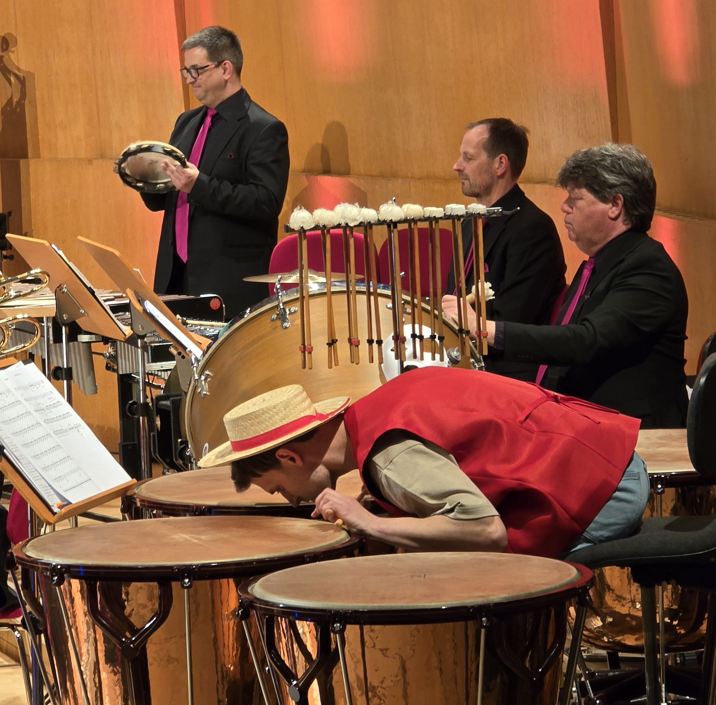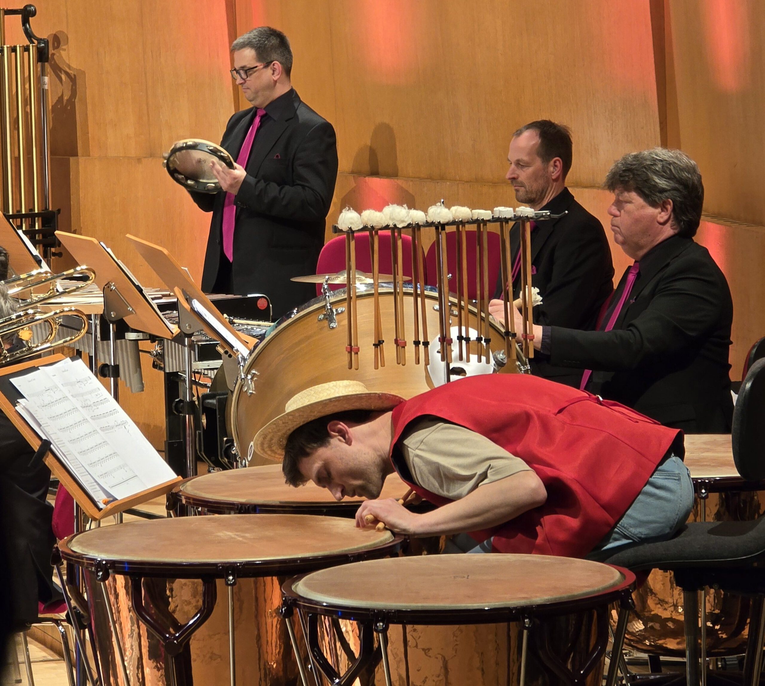 Vor und nach dem Konzert hatten wir Gelegenheit mit Thorsten Blumberg zu sprechen. Er ist ein Freund vom Musiklehrer Jan Voß und Schlagzeuger im WDR-Funkhausorchester. Er erzählte von den Vorzügen und Herausforderungen im Alltag eines Orchestermusikers und von seinen Begegnungen mit bekannten und weniger bekannten Größen in der Musikwelt. So hat er beispielsweise schon mit David Garret gespielt oder mit Helene Fischer geplaudert und Musik gemacht.