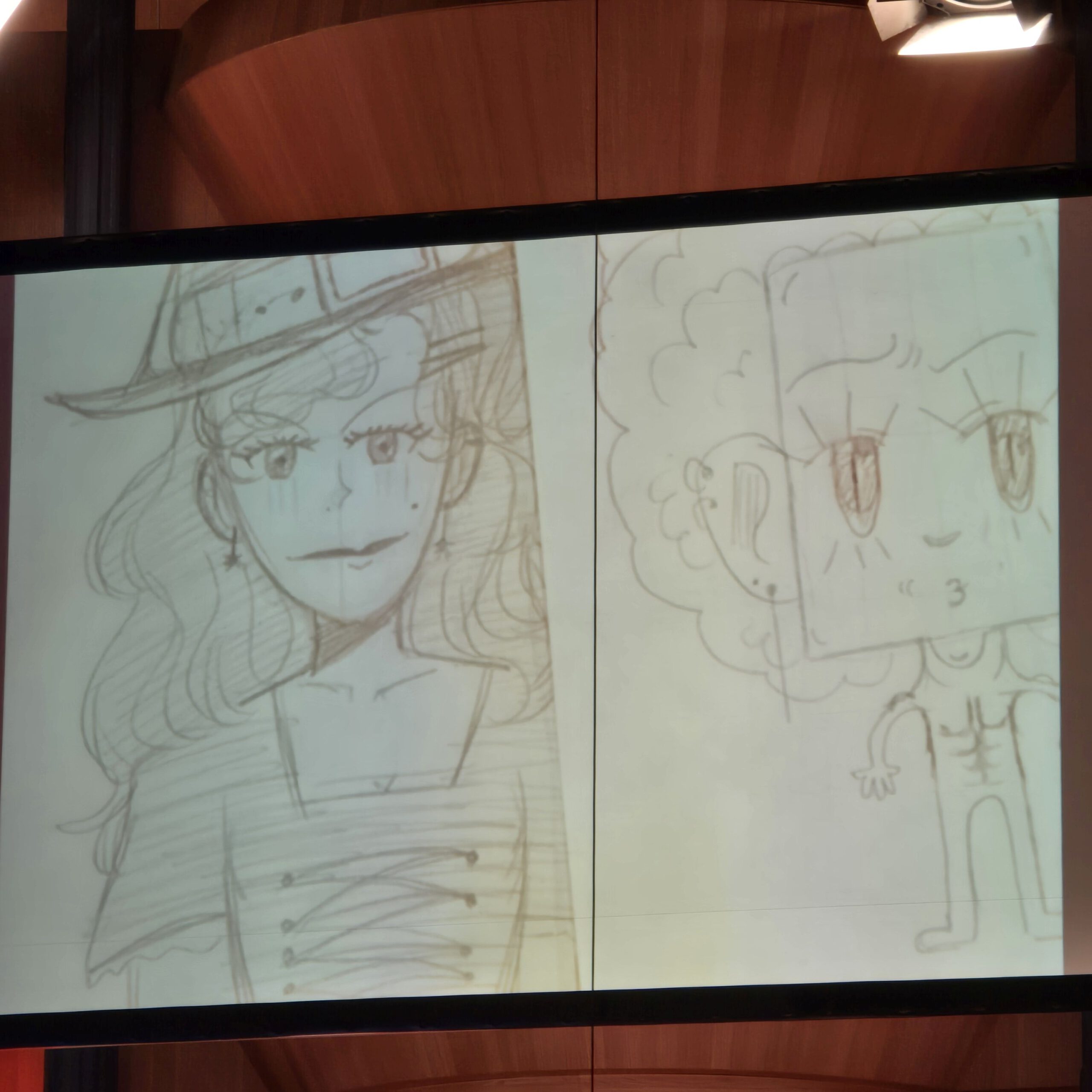 Doch nicht nur das. Neben der Musik gab es einige visuelle und interaktive Elemente. So hatten sich die Musizierenden als Animecharaktere verkleidet und wir im Publikum durften unter Anleitung einer Mangazeichnerin unsere Zeichentalente zum Vorschein kommen lassen … oder ganz neu entdecken.