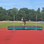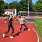 Sie wurden mit tollem Wetter und zahlreichen guten Leistungen belohnt. Vor allem im Hochsprung, wo Lucy Kelch in hervorragenden 1,40m die Latte überquerte. In ihrem ersten Hochsprungwettkampf steigerte sich die Handballerin von Sprung zu Sprung und der anfängliche Respekt schwand und verwandelte sich in Spaß. Ein wenig mehr Erfahrung in dieser Disziplin hatte Benjamin Brinkmann. Er stand seiner Mitschülerin aber in nichts nach und schraubte sich auch zur Freude der zuschauenden SchülerInnen von Sprung zu Sprung bis auf die 1,56m nach oben.