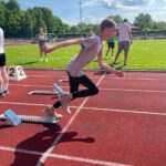 Ebenfalls ein sehr erfolgreicher Punktesammler war Georg von Lochow. Er lief an diesem Tag die schnellste 75m-Zeit (9,55 Sek) und zeigte mit 55,50 Metern, wie weit man mit einem 200 Gramm Ball werfen kann. Aber auch Aaron Vogt musste sich in diesen Disziplinen nicht vor der Konkurrenz verstecken. Bei beiden Schülern waren es, wie bei so vielen unserer AthletInnen an diesem Tag, auf jeden Fall Bestleistungen, da sie als Fußballer bzw. Handballer zum ersten Mal Leichtathletikluft schnupperten.