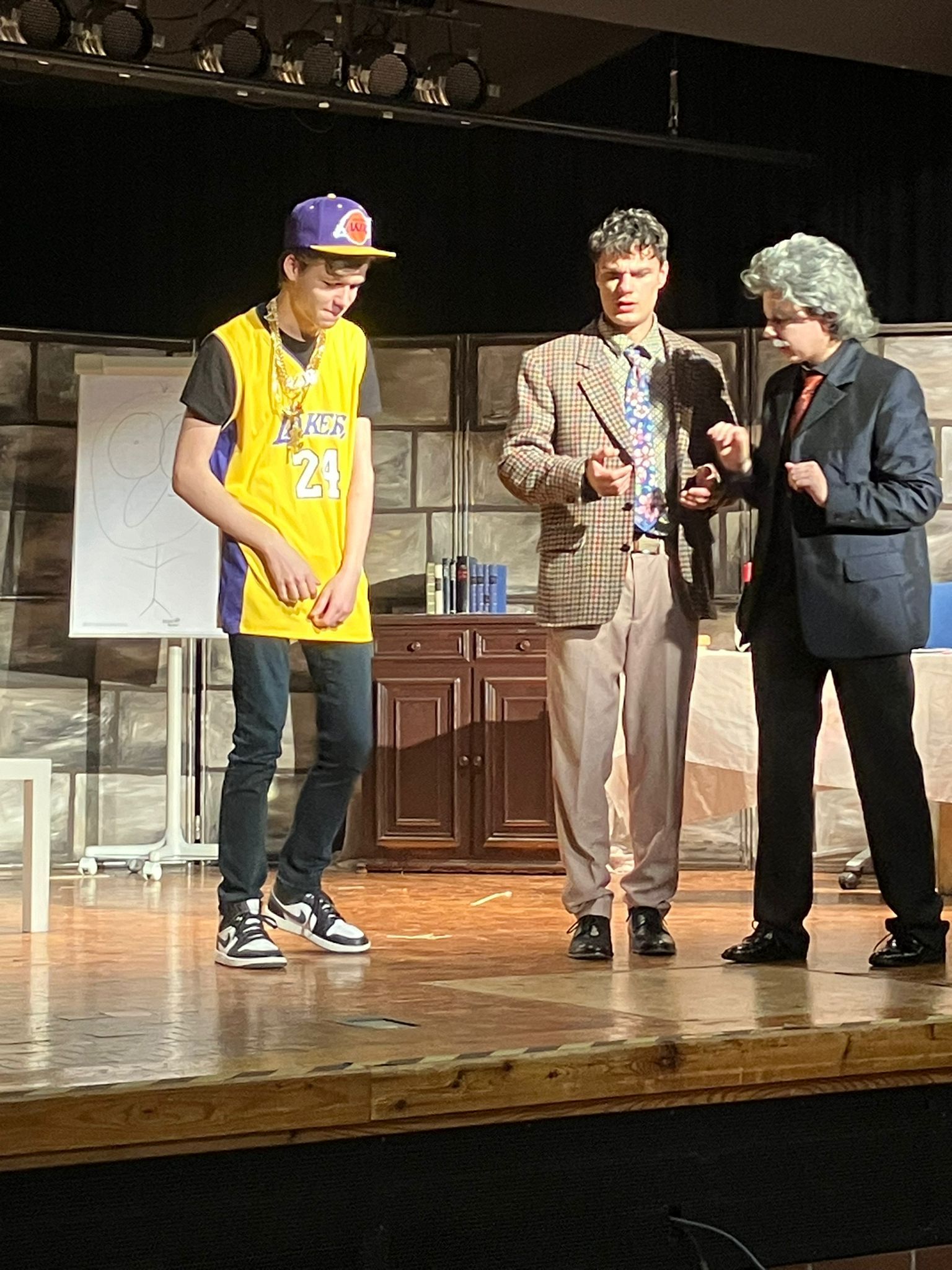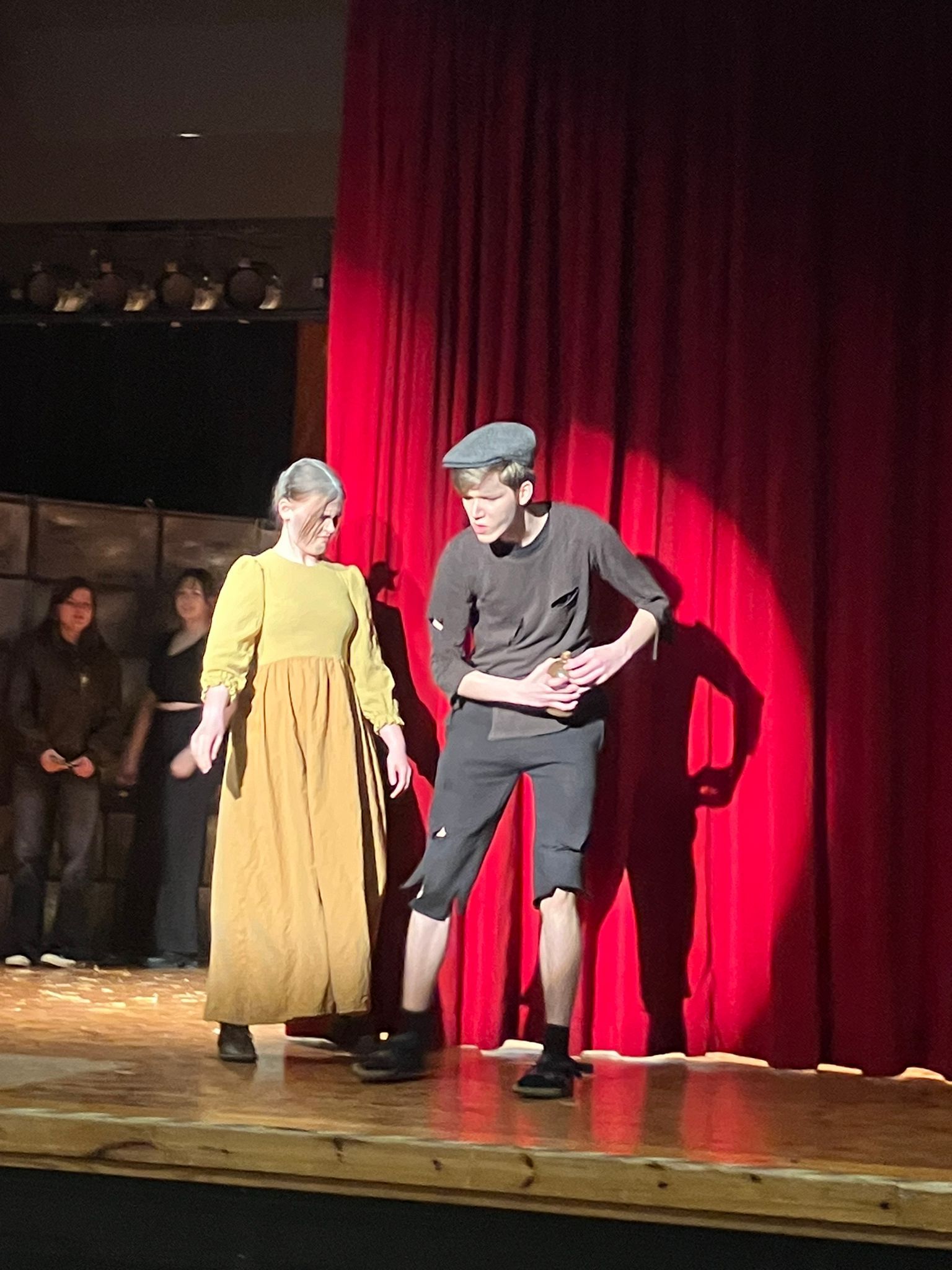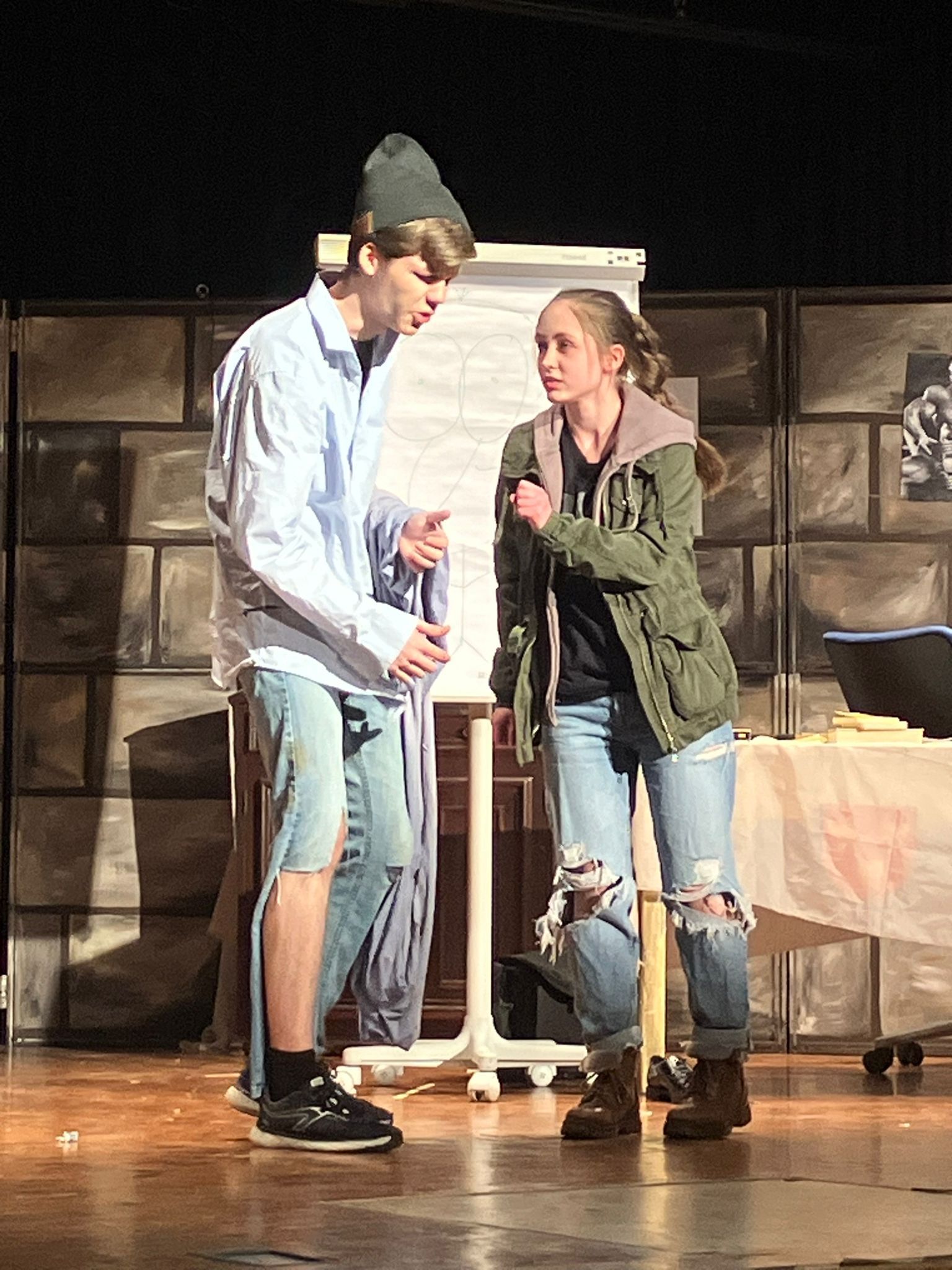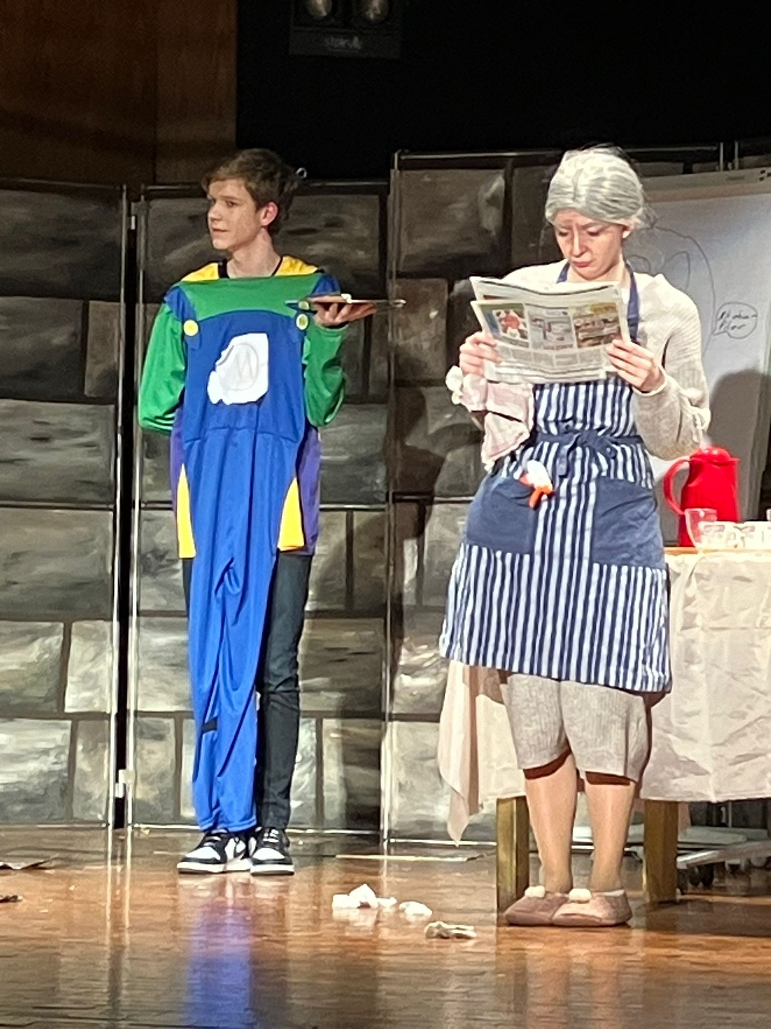Ein Zufall mündete Ende 2023 in der Entscheidung, nicht nur eine Inszenierung auf die Bühne zu bringen, sondern gleich zwei. In jeder Probe arbeiteten die Schülerinnen und Schüler parallel an beiden Stücken: „Prinz und Bettelknabe“ von Peter Klusen nach Motiven des gleichnamigen Romans von Mark Twain und „Alles nur Theater!“ von Hans-Christian Lange. Besonders die Mitglieder der Theater-AG aus der Oberstufe Q1 und Q2 mussten dabei schnell von Rolle zu Rolle wechseln, weil sie mehrere „kleine, feine Nebenrollen“ im ersten Stück spielten und dann im zweiten Stück die großen Rollen einnahmen.