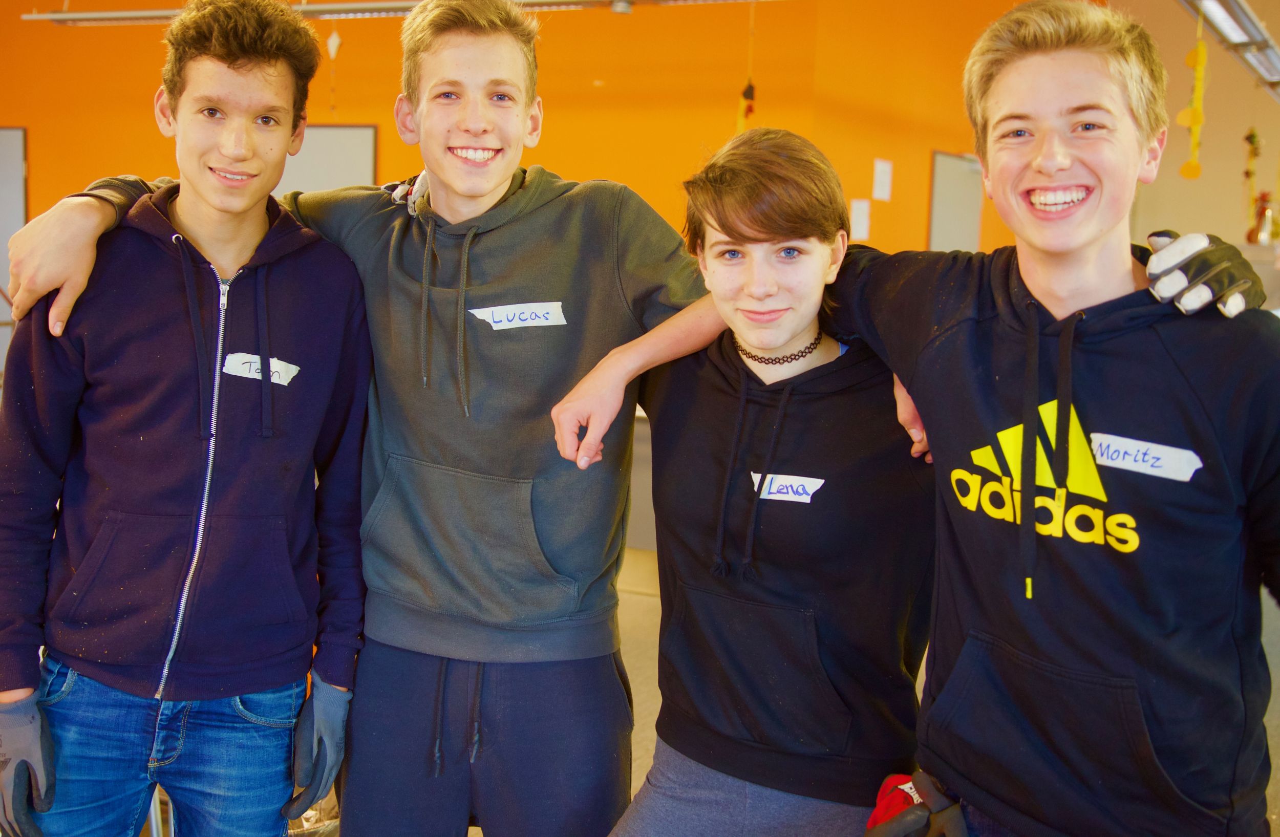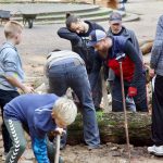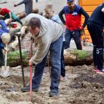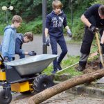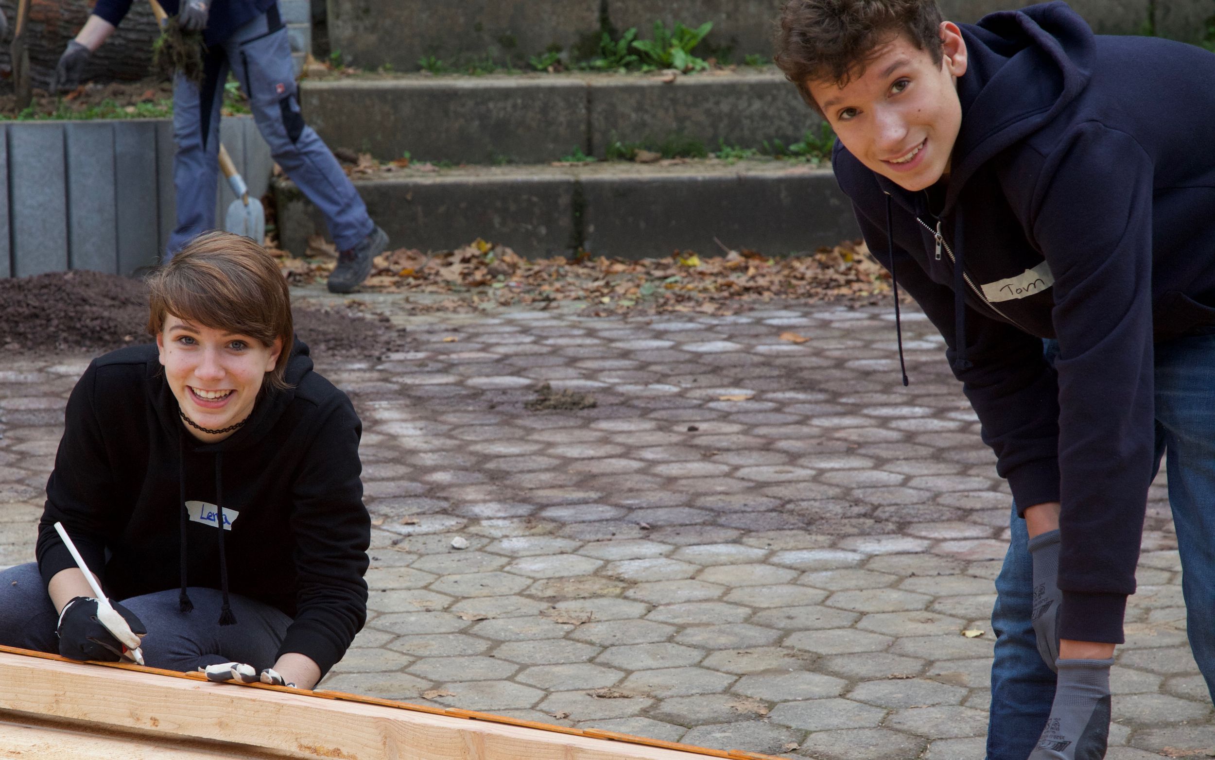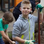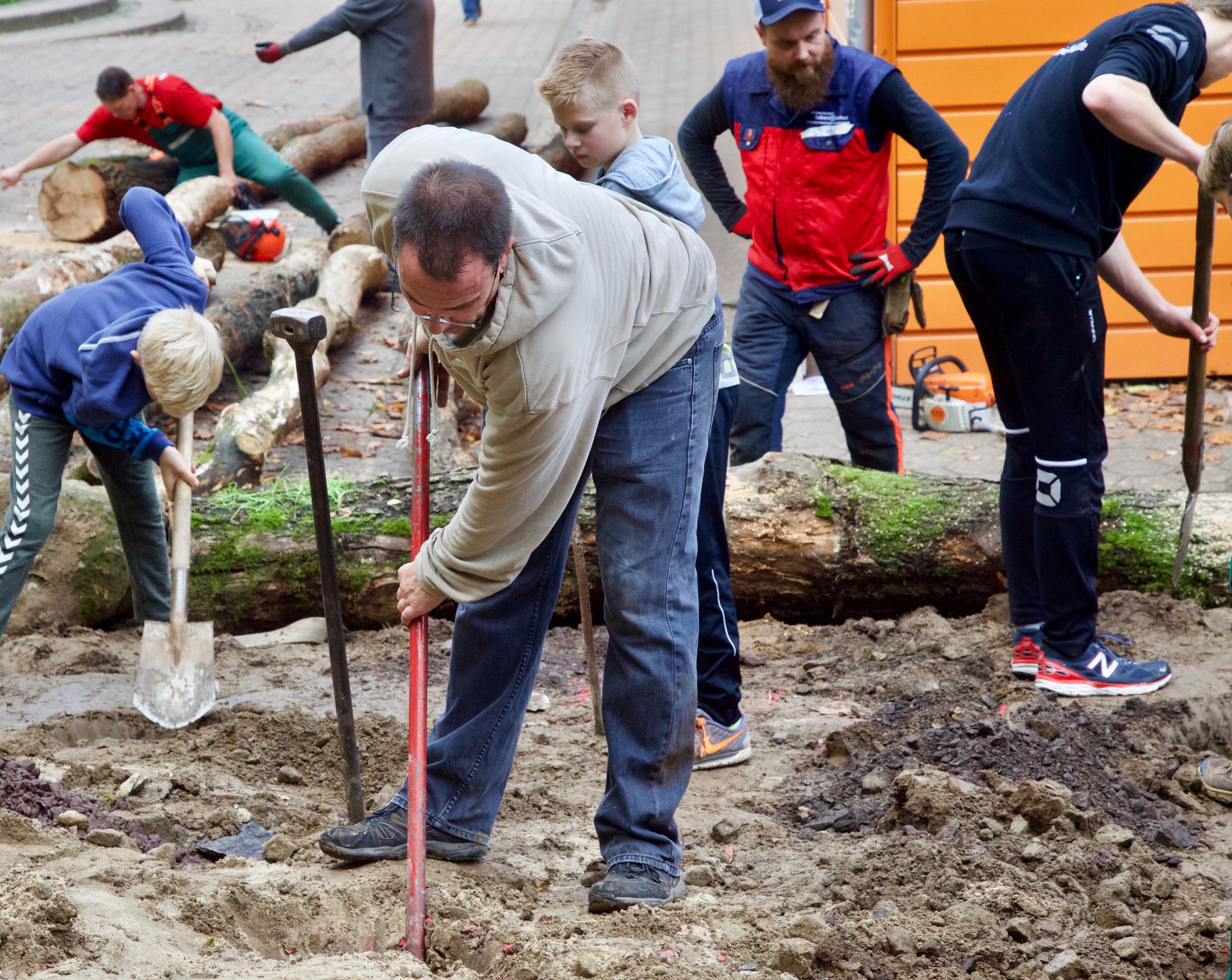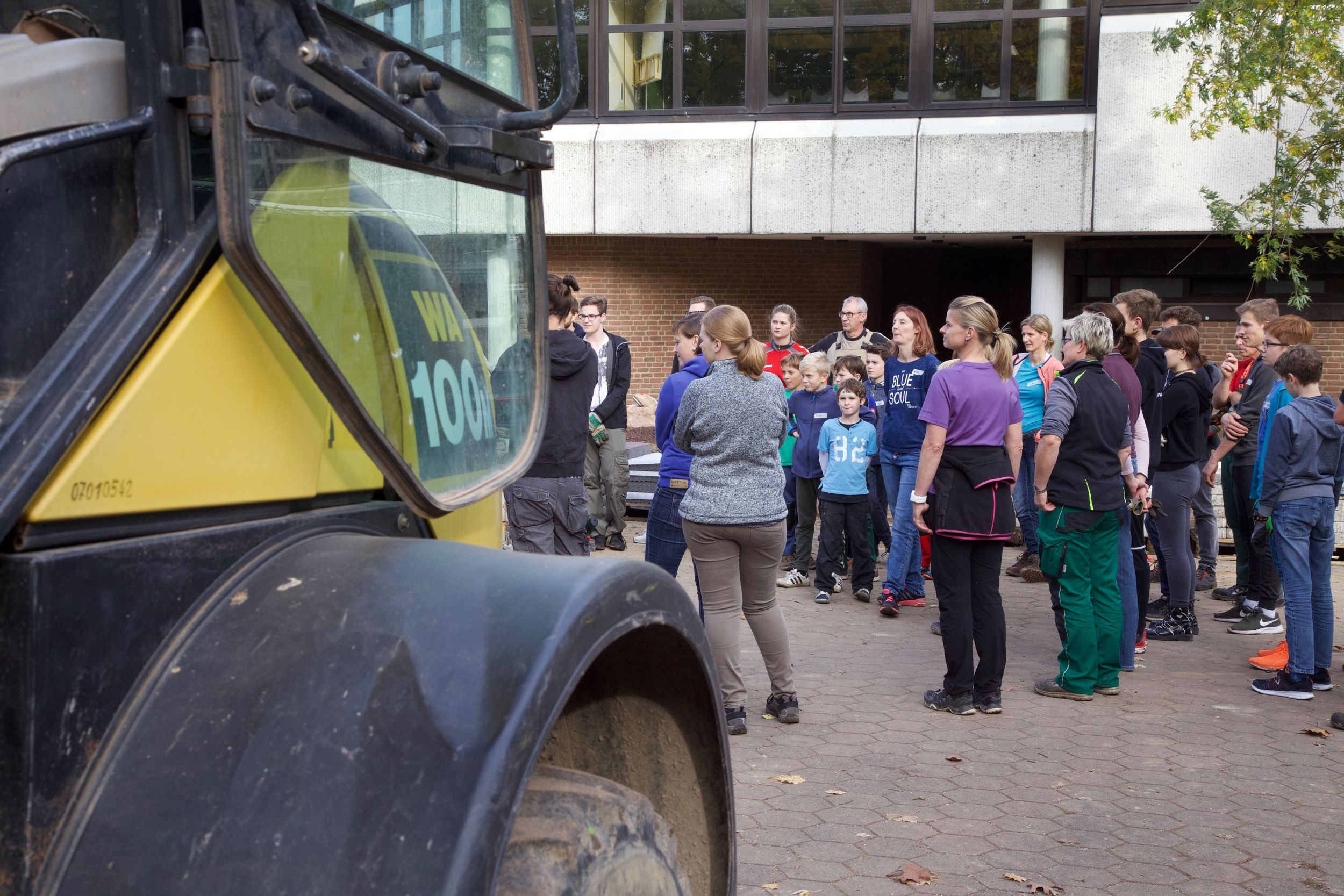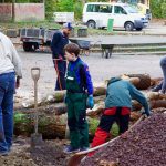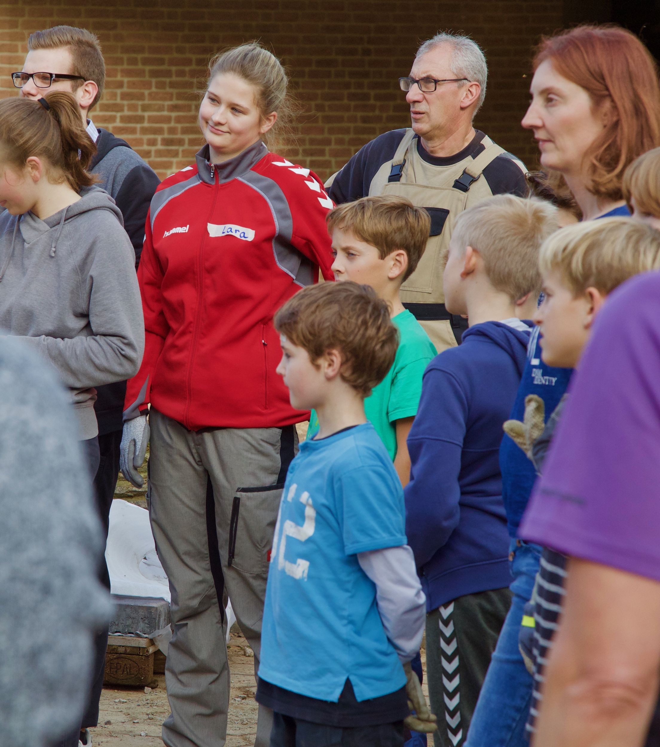 Der neu gestaltete Schulhof nimmt Formen an. Schüler, Eltern und Lehrer buddelten für Pflasterwege und schufen Sitzgelegenheiten bei der Mitmachaktion am 13. und 14. Oktober 2017.