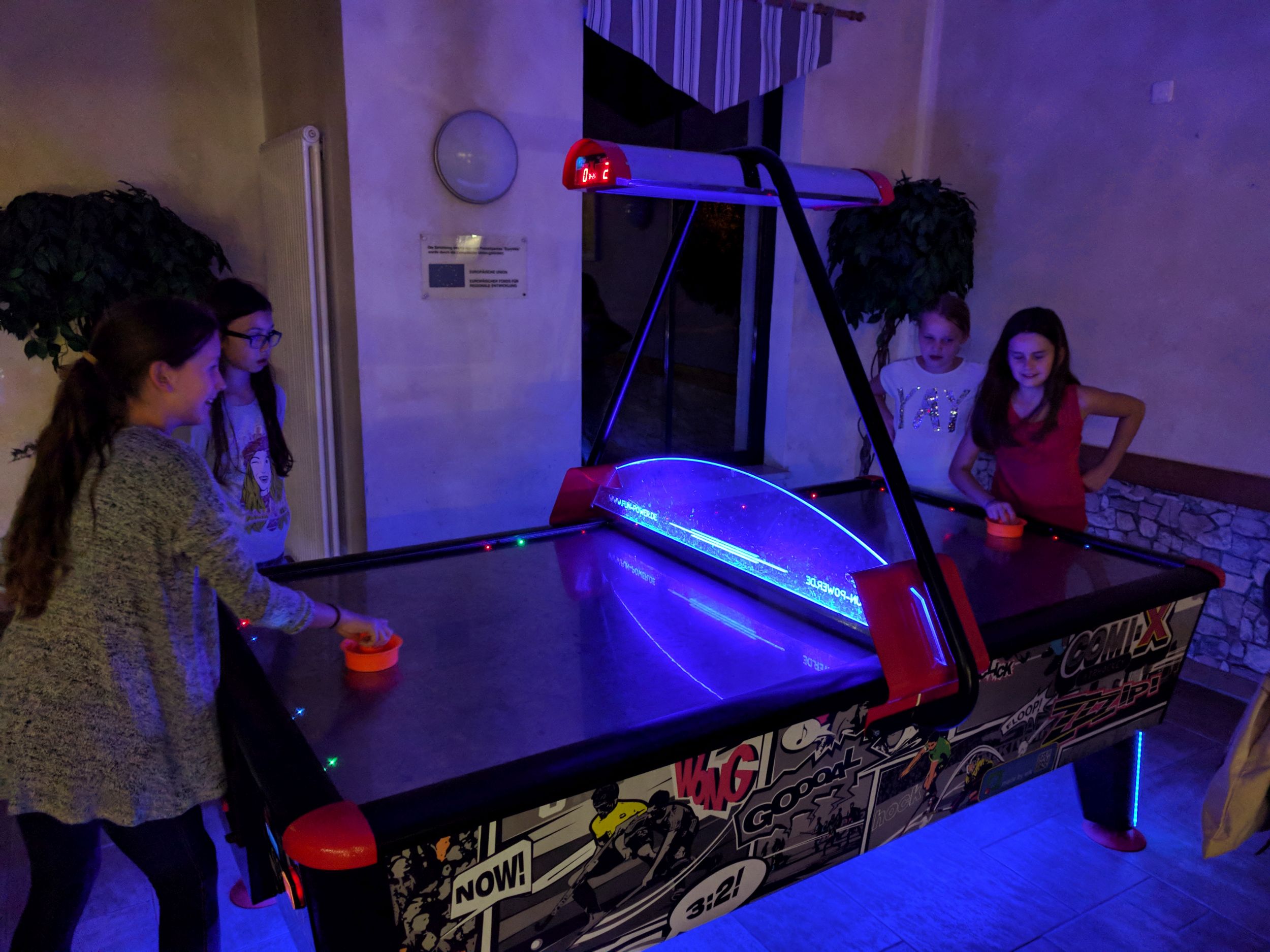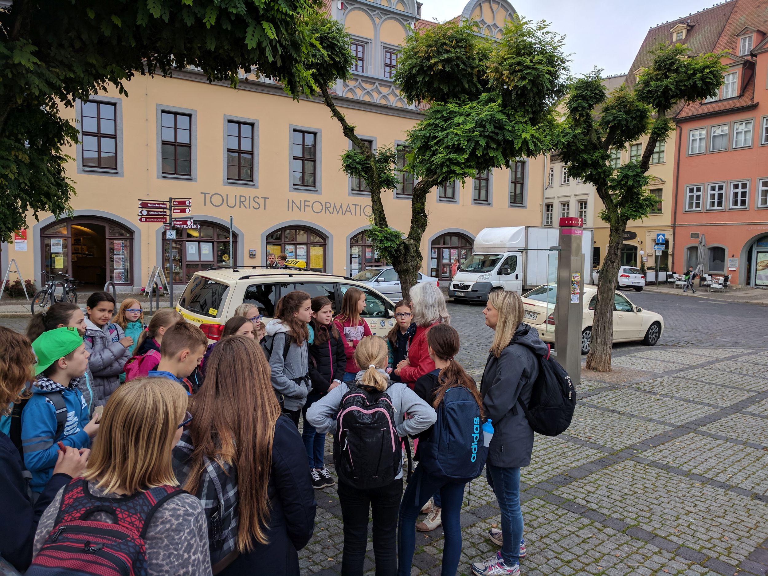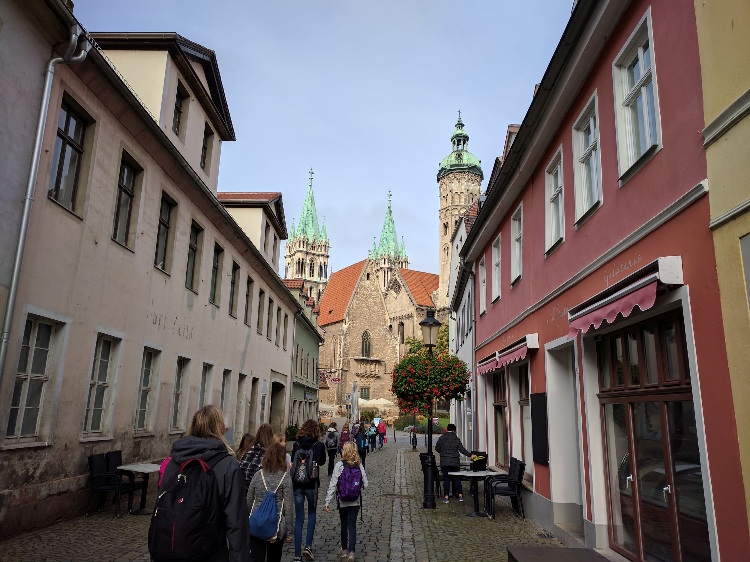 Manche Kinder sind schon um 5 Uhr aufgestanden, da eine der Lehrerinnen Geburtstag hatte. Dann haben wir ganz viele Luftballons aufgepustet und Luftschlangen ausgepustet. Als wir fertig waren, haben wir die Restlichen aufgeweckt, um unsere Lehrerin zu überraschen. Um 8 Uhr gab es Frühstück und dann hat unsere Lehrerin uns den Tagesablauf gesagt. Wir haben die Stadt Naumburg und den Dom besichtigt. Am Abend gab es dann einen Disco-Abend, wo fast alle Kinder und Lehrer dabei waren. Der Disco-Abend war richtig cool und es kamen auch Lieder, zu denen manche Kinder getanzt haben.