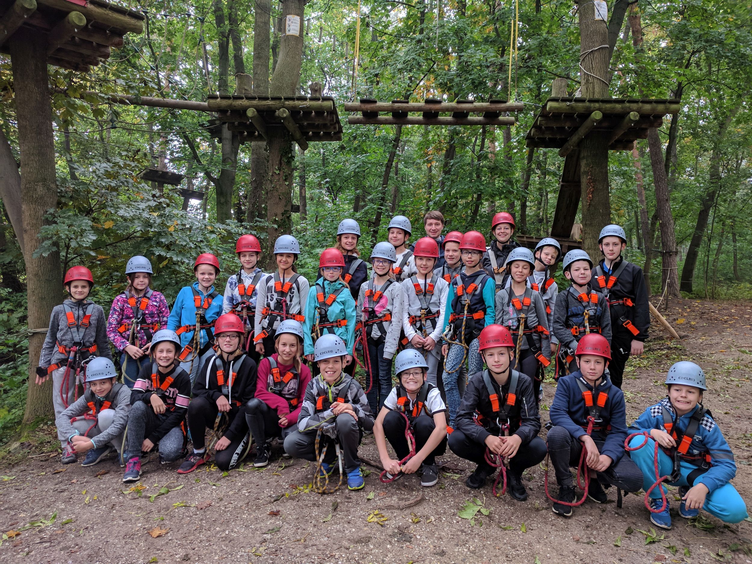 Wir sind wieder alle um halb acht aufgestanden und um 8 Uhr gab es Frühstück. Dann hatten wir Pause und danach sind wir in den Kletterpark gegangen. Dort gab es einen 4 m-, 9 m- und 13 m-Parcours, aber auf den 13 m-Parcour durften wir nicht drauf. Als wir zurückgegangen sind, durften wir noch in die Stadt zum Bummeln gehen, dann sind wir zurückgegangen. Am Abend kam dann der zweite Teil des Films.