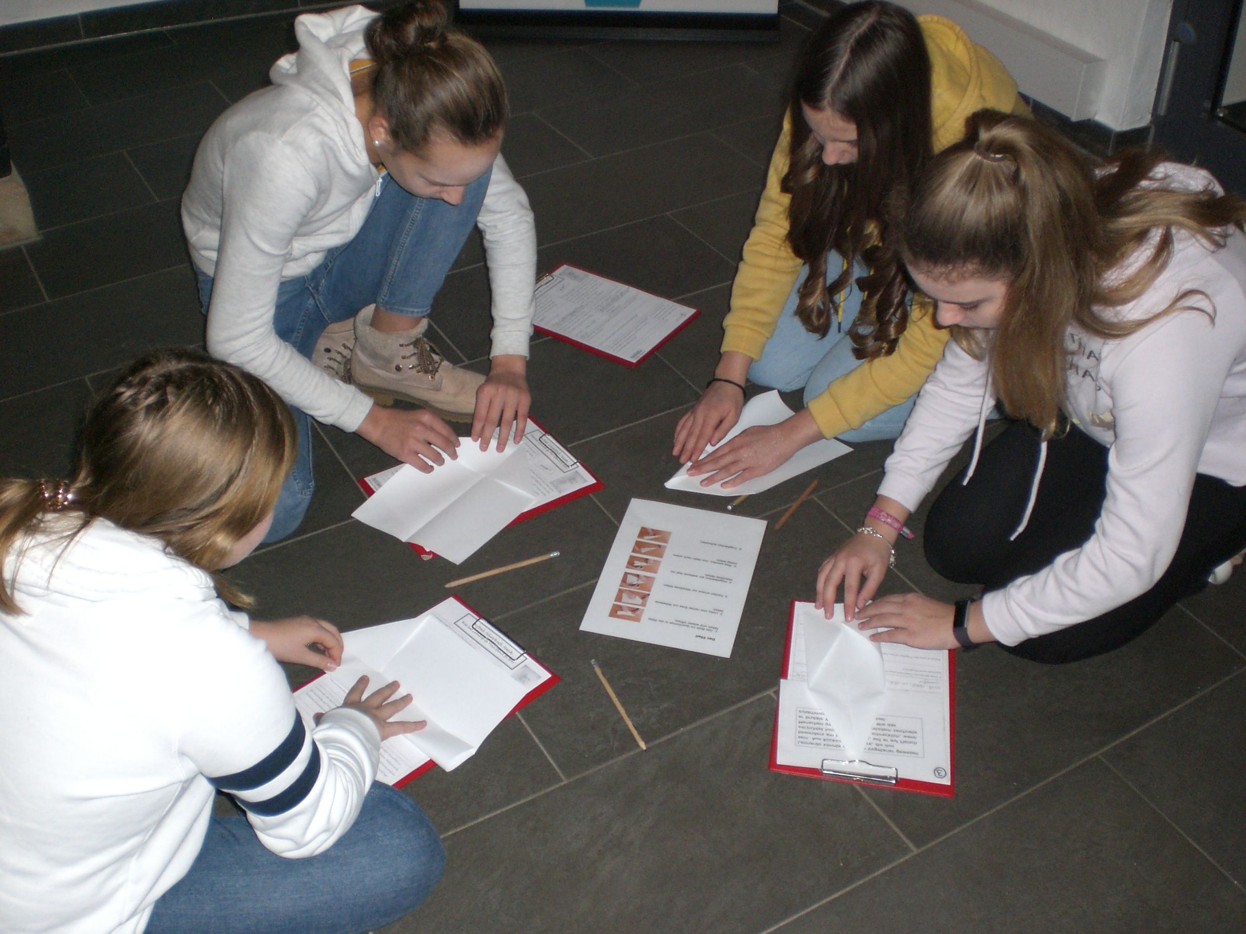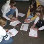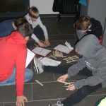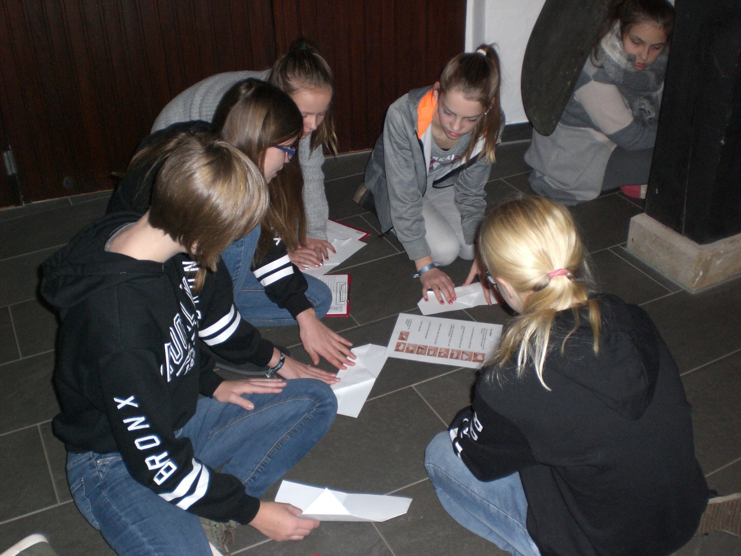 Wir haben in Gruppenarbeit eine Rallye durch die Ausstellung gemacht und uns die verschiedenen Exponate angesehen und an einigen Stationen auch etwas ausprobiert (z.B. Papierflieger gefaltet, um Leonardos Ideen über Thermik nachzuvollziehen). Anschließend haben wir uns die Ergebnisse unserer Gruppenarbeit gegenseitig präsentiert.