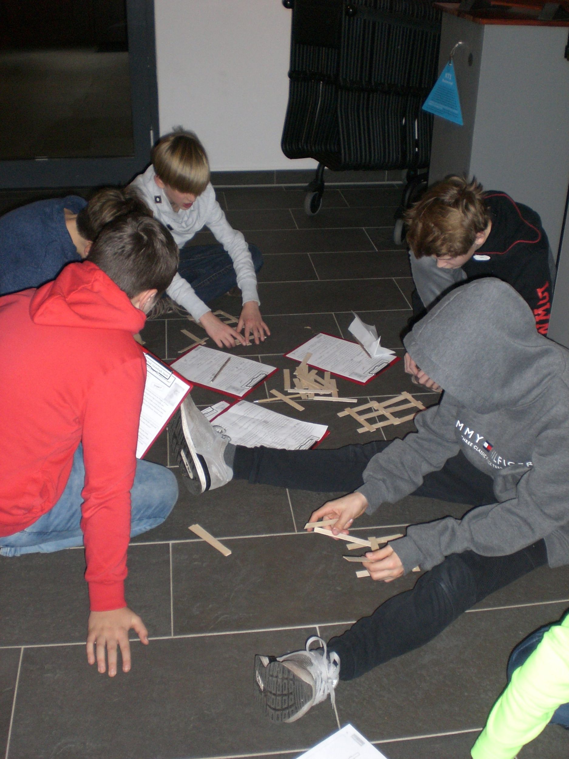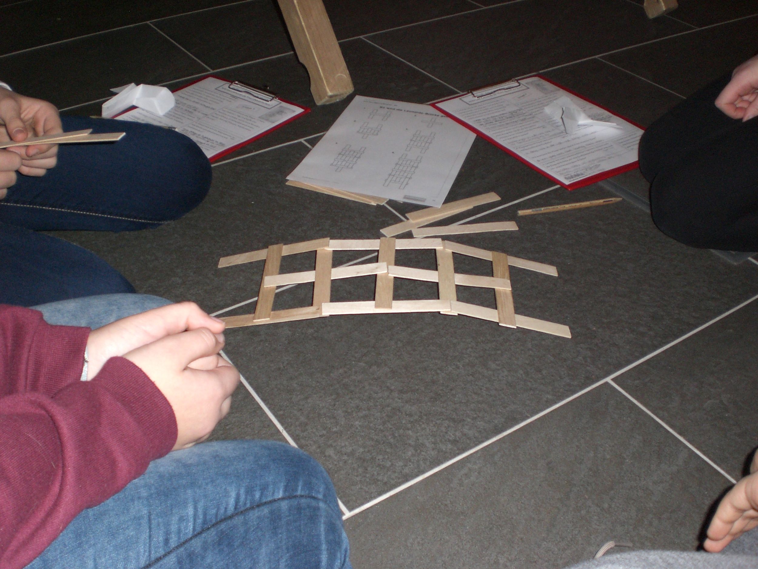 Besonders gefallen hat uns dort ein Experiment, bei dem man aus Holzstäbchen eine Brücke bauen musste. Das hat leider nicht gleich geklappt, doch nach mehreren Versuchen haben wir es gemeinsam geschafft.