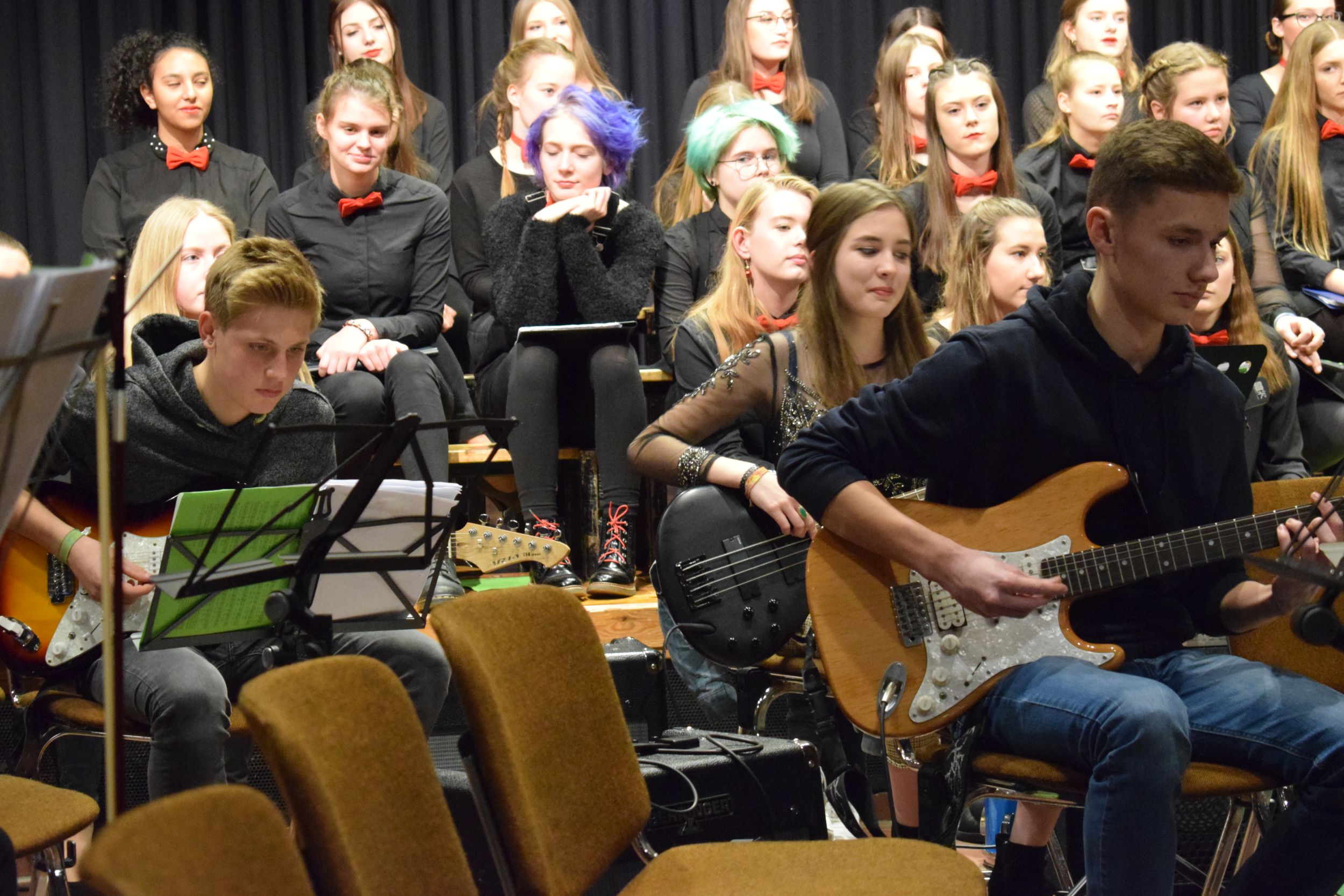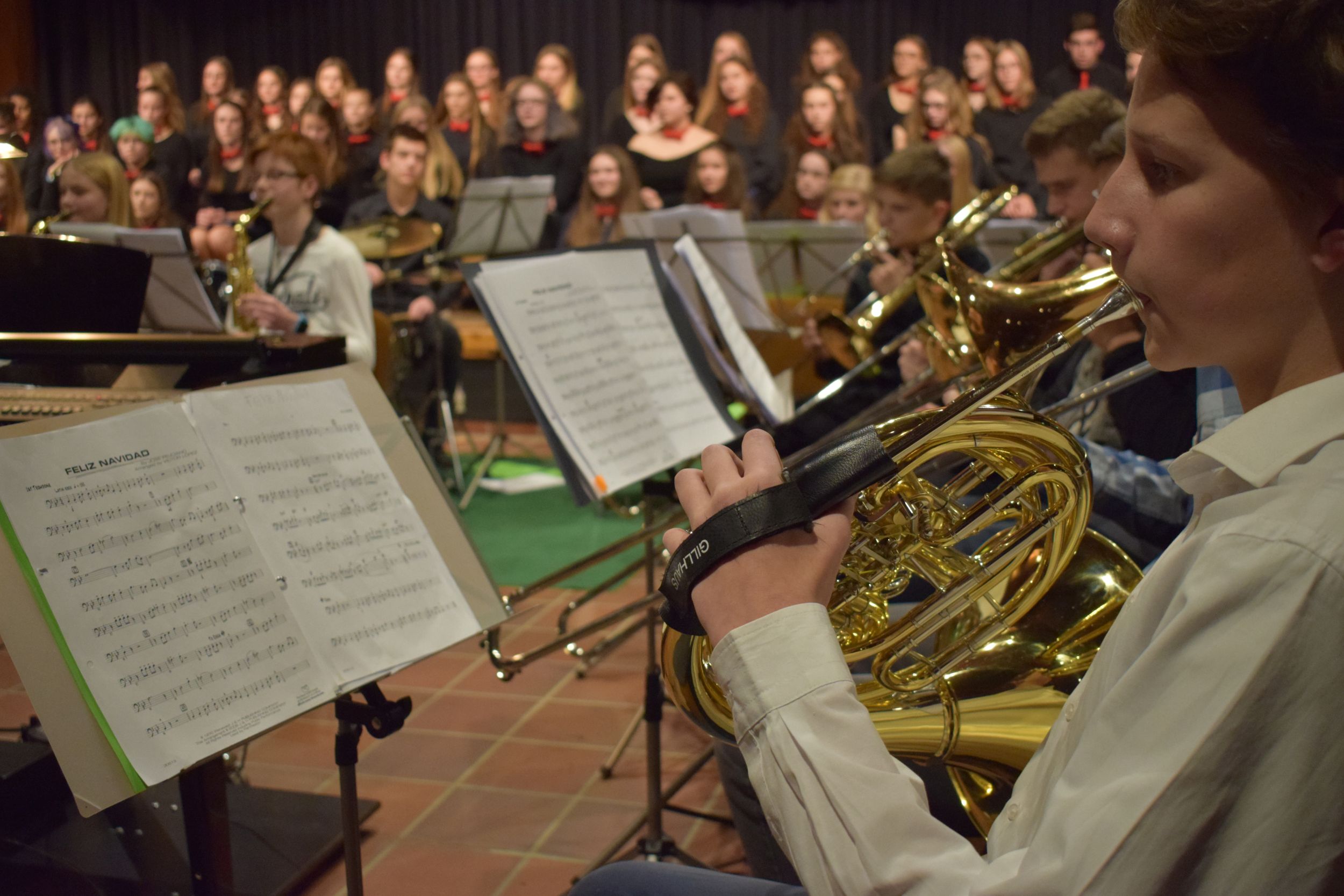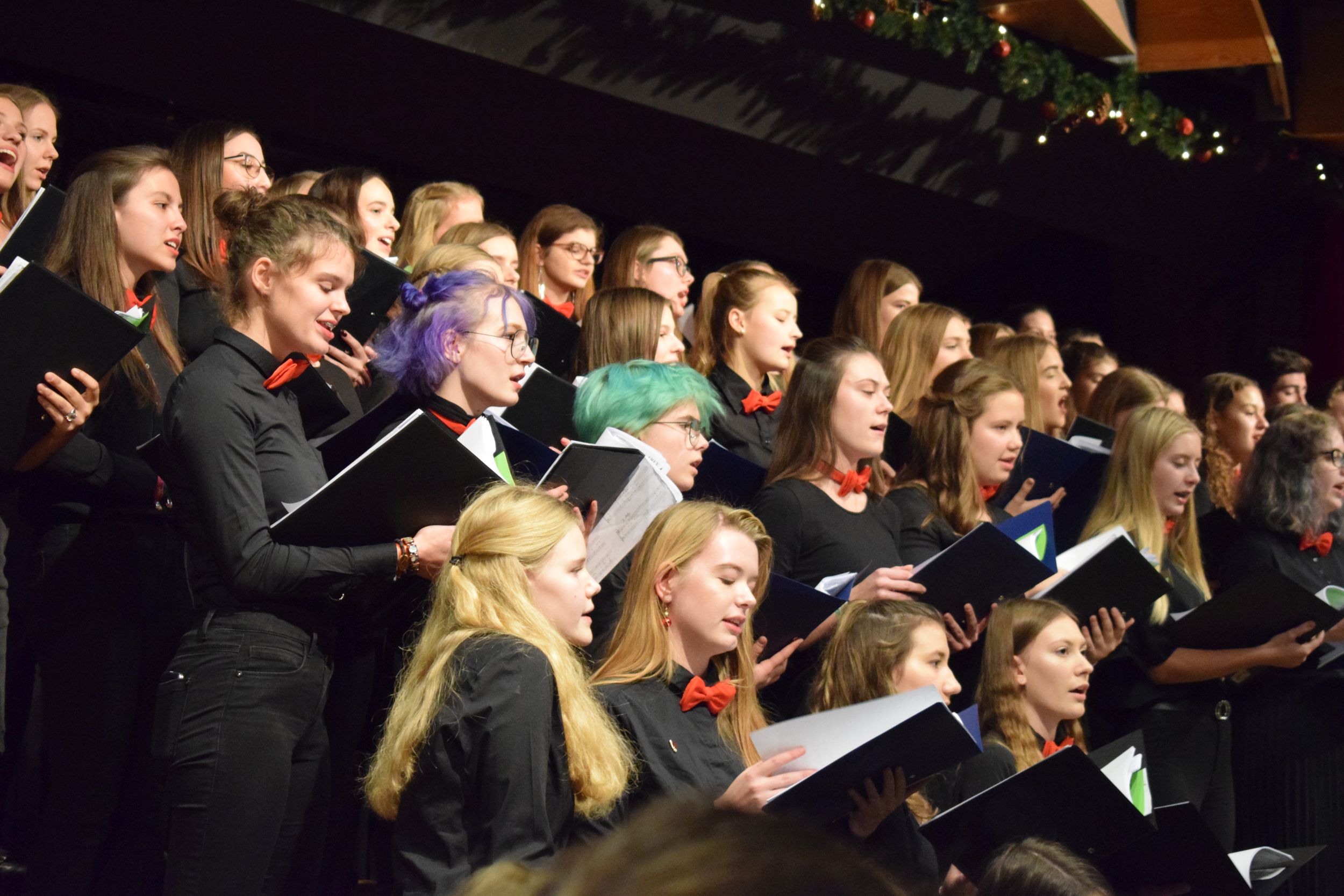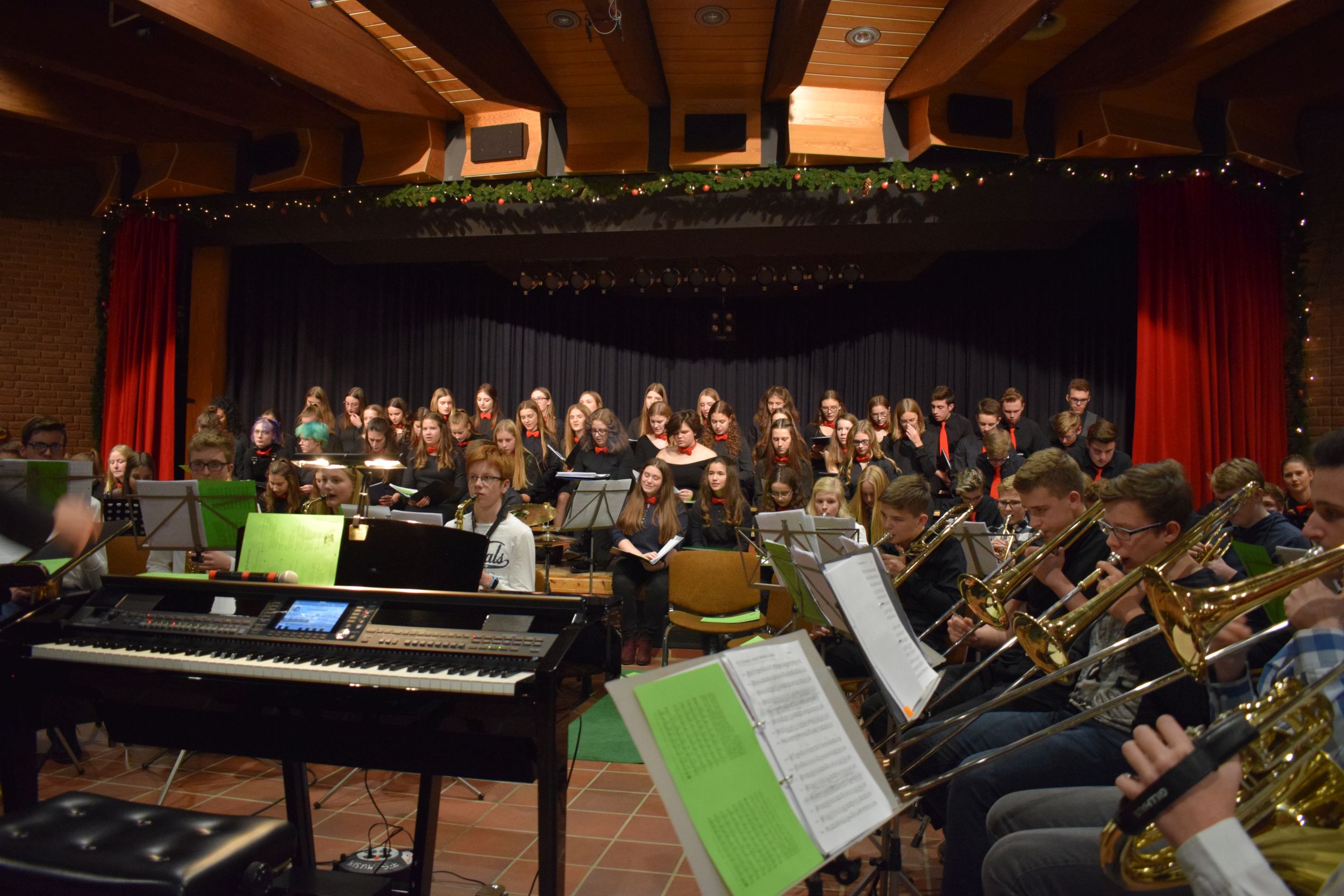 Insgesamt 209 Schülerinnen und Schüler sämtlicher Musik-AGs unseres Gymnasiums zeigten am 13. und 14. Dezember während der Weihnachtskonzerte ihr Können und nahmen die Zuhörer mit auf eine Reise weihnachtlicher Musikgeschichte. Das Publikum honorierte die Schüler_innen mit viel Applaus.