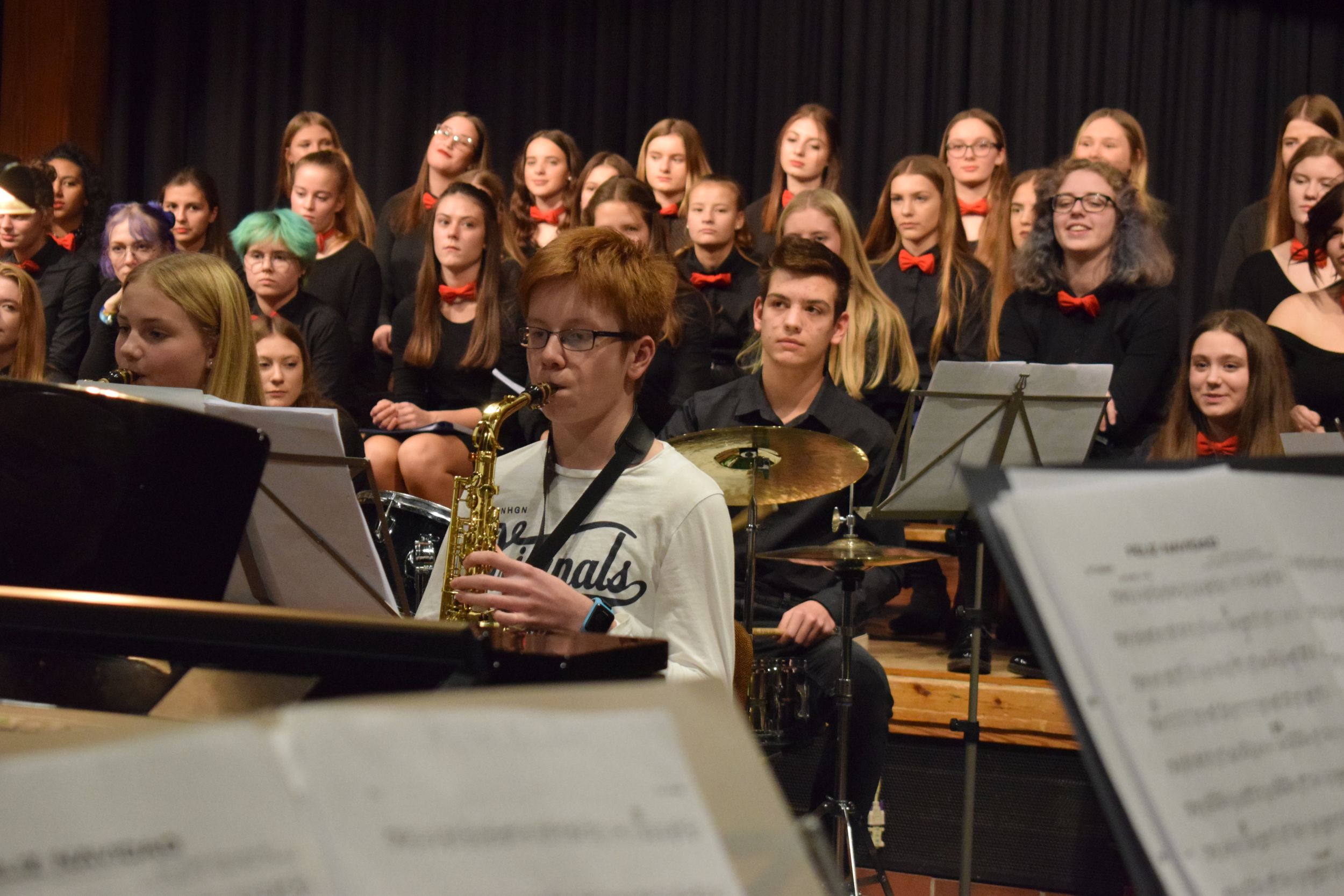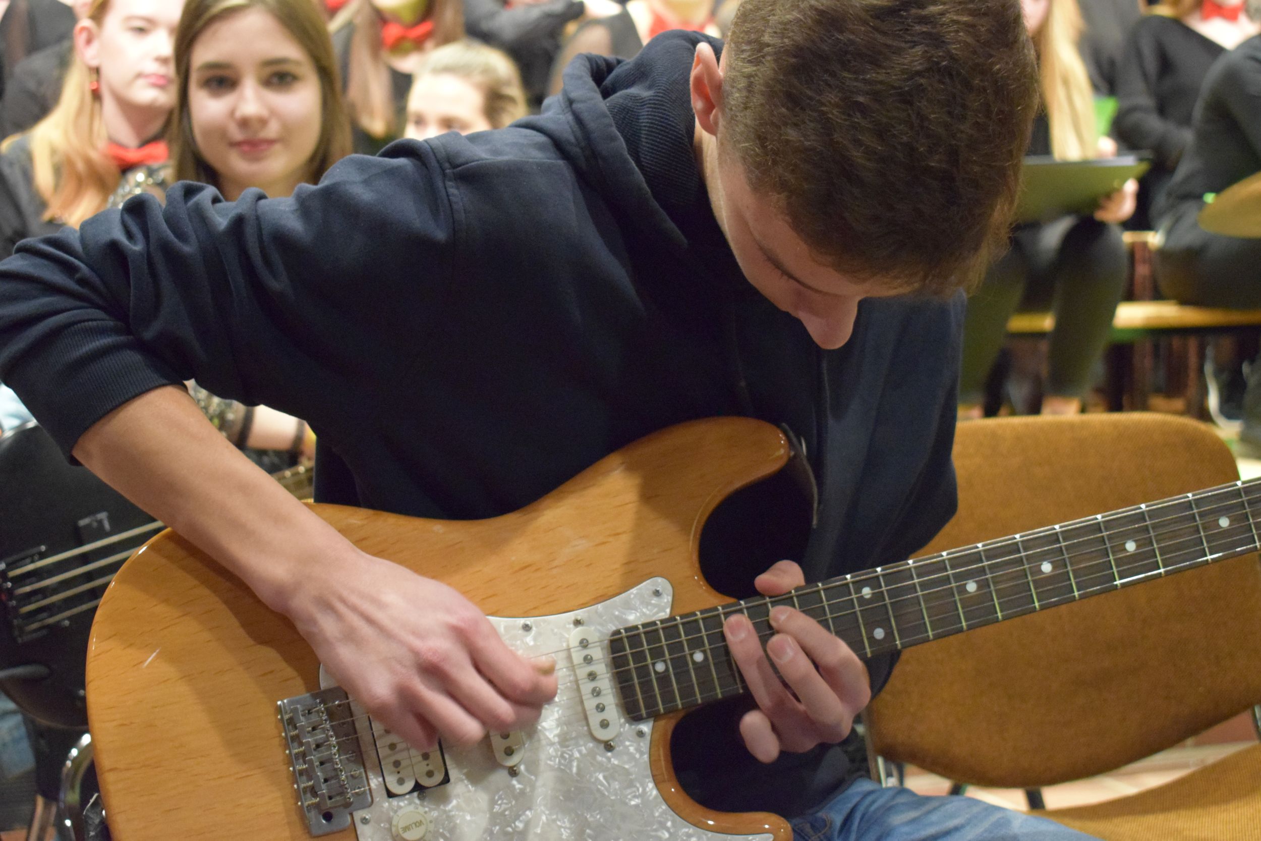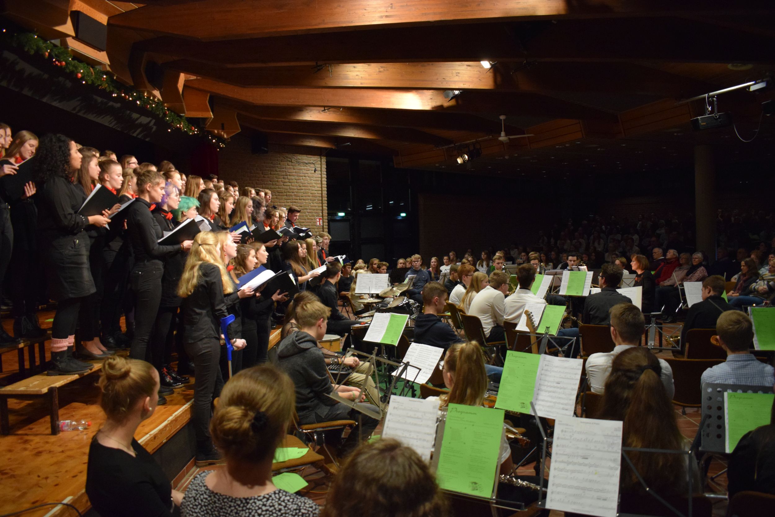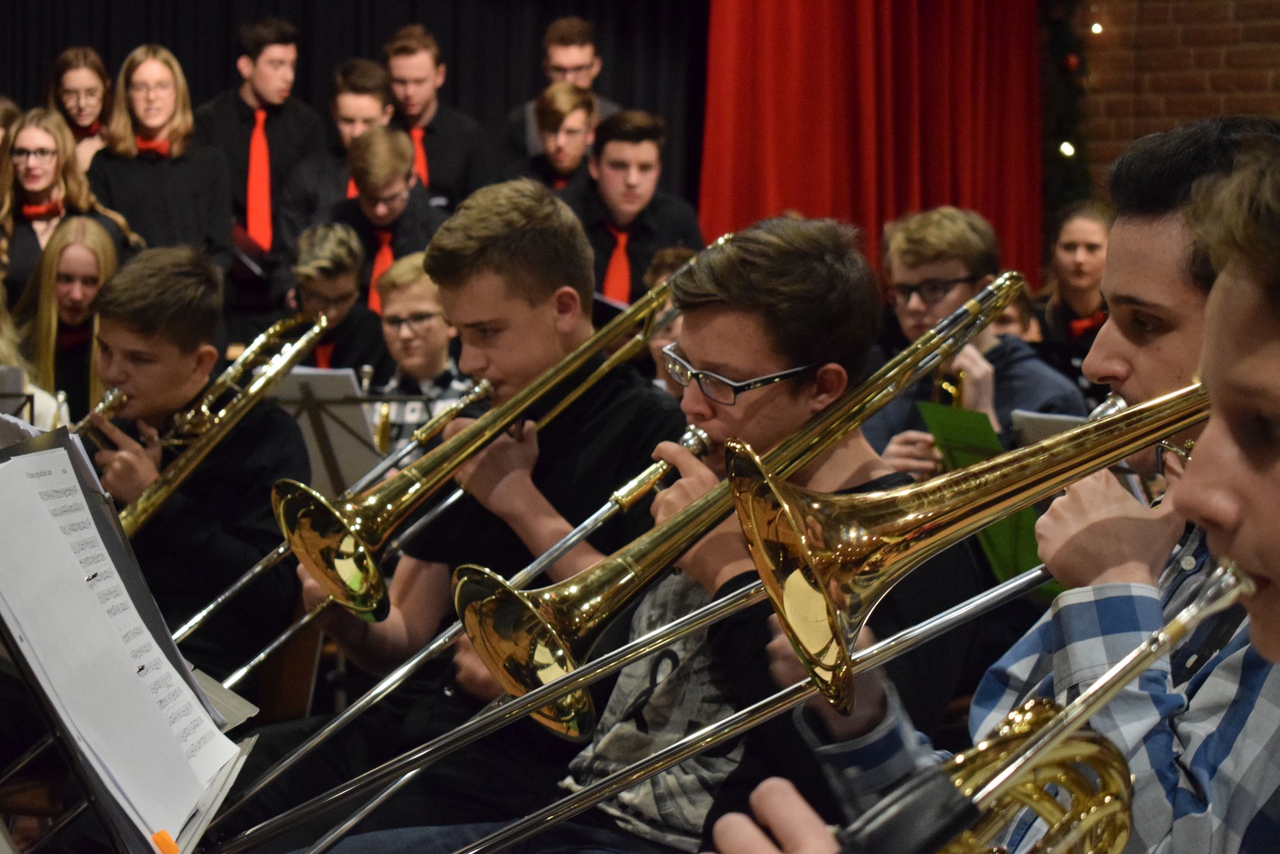 Insgesamt 209 Schülerinnen und Schüler sämtlicher Musik-AGs unseres Gymnasiums zeigten am 13. und 14. Dezember während der Weihnachtskonzerte ihr Können und nahmen die Zuhörer mit auf eine Reise weihnachtlicher Musikgeschichte. Das Publikum honorierte die Schüler_innen mit viel Applaus.