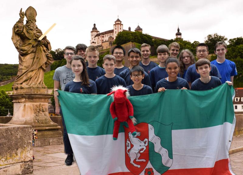 Zur Bundesrunde der 57. Mathematik-Olympiade traten vom 13. bis 16. Juni 2018 197 Mathematik-Asse in Würzburg an. Julian hatte – wie die übrigen Teilnehmer dieser diesjährigen nationalen Runde – auf Schul-, Kreis- und Länderebene überzeugende Leistungen gezeigt und sich damit unter den insgesamt ca. 200.000 Wettbewerbsteilnehmern für die Bundesrunde qualifiziert. Jedes Bundesland schickte dabei ein Team mit bis zu vierzehn Schülerinnen und Schüler ab Jahrgangsstufe 8 (Mannschaft NRW s. kleines Foto). Zudem wurden einzelne Schüler aus deutschen Auslandsschulen eingeladen. Und Julian aus Porta Westfalica war dabei! Schon in zwei Vorbereitungswochenenden in Velbert und Bonn mit Mathematik und anderen gemeinsamen Aktionen war das NRW-Team zusammengewachsen.
