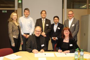 Freude über den Kooperationsvertrag: Elena Ronn-Lükemeier, Jens Kunze, Harmut Klein, Prof. Dr. Micha Bergsiek, Seyit Tokmak, Susanne Burmester, Dirk Langer