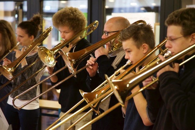 Ab 8.45 Uhr wurden die Gäste mit besinnlichen, aber auch teils schwungvollen Klängen der AG „Brass & Friends“ in der Schulstraße begrüßt und auf einen farbenfrohen Vormittag in unserem Hause eingestimmt.