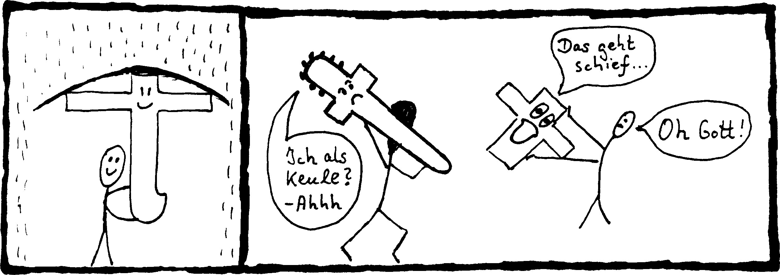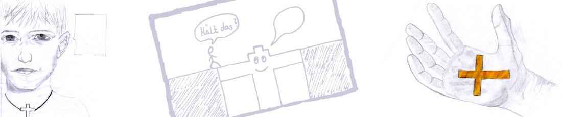 *Zeichnungen im Seitenbild oben li. und re. (Halskette und Hand mit Kreuz): Vivien Mirzai, 9a