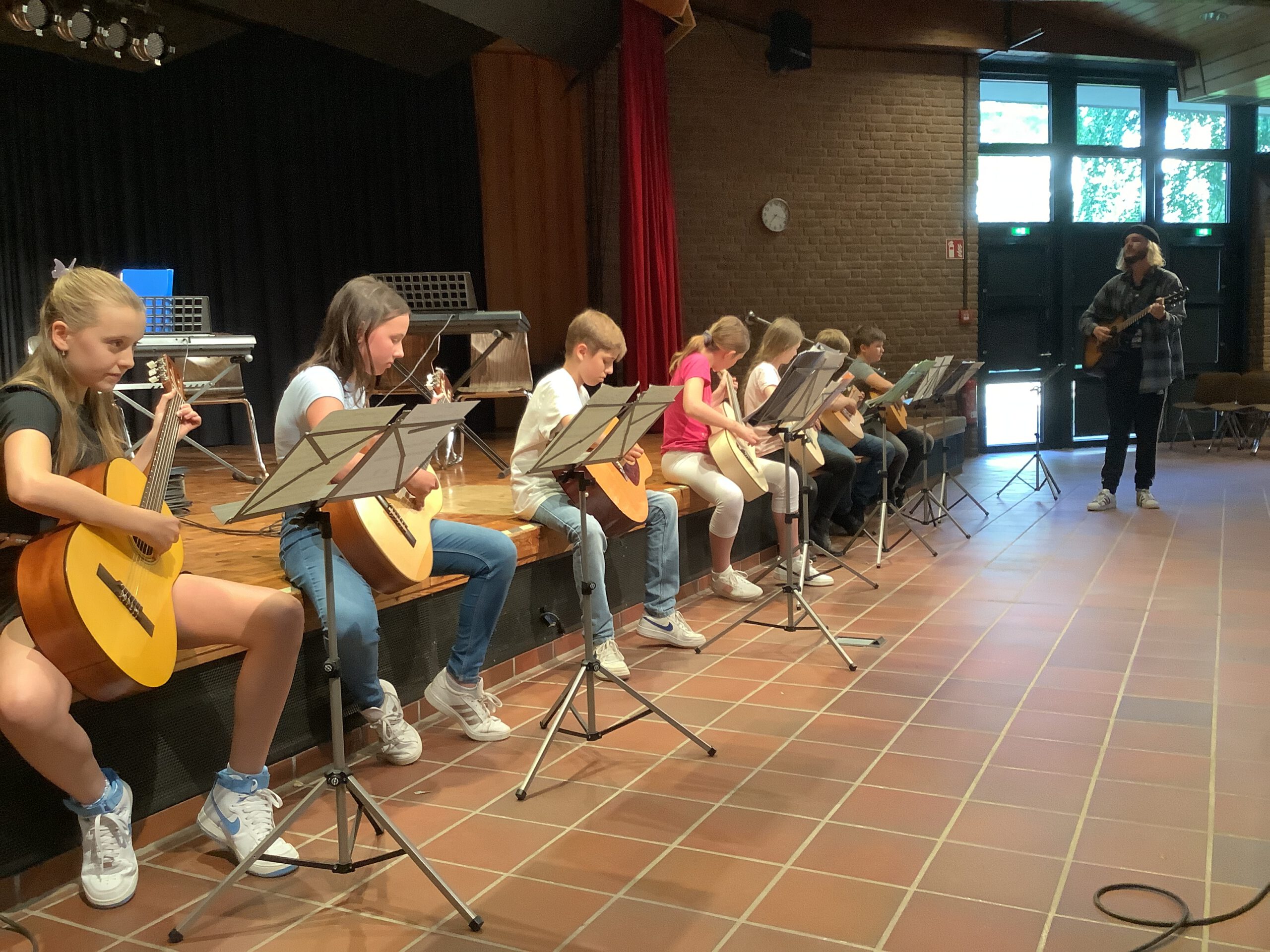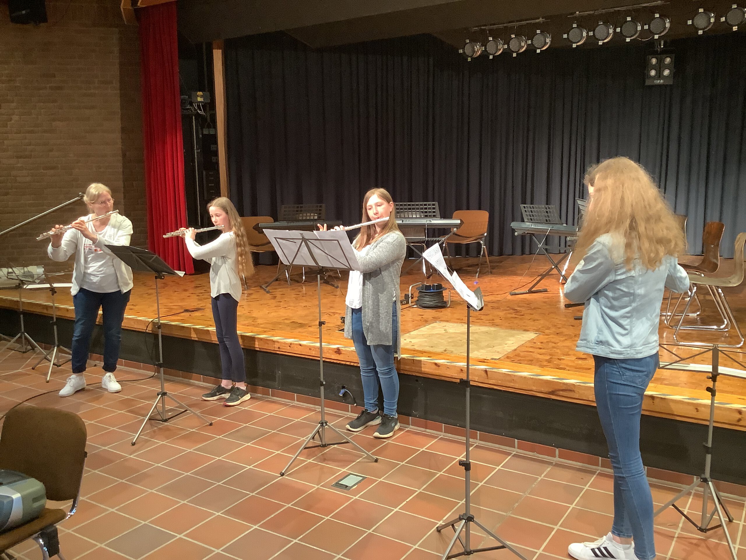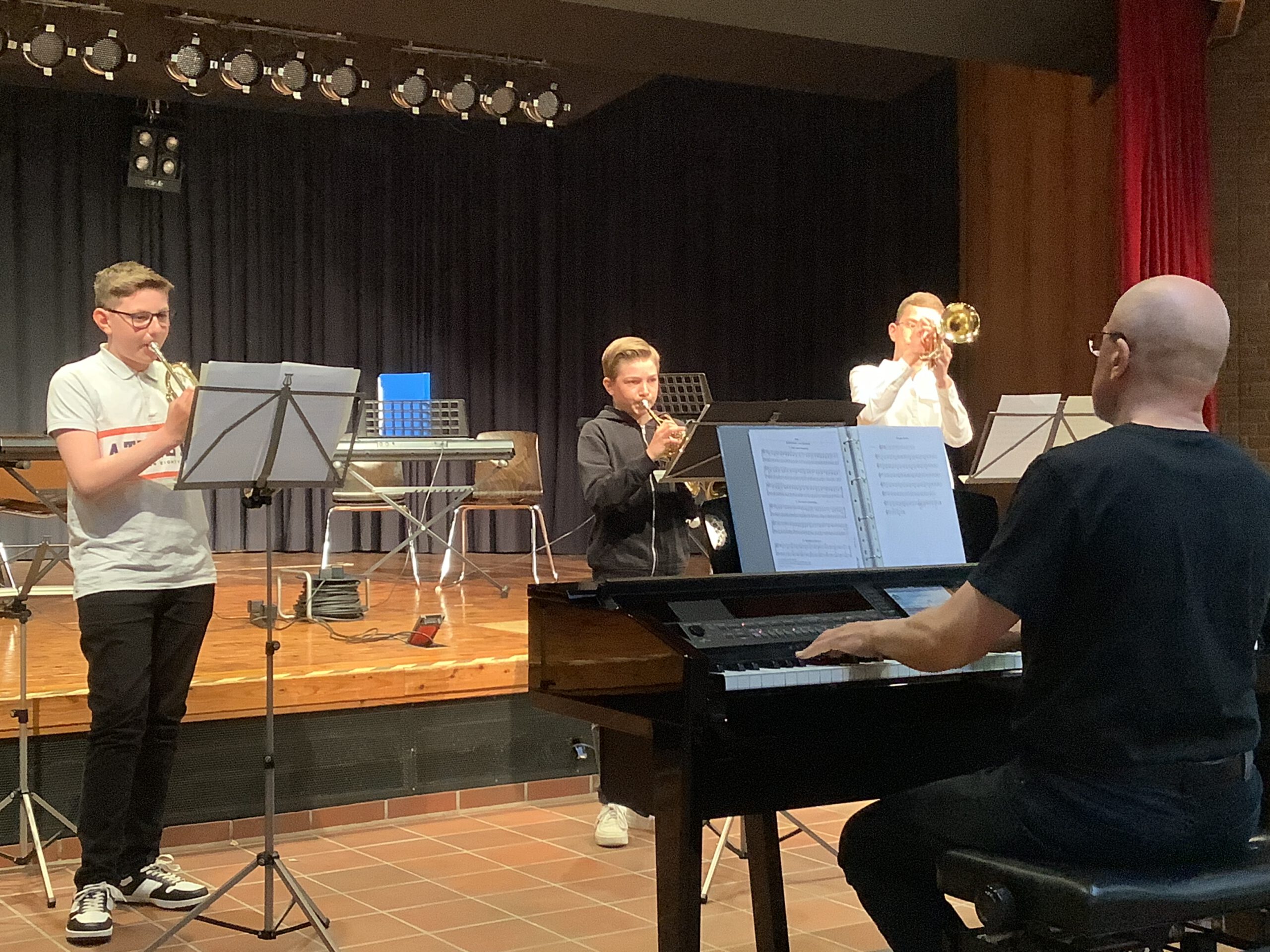 Die Luft ist am Mittwoch, dem 31. Mai nicht nur warm, sondern auch voll Musik! Nach 1,5 Jahren Instrumentalunterricht im nicht ganz normalen Schulunterricht zeigen unsere Sechstklässler, was sie so alles gelernt haben. Im kleinen Konzert führten unsere Schüler*innen in ihren Gruppen gemeinsam einstudierte Stücke auf, deren Darbietung mit kräftigem und herzlichem Applaus honoriert wurde.